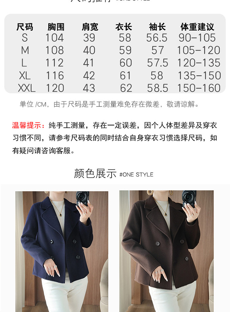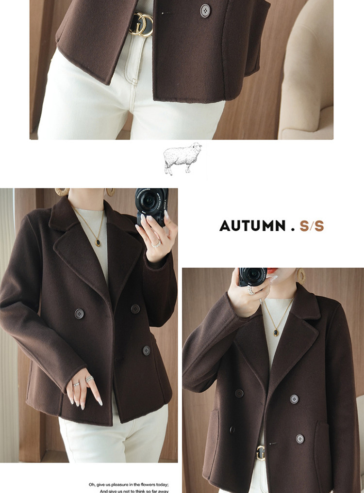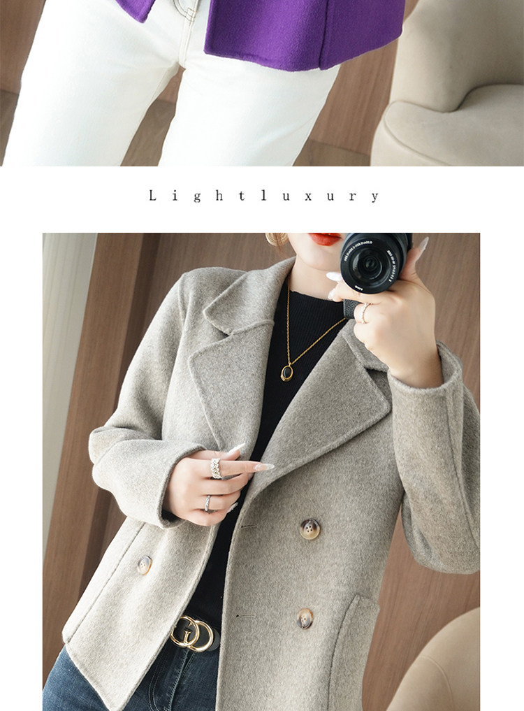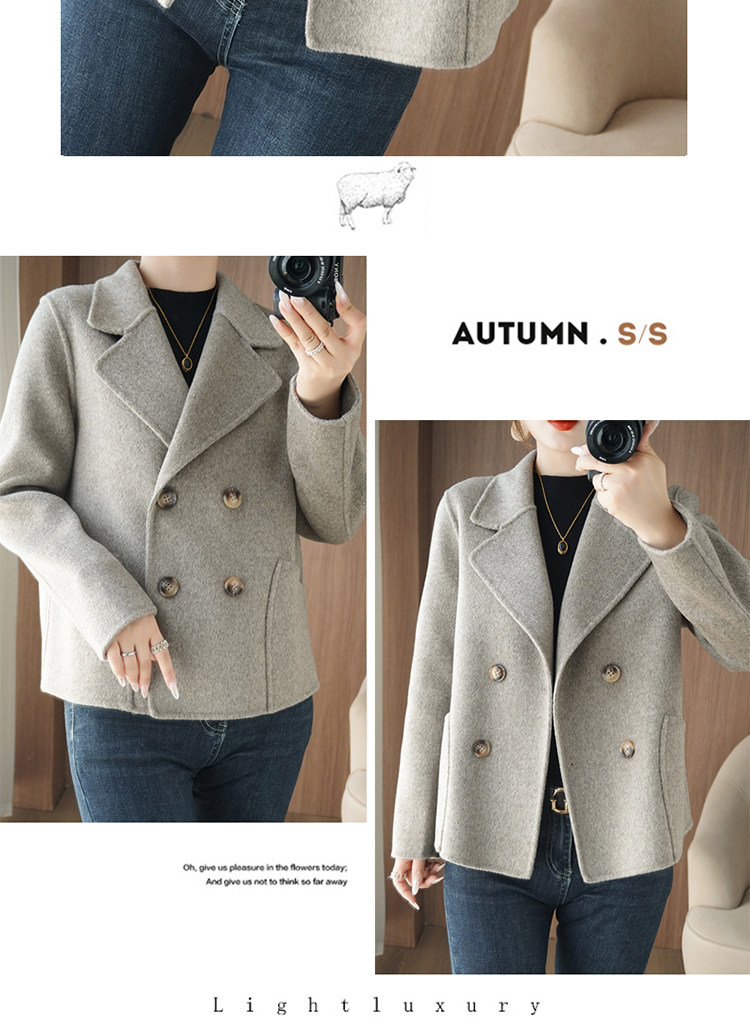 Шерстяной двусторонний кашемировый короткий костюм, шерстяное шерстяное пальто, подходит для подростков