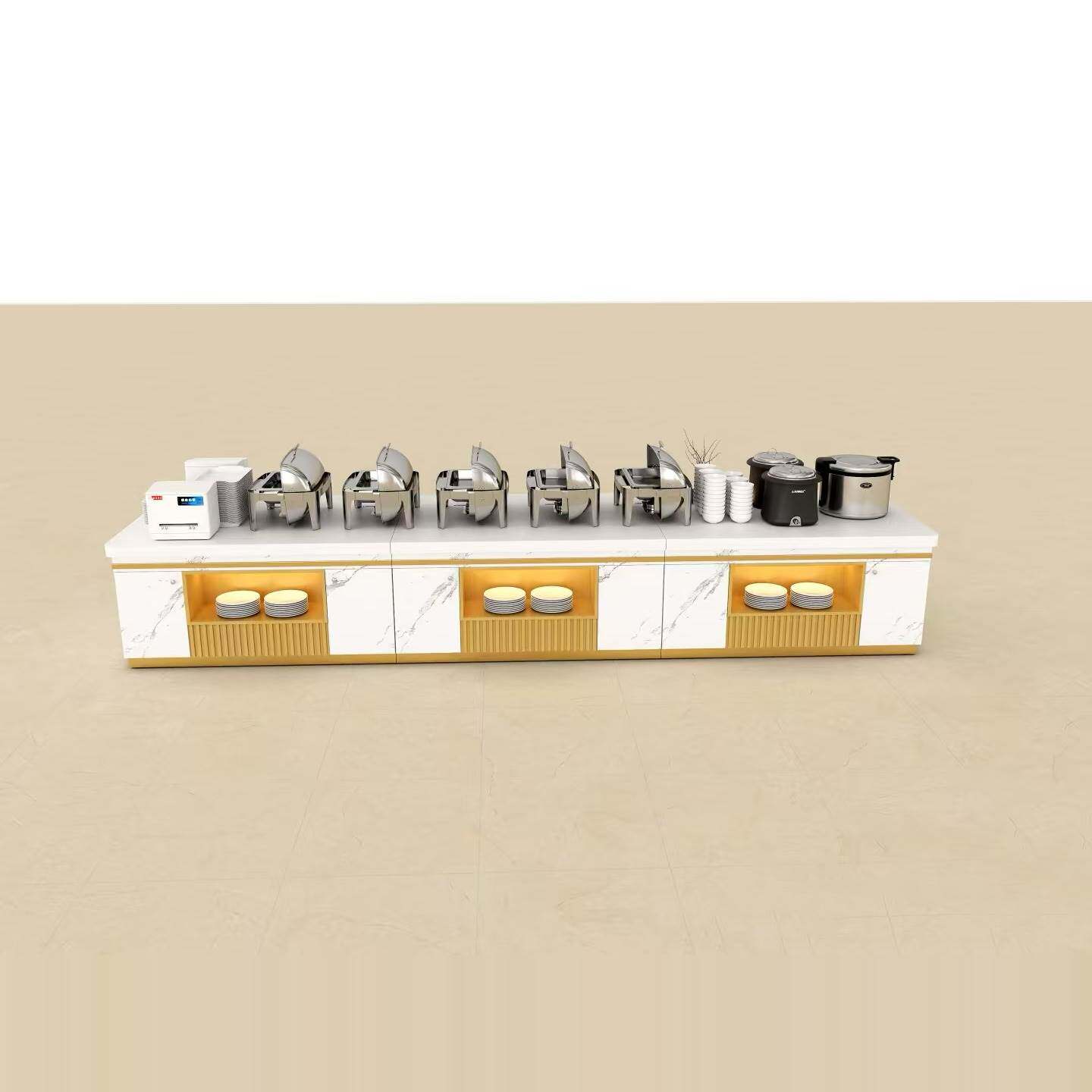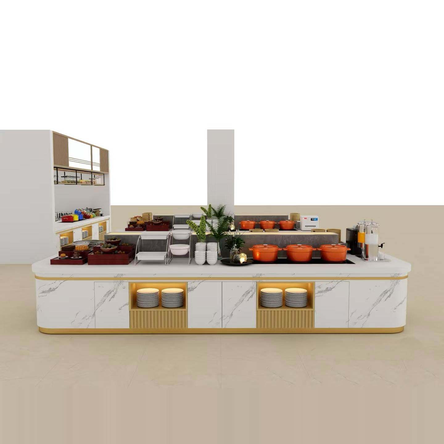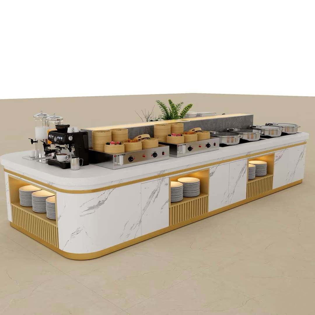 Высококлассный отель Buffy Terrace, ресторан, столовая, островной шкаф, обеденный стол самообслуживания, витрина для посуды, холодные блюда, десертный стол