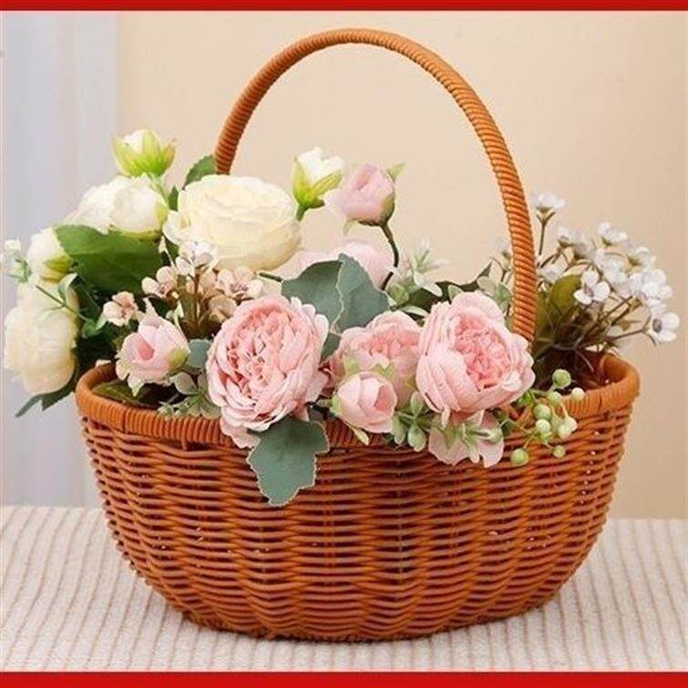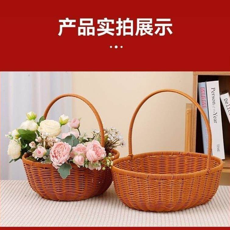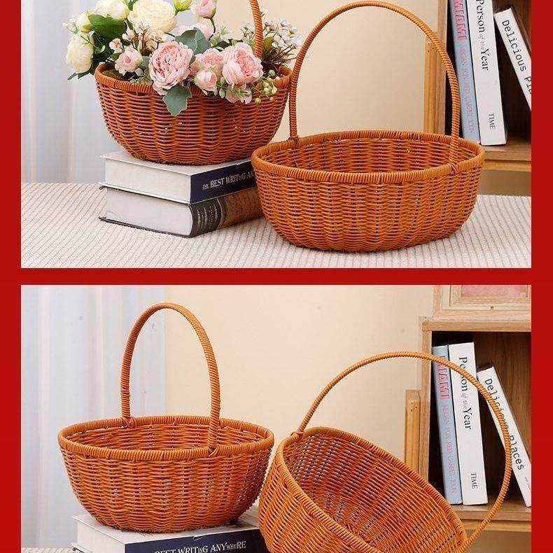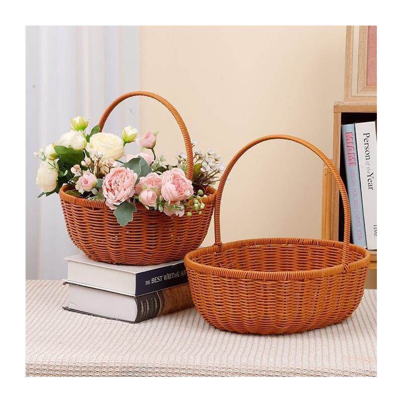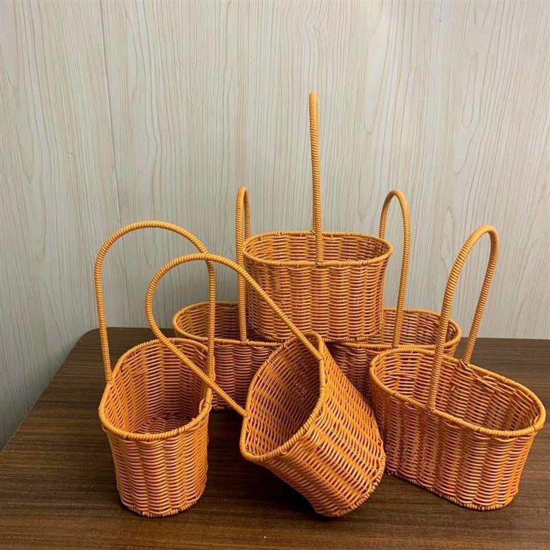 Креативная ручка из ротанга, корзина для цветов, корзина для хранения цветов, двойная корзина из искусственного ротанга, корзина для яиц и овощей ручной работы