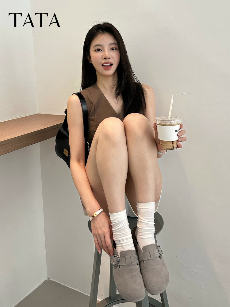 [Super 88 Mid-Year Ceremony] TATA His Her Retro Birkenstock Shoes Женские тапочки на толстой подошве с носком и мюли