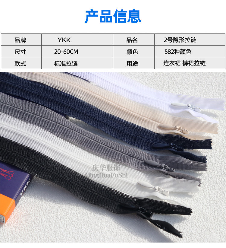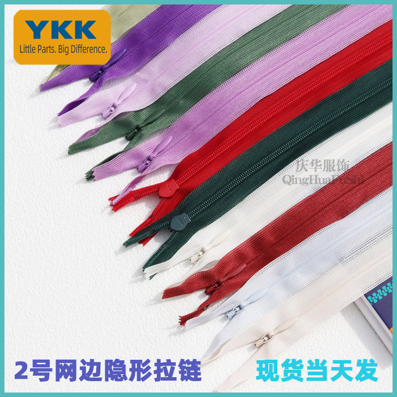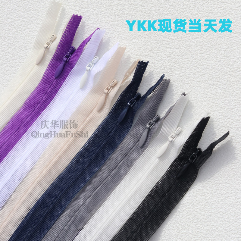 YKK Невидимая молния с шелковым краем № 2, закрытая и запертая, молния для подушки юбки 25 см, на складе доступно 582 цвета