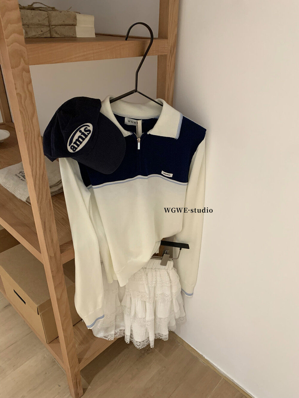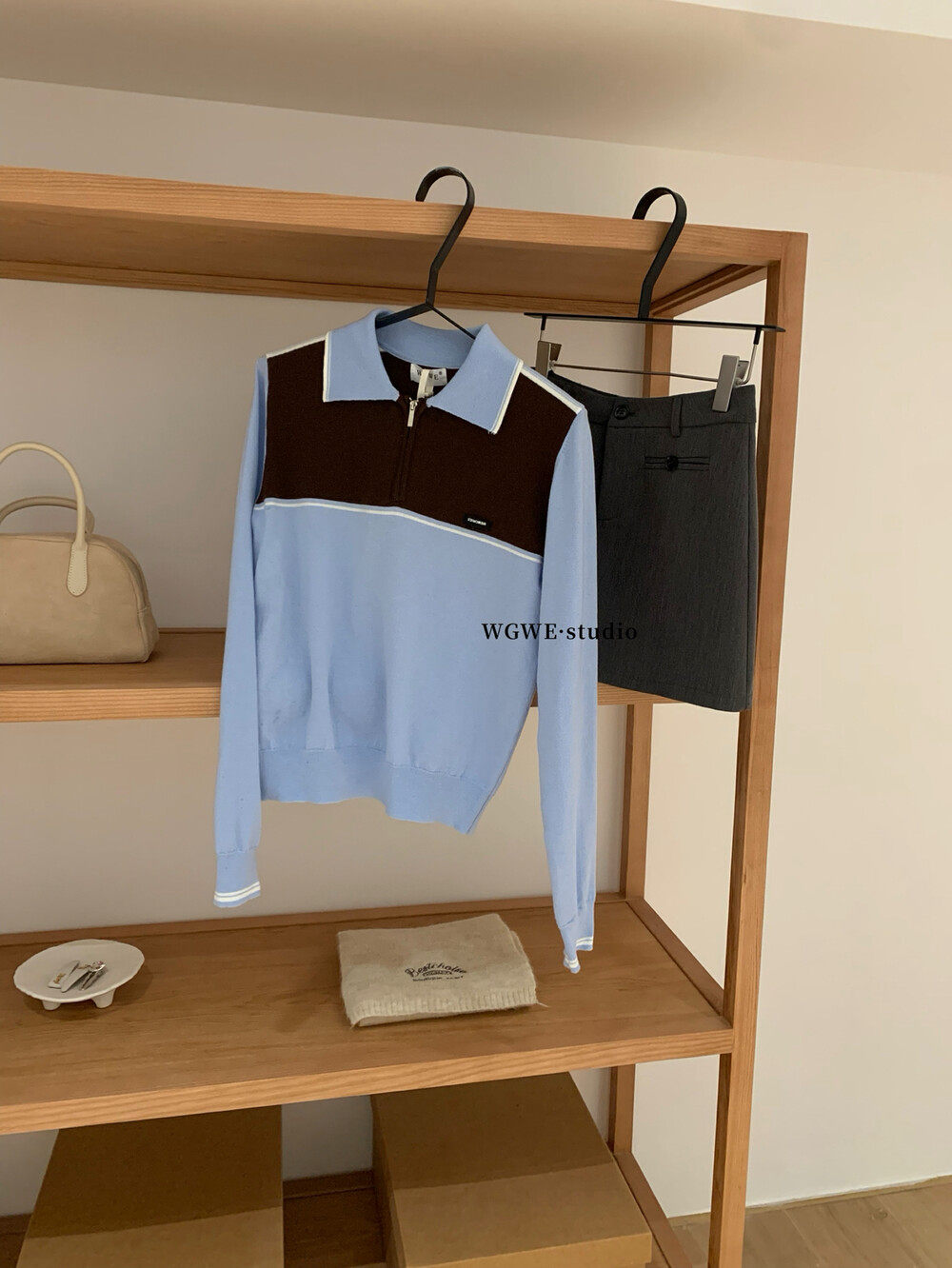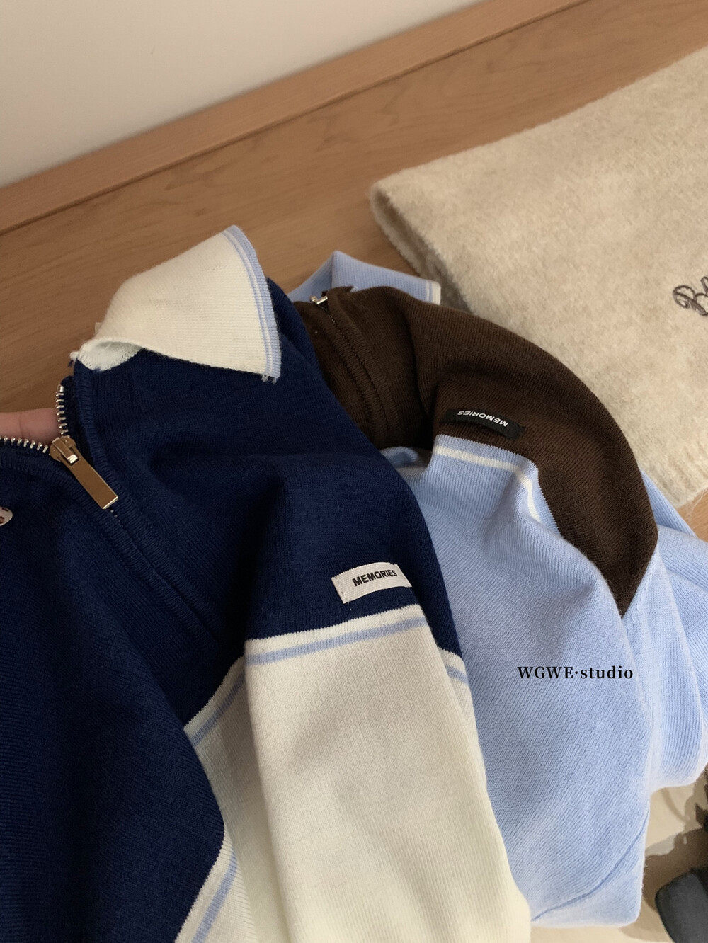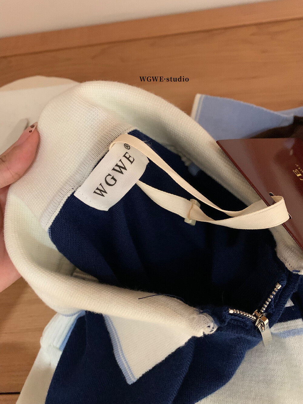 WGWE2025, осенняя корейская версия, универсальный утягивающий топ с контрастной строчкой и застежкой-молнией в студенческом стиле, модный вязаный топ с длинными рукавами