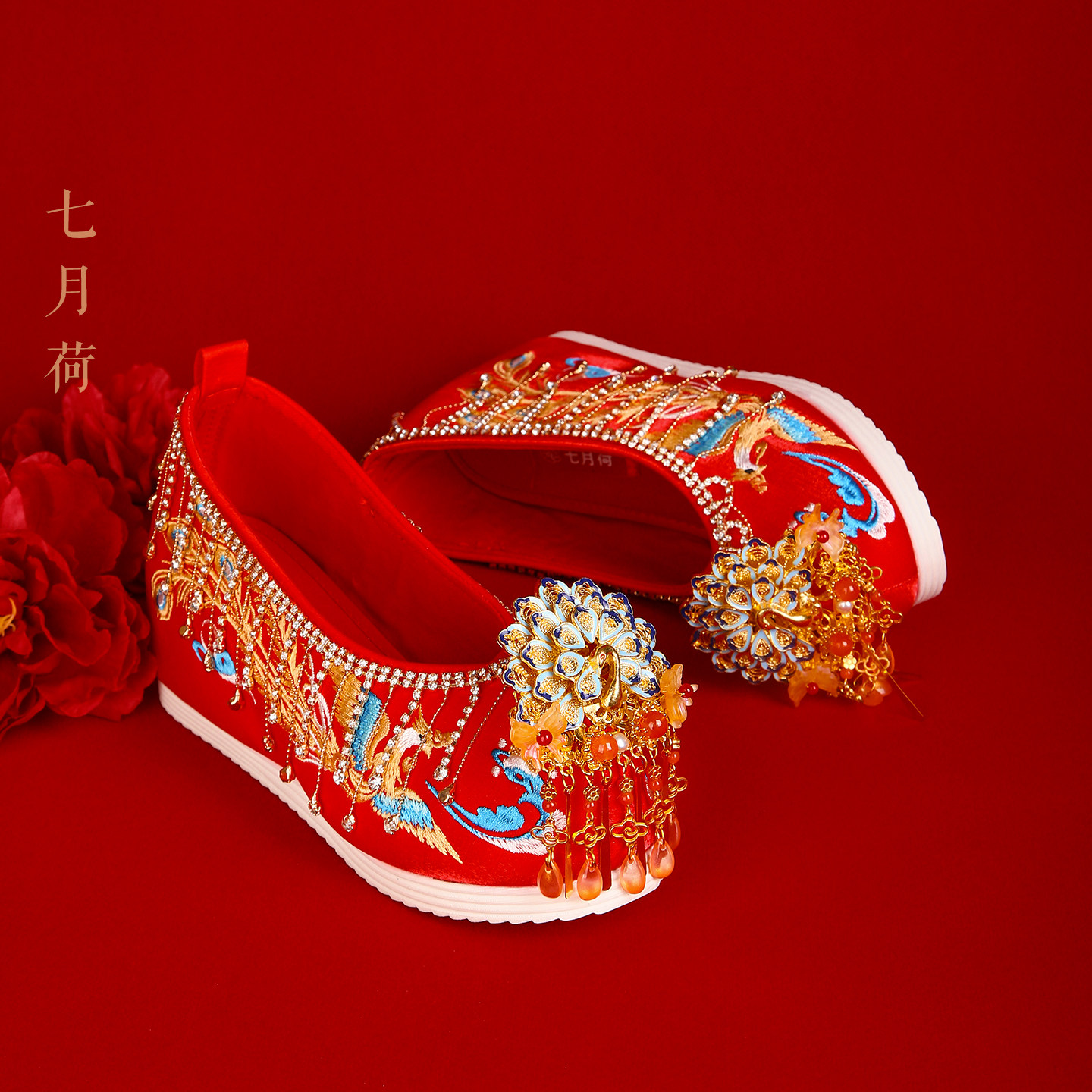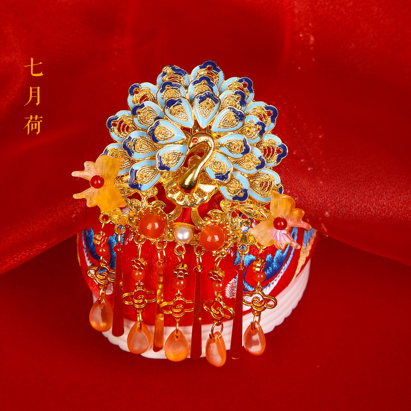 七月荷 Оригинальная 2025 Осень высокая стоимость Peacock Tassel xiuhe Свадебная невеста свадебная невеста.