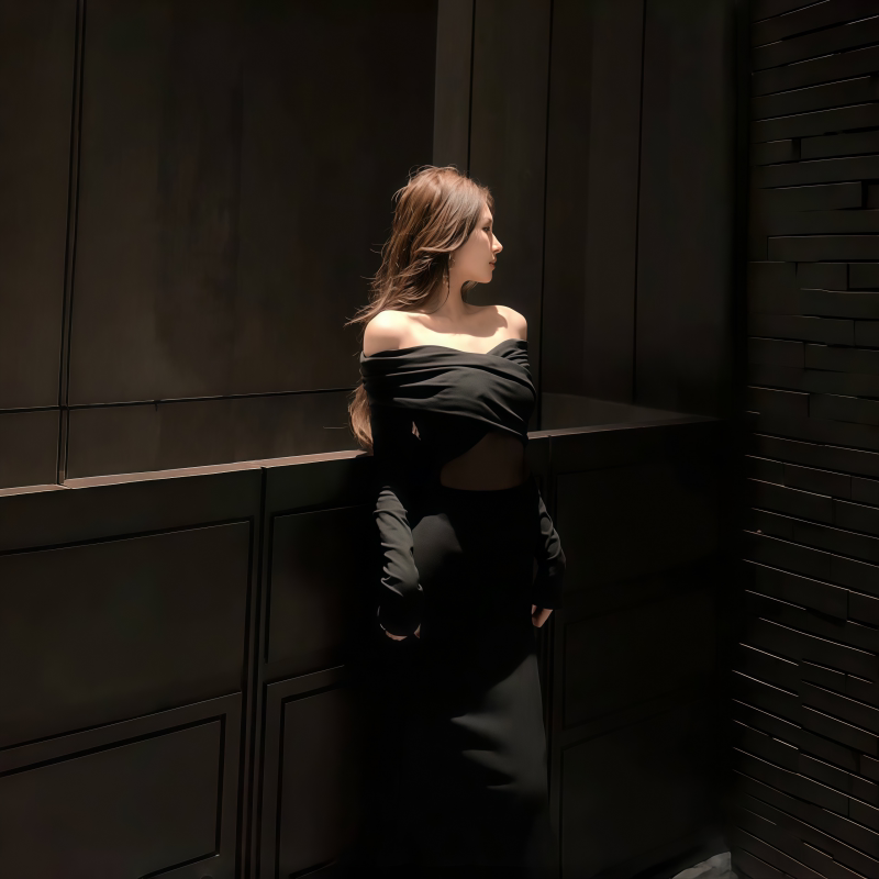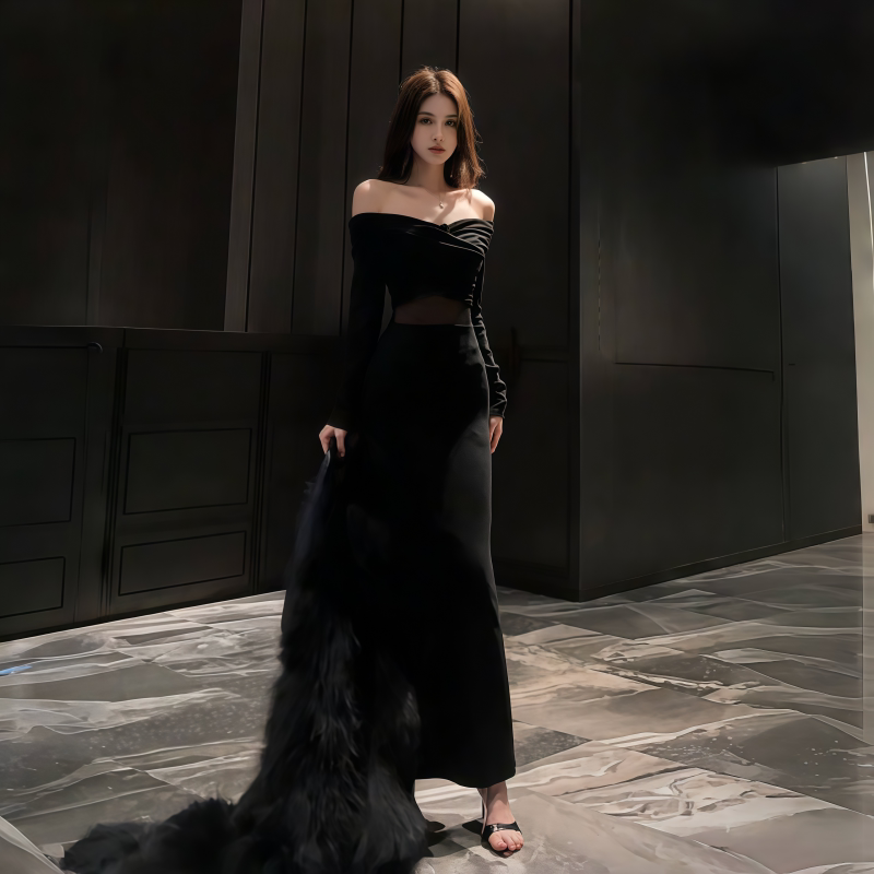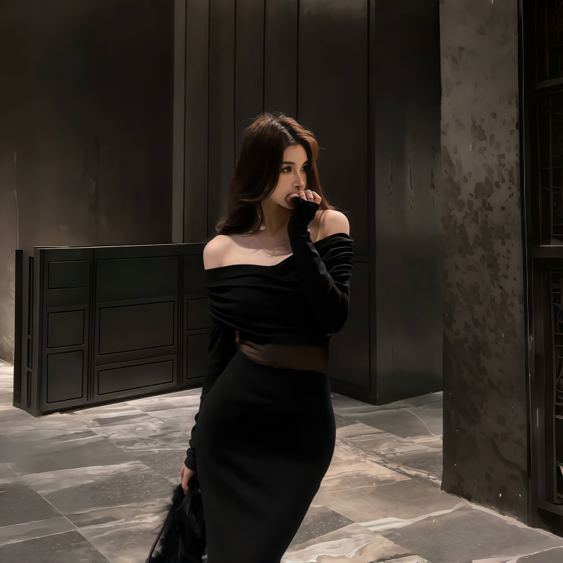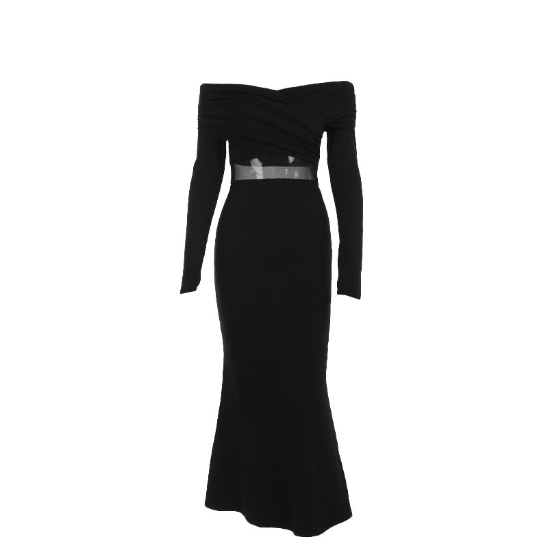 Приталенный лонгслив, платье, осенняя длинная юбка, открытые плечи, крой «рыбий хвост»
