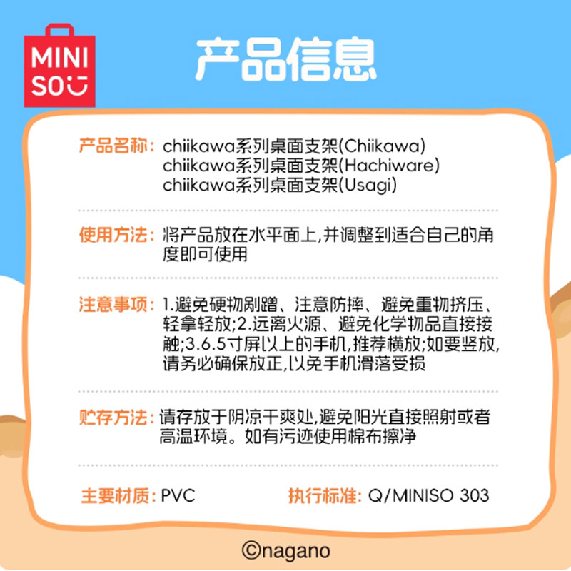 Настольная подставка серии MINISO chiikawa надежно удерживает мобильный телефон, не тряся его