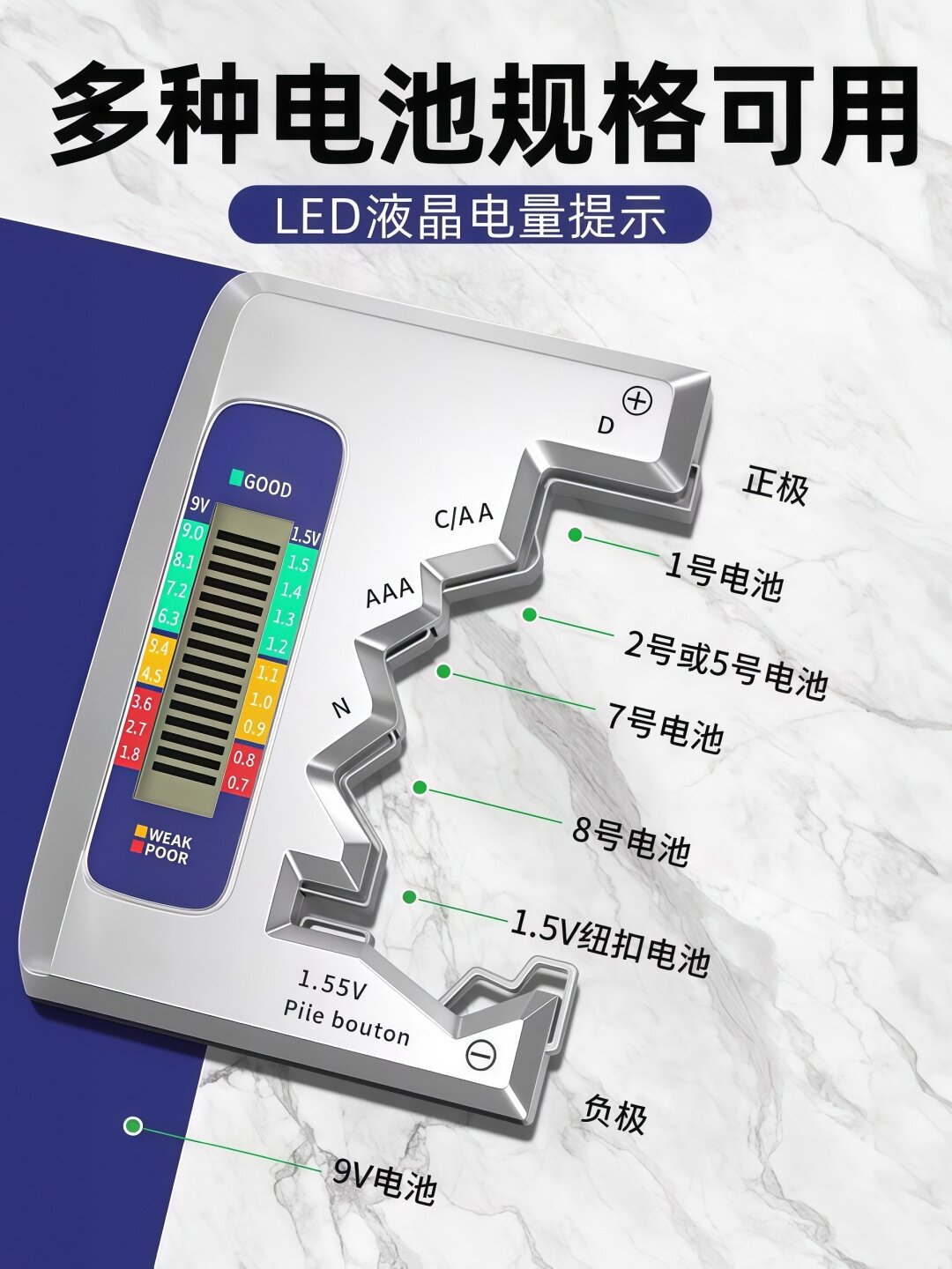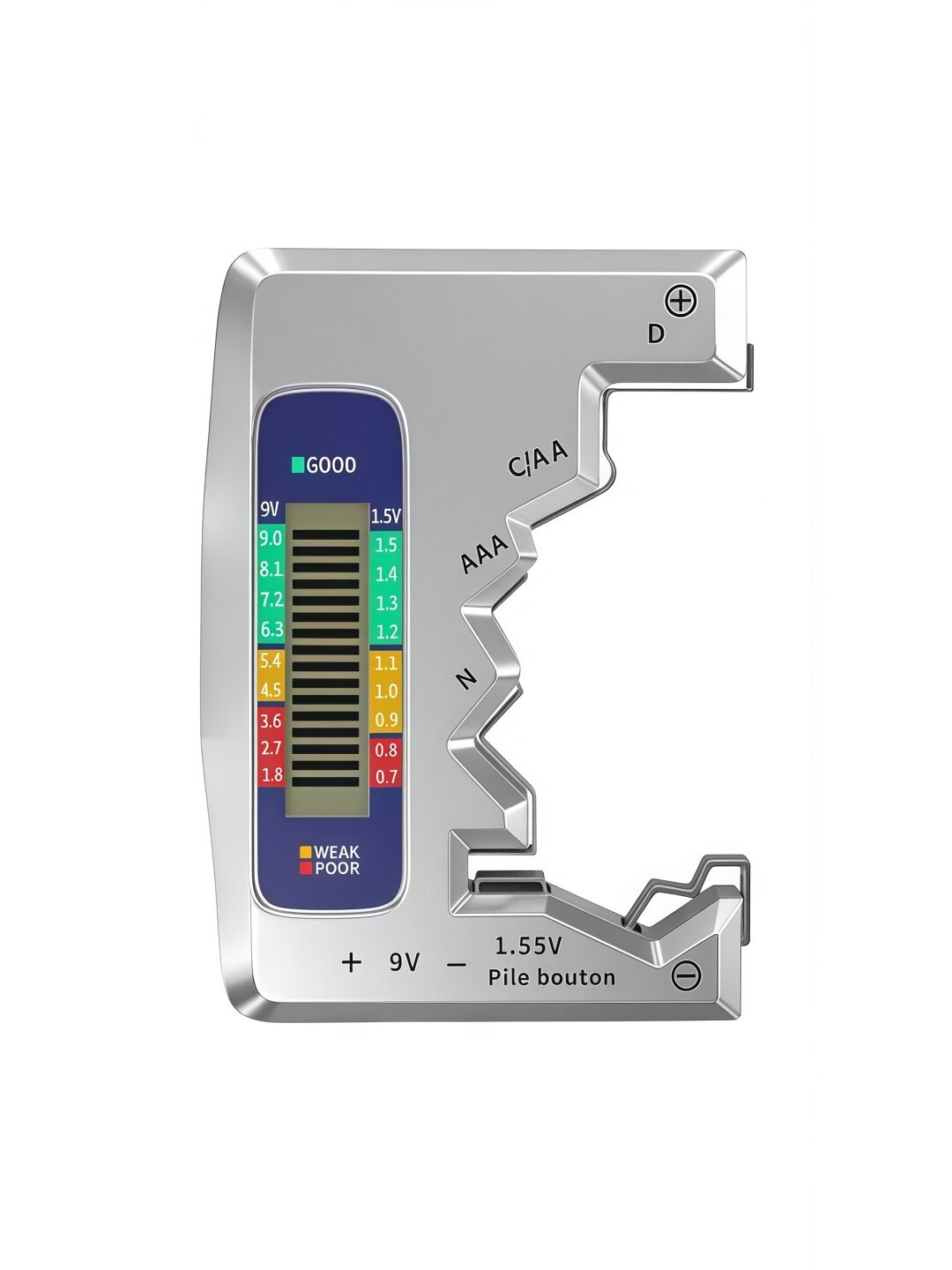 | Цвет: | Тестер батарей с цифровым дисплеем [1 упаковка] может проверять аккумуляторные батареи., Тестер батареи [серебристый, 1 упаковка], Тестер аккумуляторов с цифровым дисплеем [2 шт.] позволяет проверять аккумуляторные батареи., Тестер аккумулятора [серебряный, 2 шт.] |