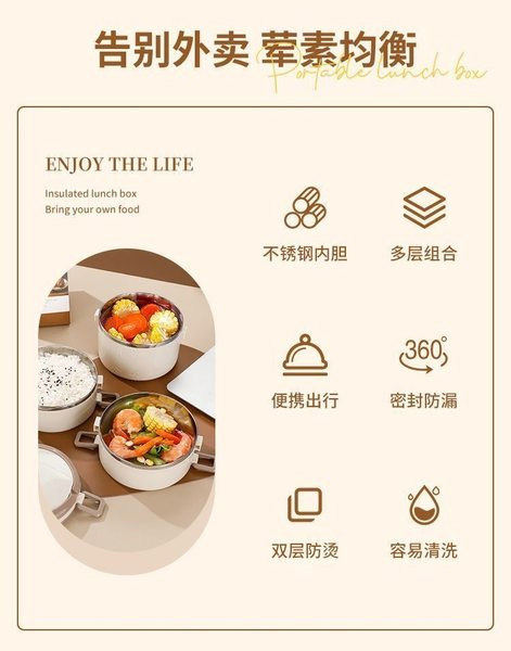 Вместительный и большой двухэтажный портативный ланч-бокс из нержавеющей стали для школьников