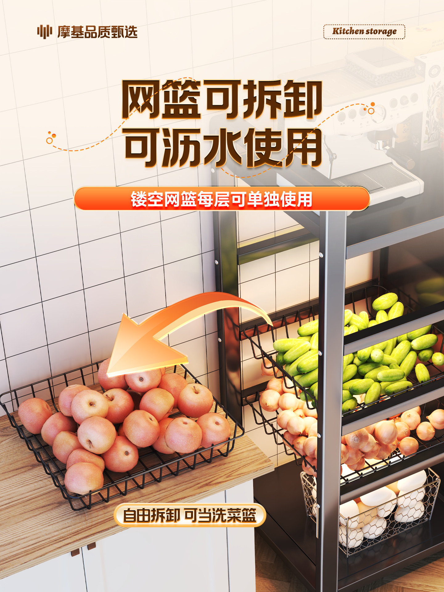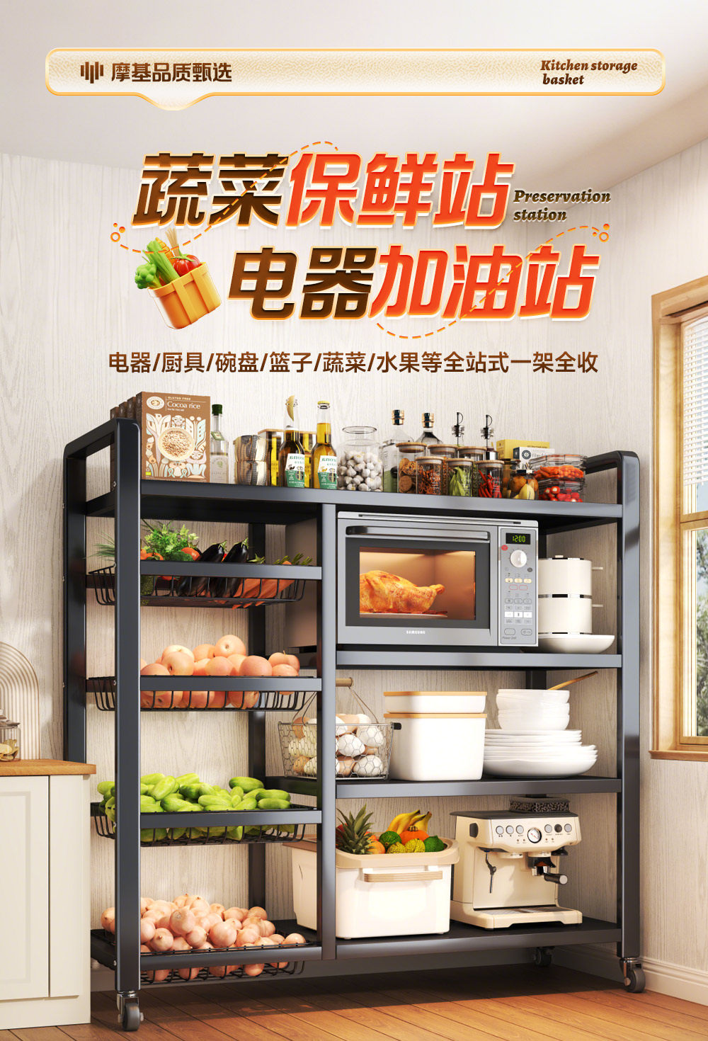 Новая кухонная полка, бытовой напольный многослойный шкаф для хранения фруктов и овощей, многофункциональный шкаф для хранения закусок в микроволновой печи