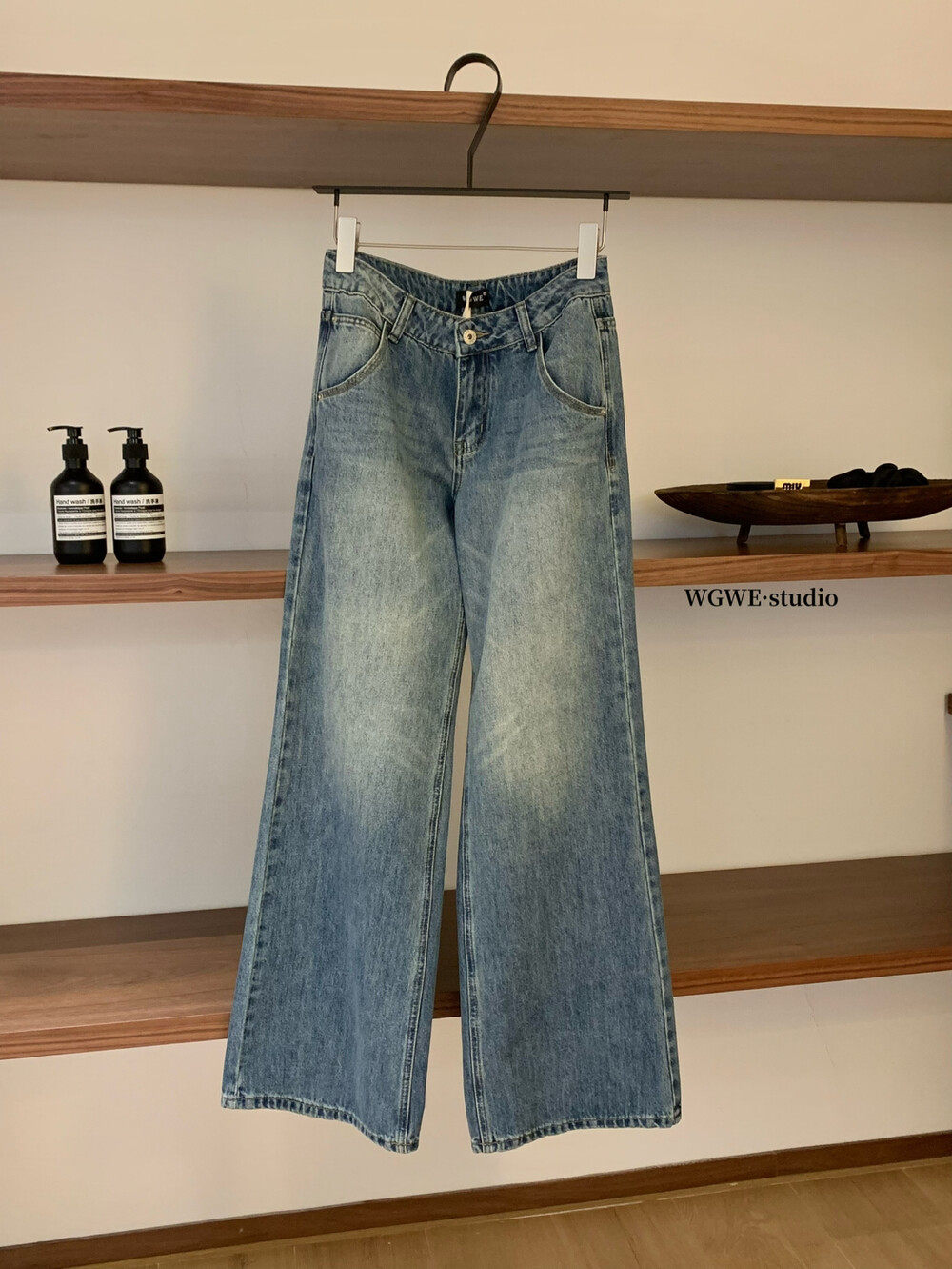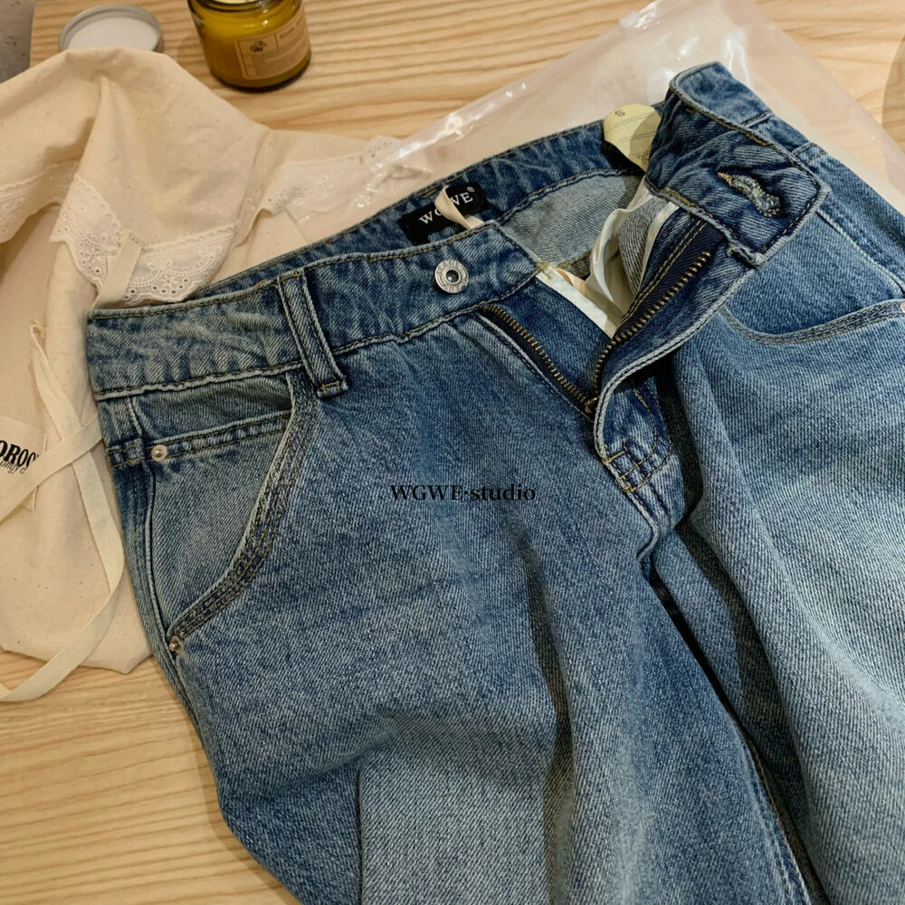 Джинсы, штаны, повседневные брюки для отдыха, в корейском стиле, высокая талия, свободный прямой крой