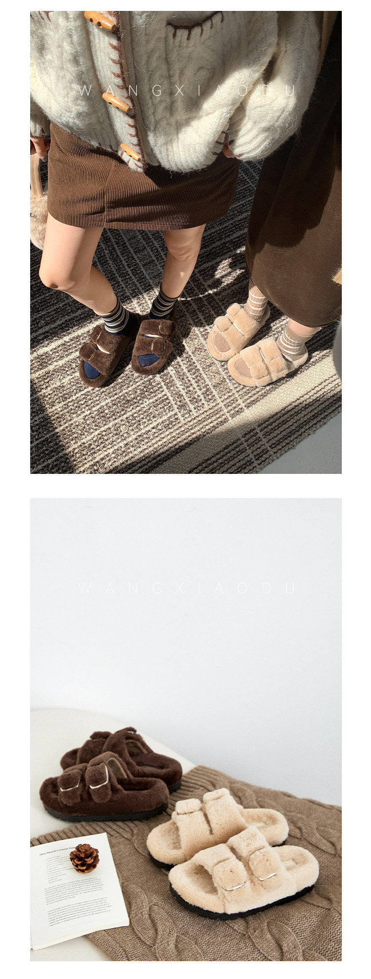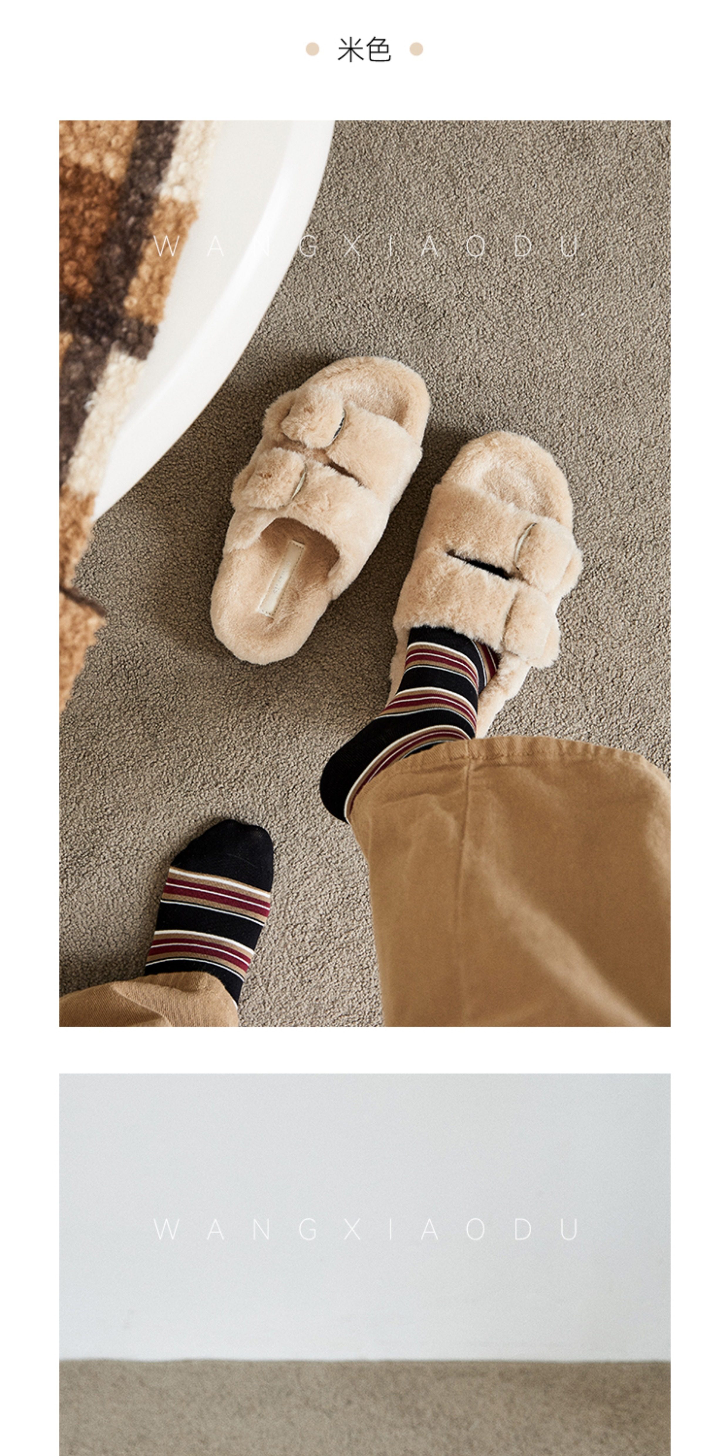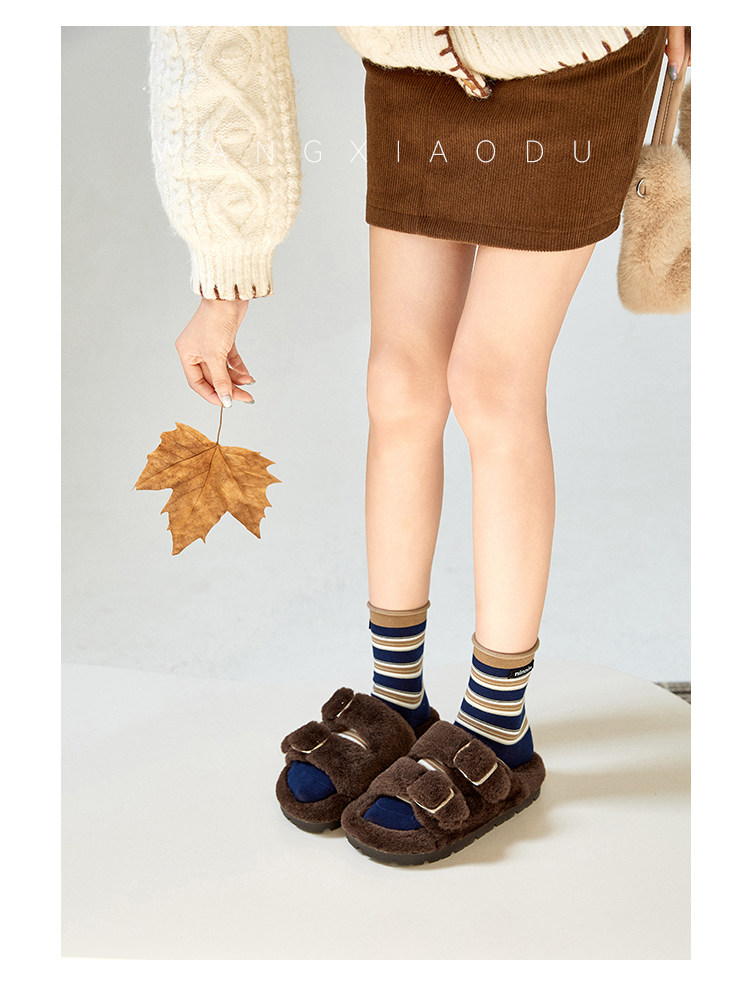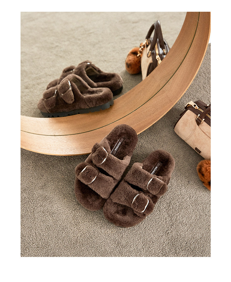 [Ван Сяоду] Теплые меховые шлепанцы высотой 4 см для женщин, легкие зимние теплые тапочки