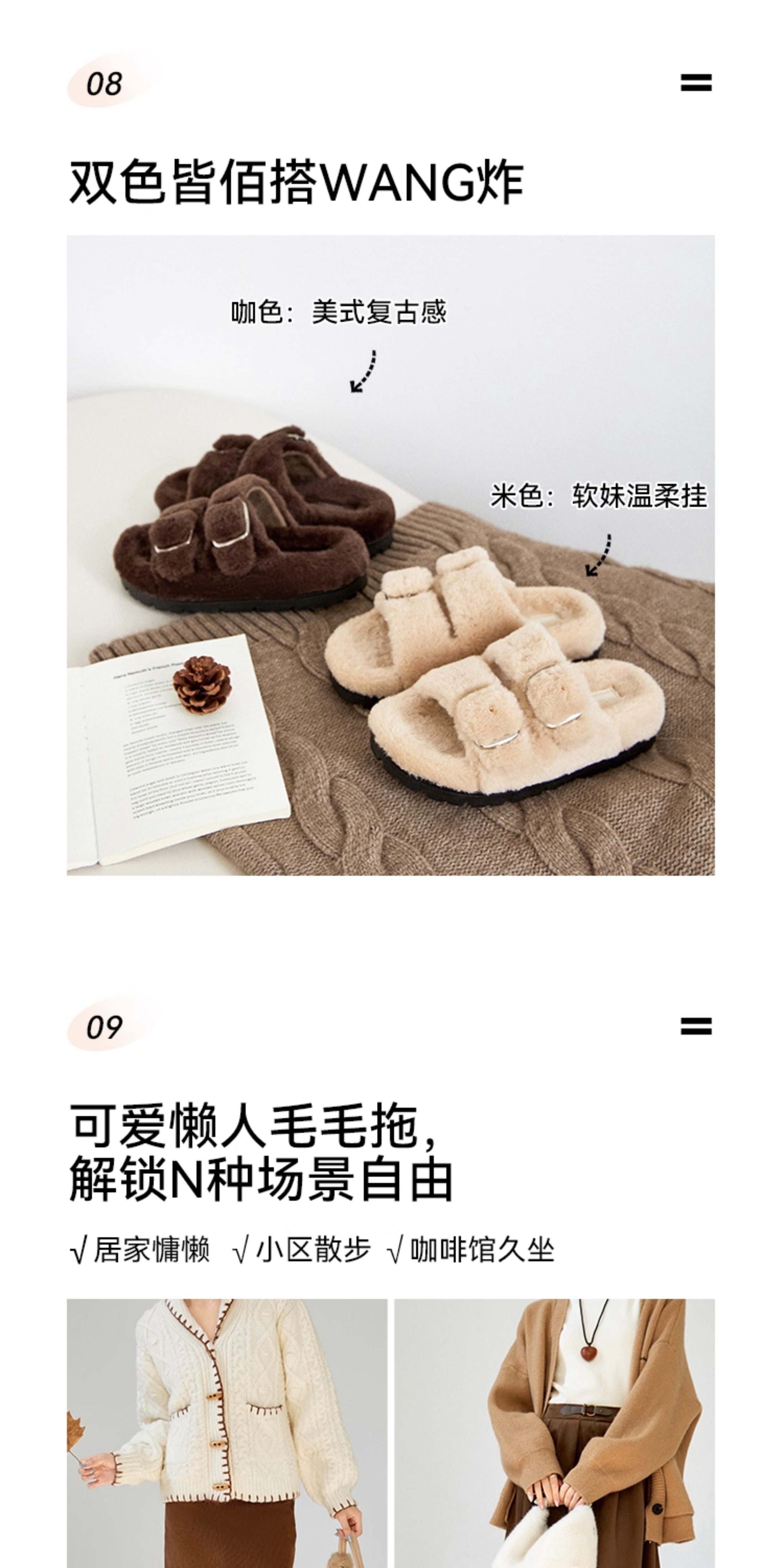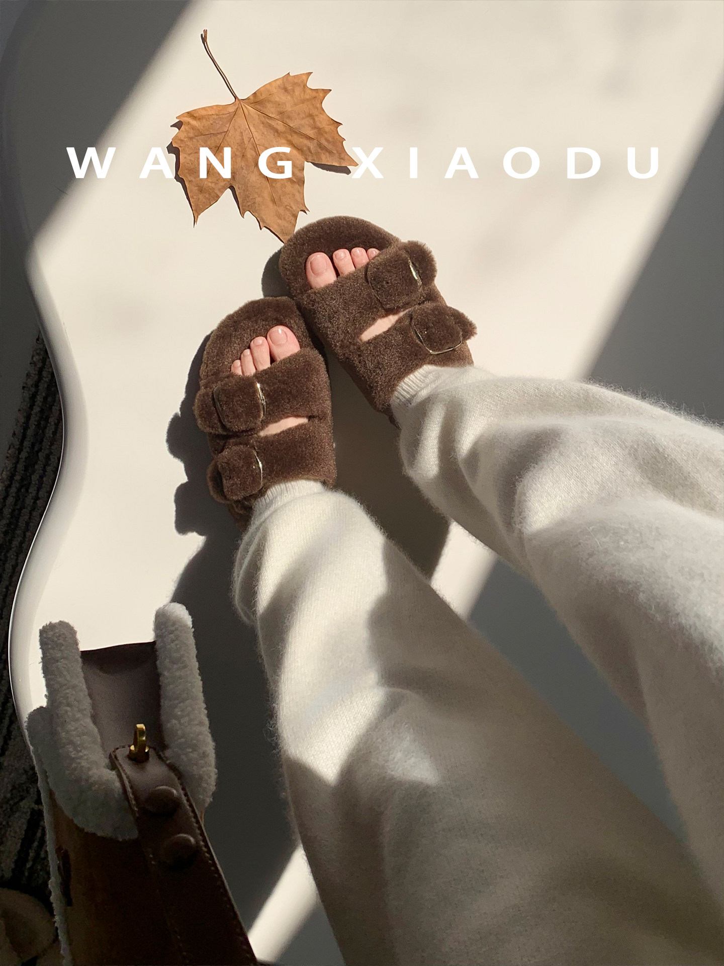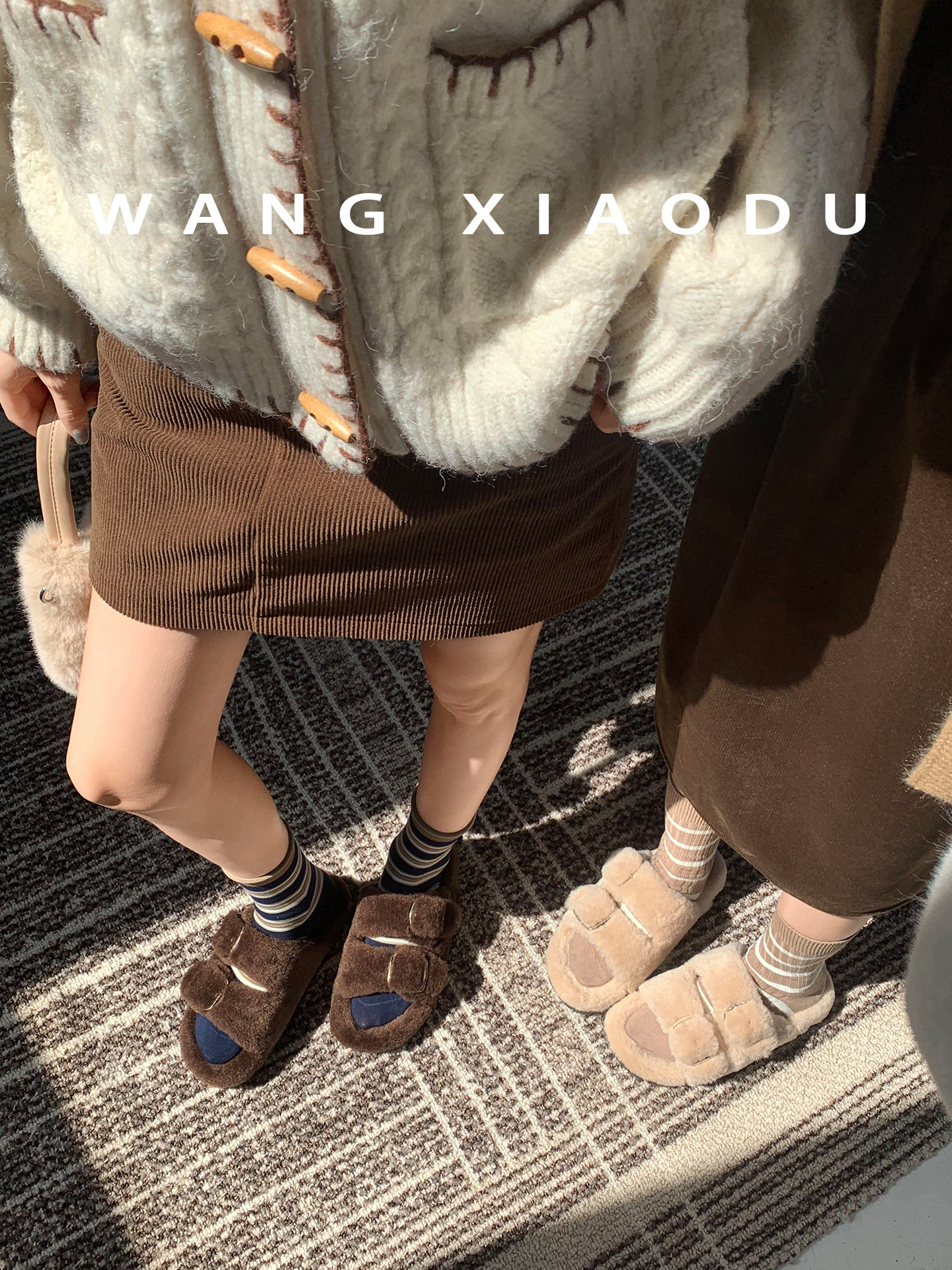 [Ван Сяоду] Теплые меховые шлепанцы высотой 4 см для женщин, легкие зимние теплые тапочки