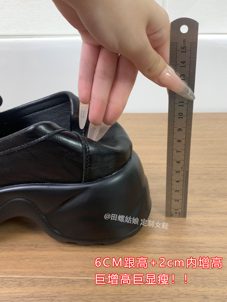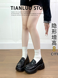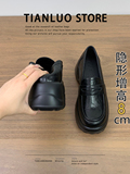 Женские лоферы из натуральной толстой подошвы. Новинка 2025 года. Черные маленькие кожаные туфли в британском стиле с повышением высоты на один шаг в стиле ретро.