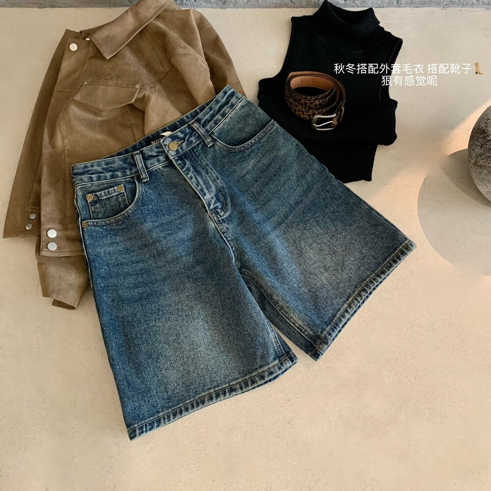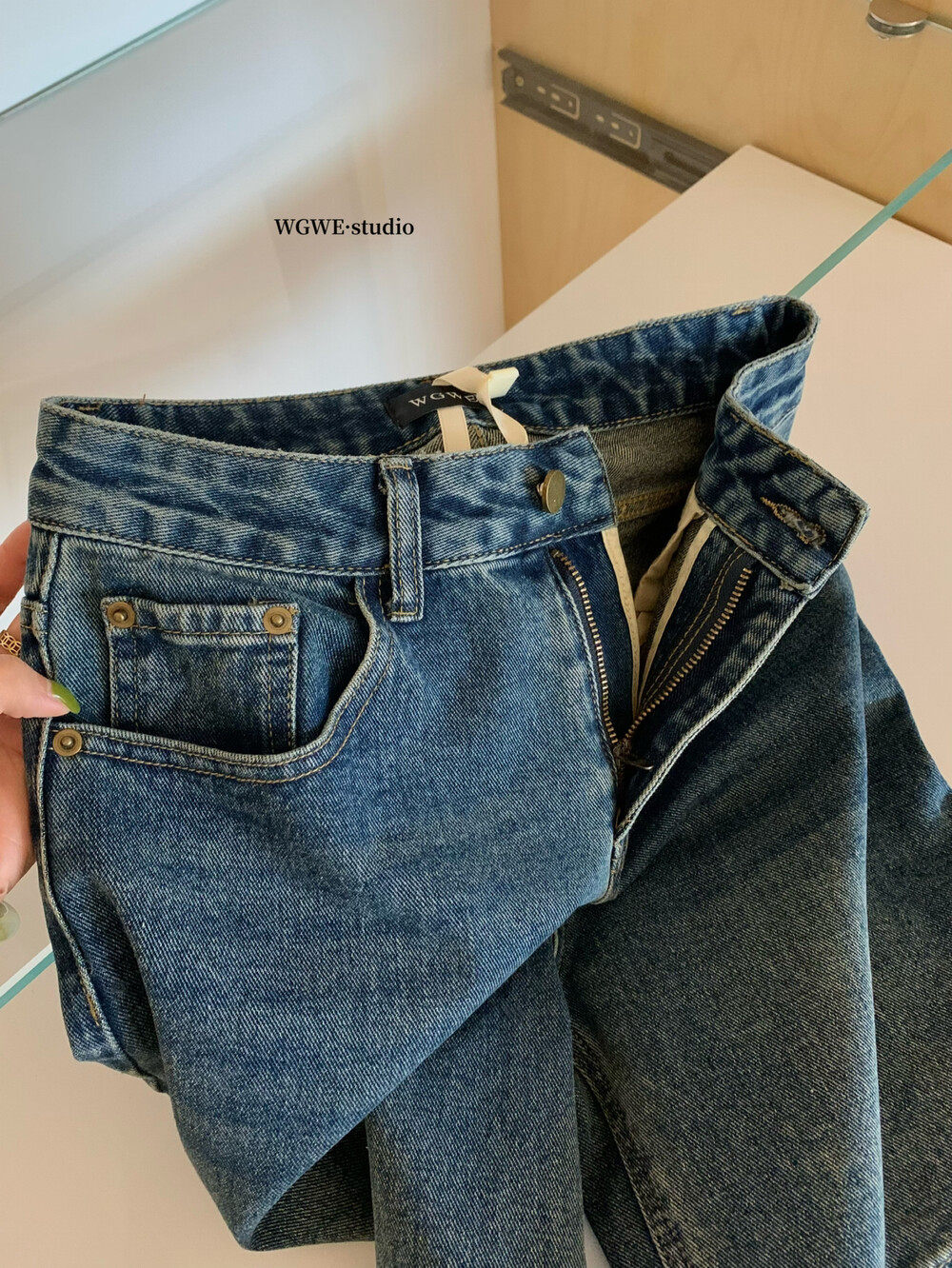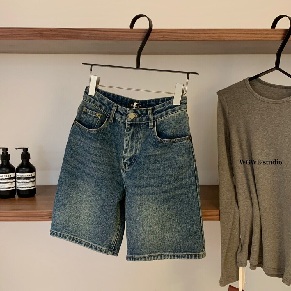 Джинсы, в корейском стиле, с вышивкой, высокая талия, свободный прямой крой