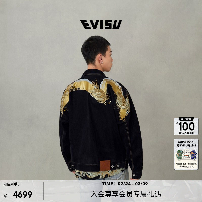 Мужская джинсовая куртка EVISU Fushen большого размера с принтом M 2EAHTM5DJ1022LFDN