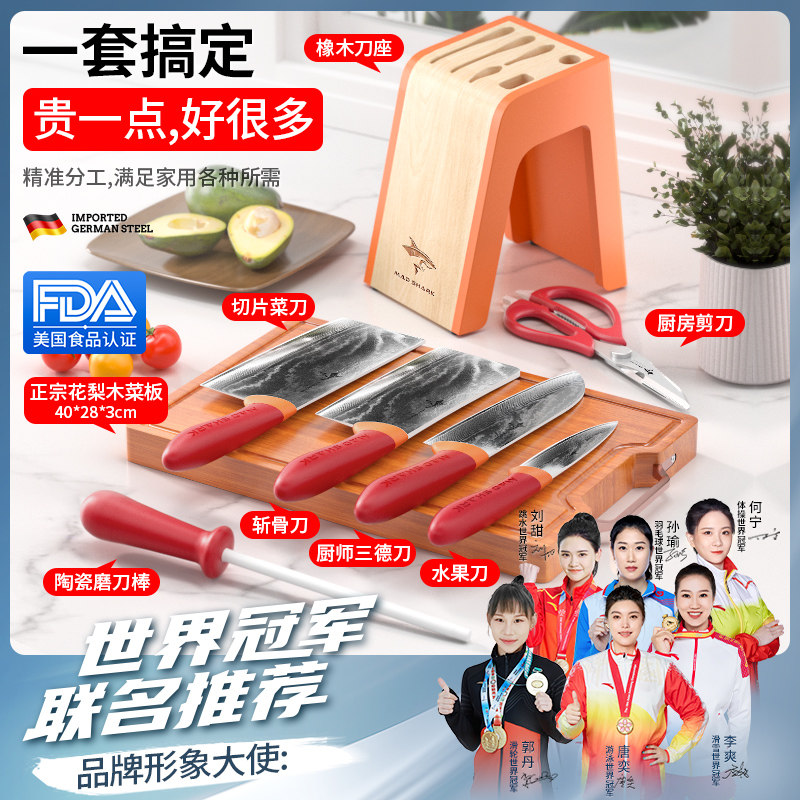 Crazy Shark, немецкий дамасский набор ножей, кухонный бытовой полный набор кухонной утвари, нож, разделочная доска, горшок, лопатка, комбинация ложек