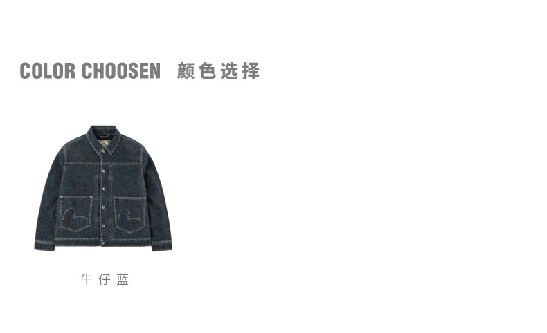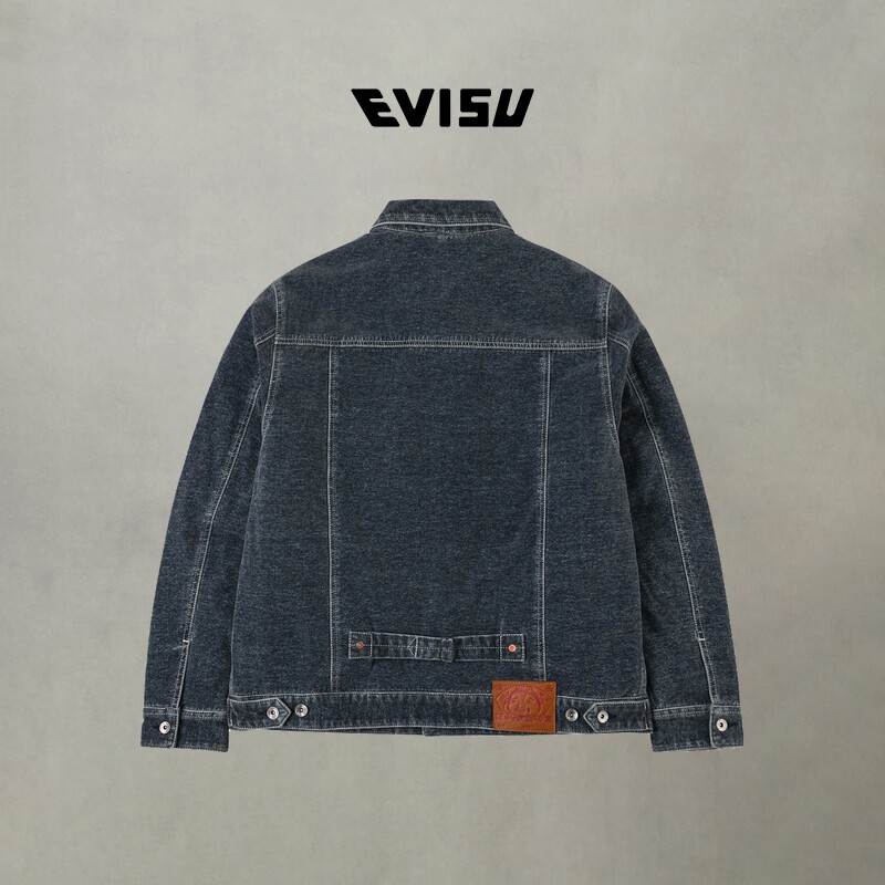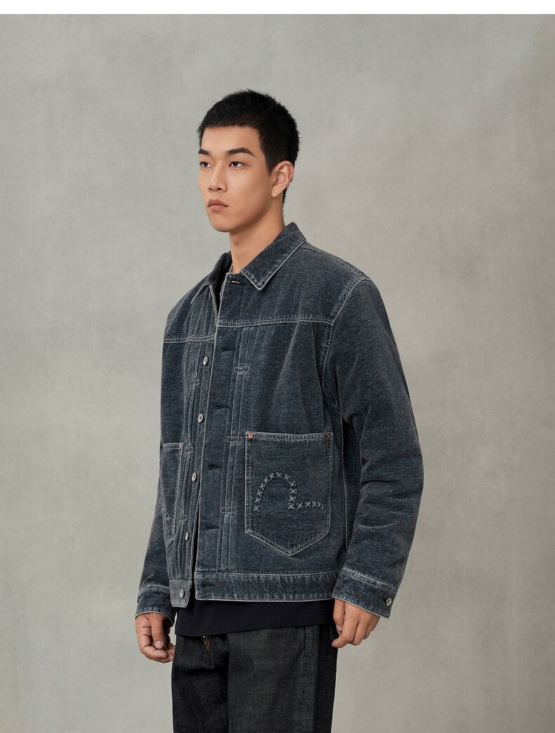 Мужская утепленная джинсовая куртка EVISU Fushen с заклепками и тиснением чайки 2EAHTM5DJ1019RXDQ