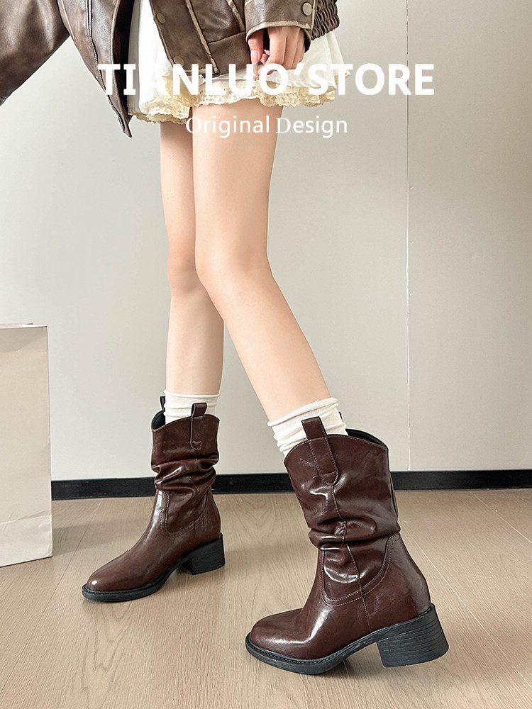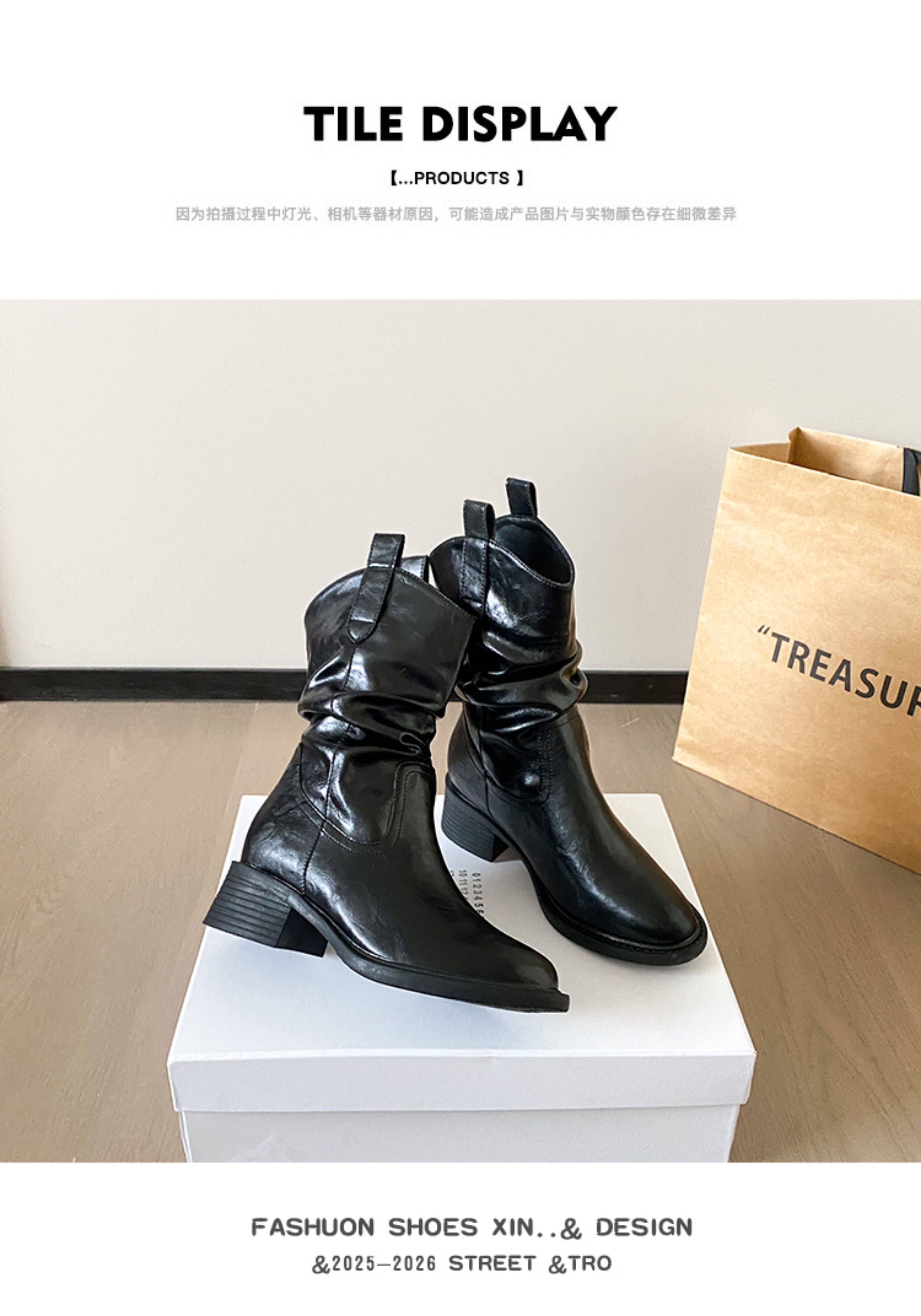 Кожаные демисезонные высокие короткие сапоги, из натуральной кожи, французский стиль, по фигуре