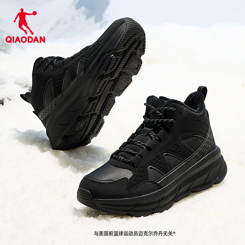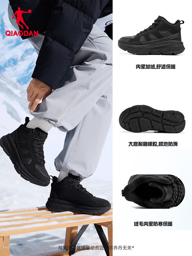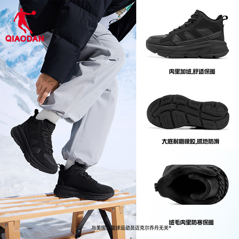 乔丹 Женские бархатные походные туфли 2025, зимние новые стильные большие хлопковые теплые кроссовки на толстой подошве, нескользящая спортивная обувь на открытом воздухе, походные хлопковые туфли
