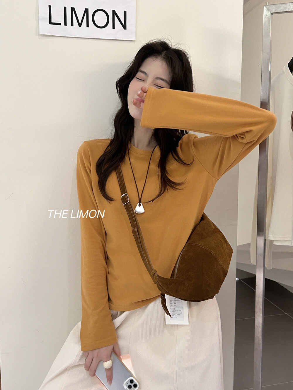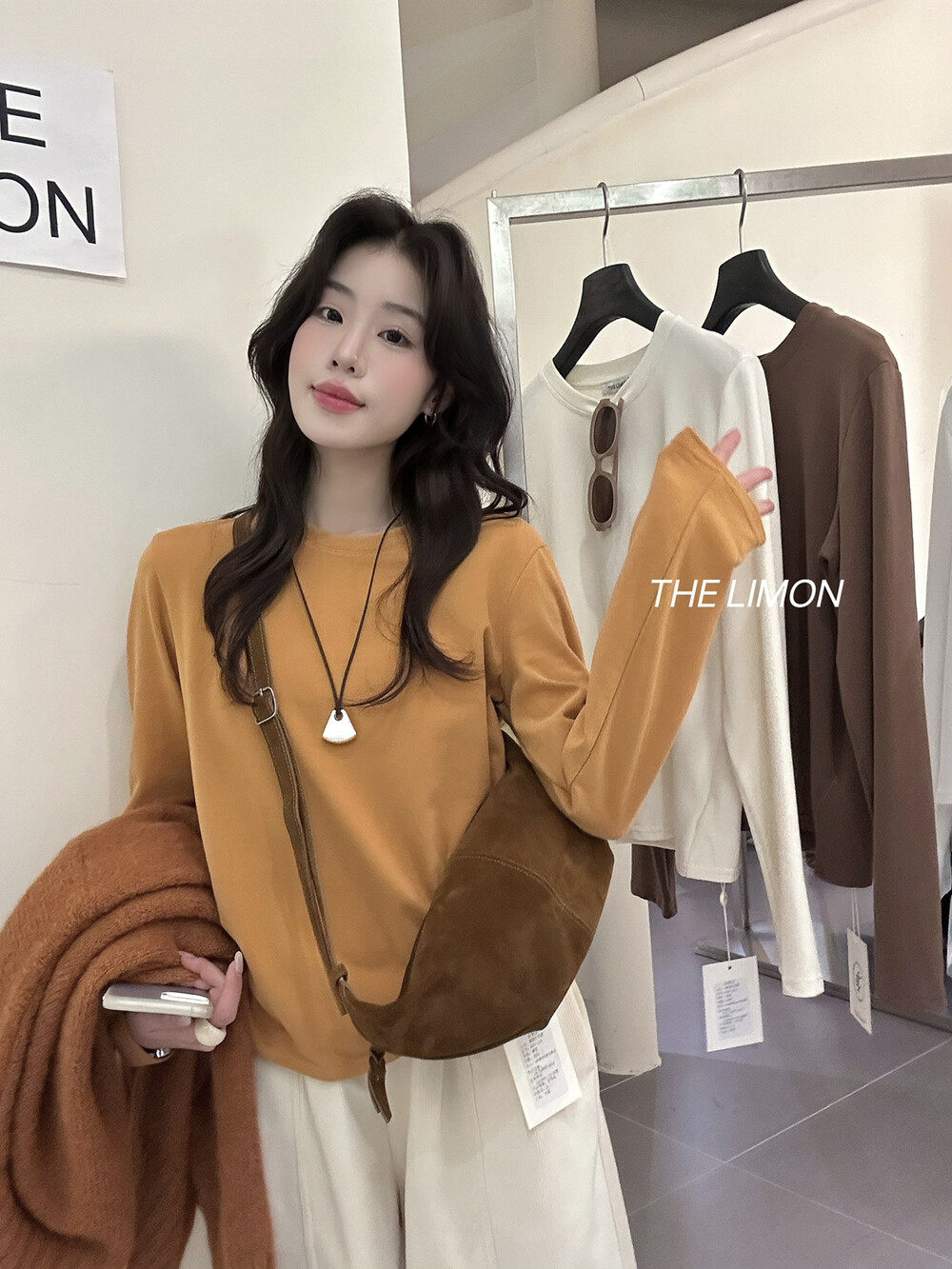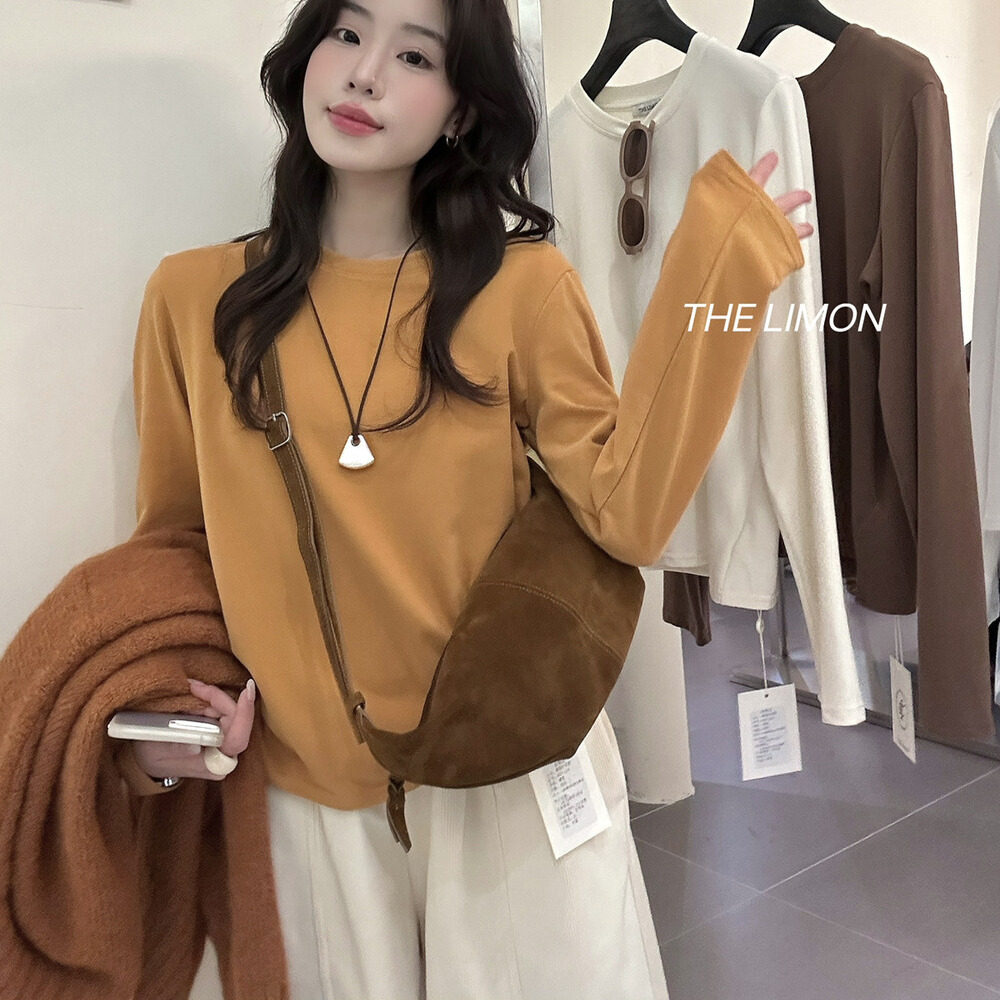 THE LEMON2025, осенняя корейская версия, универсальная тонкая футболка с круглым вырезом и длинными рукавами, женская бархатная базовая модная футболка с облаком