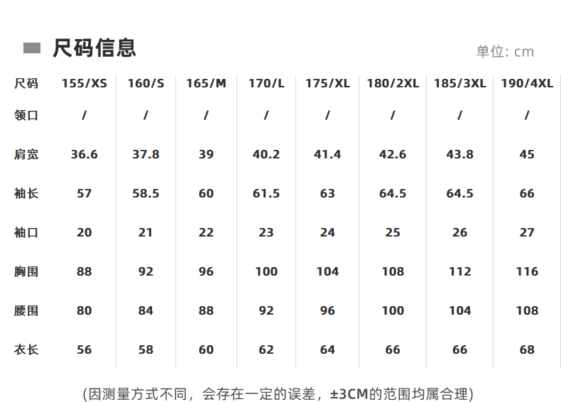 | Размер: | 155/XS, 160/S, 165/M, 170/L, 175/XL, 180/2XL, 185/3XL, 190/4XL |