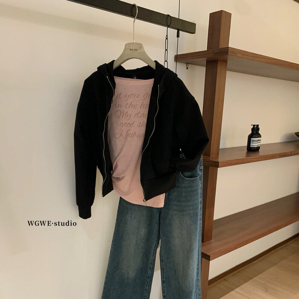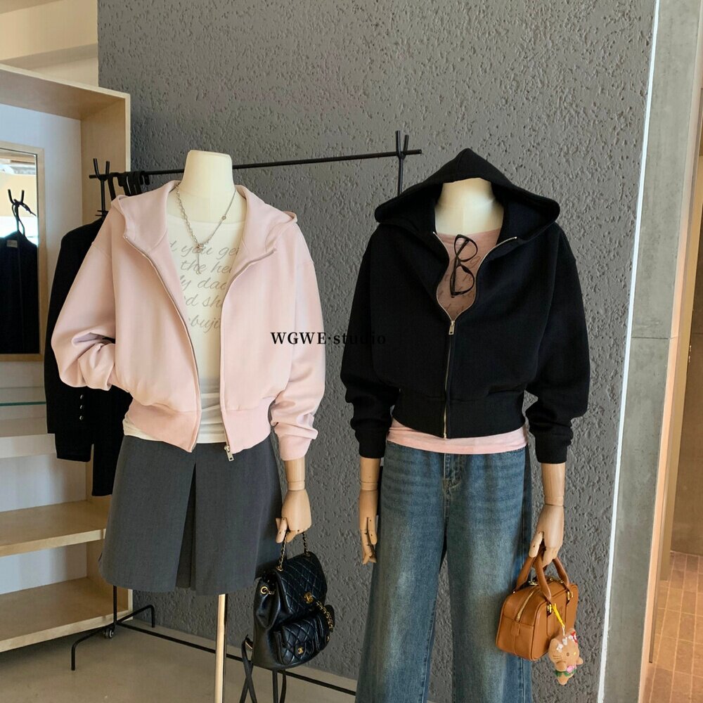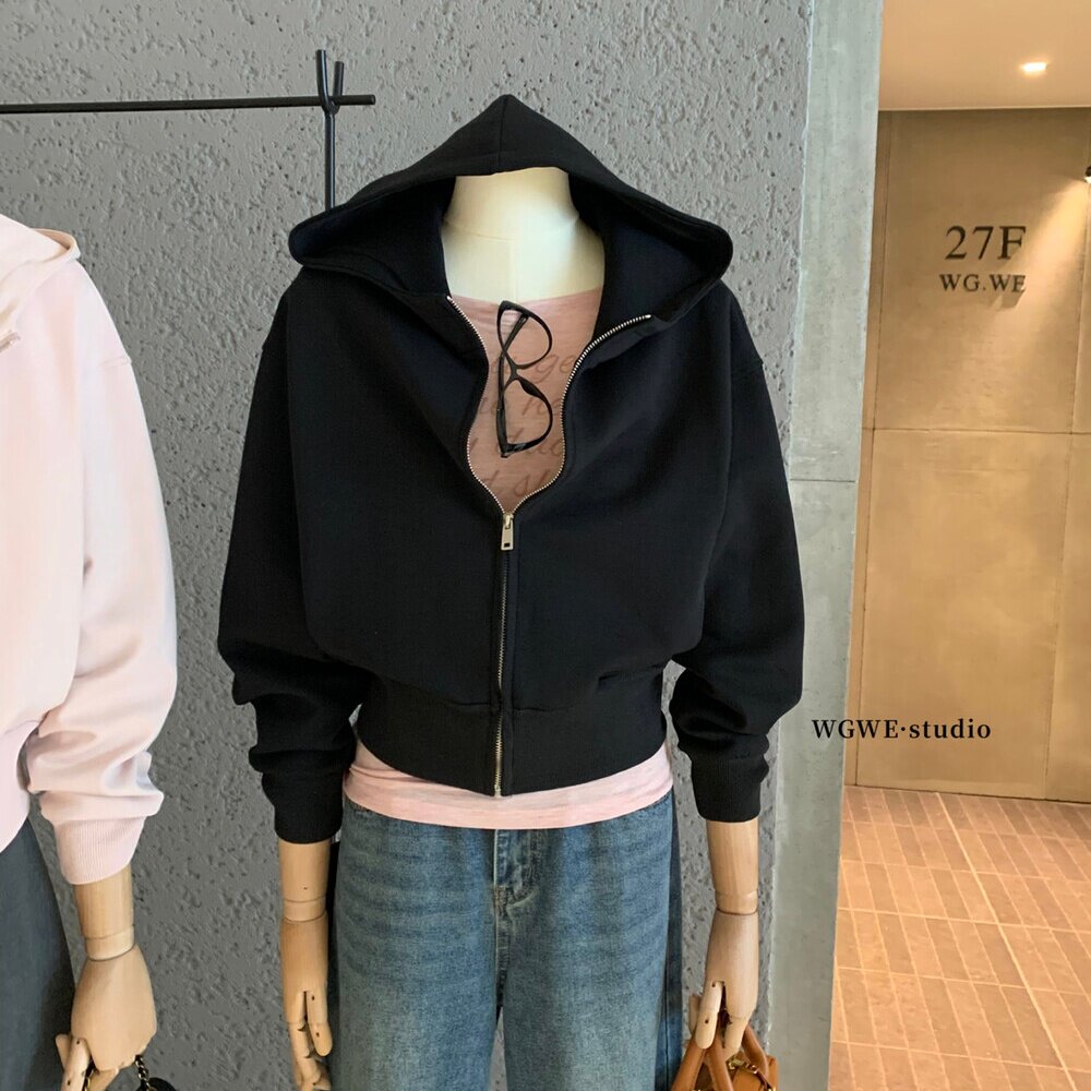 Толстовка с капюшоном с молнией, куртка, короткий кардиган, в корейском стиле, оверсайз