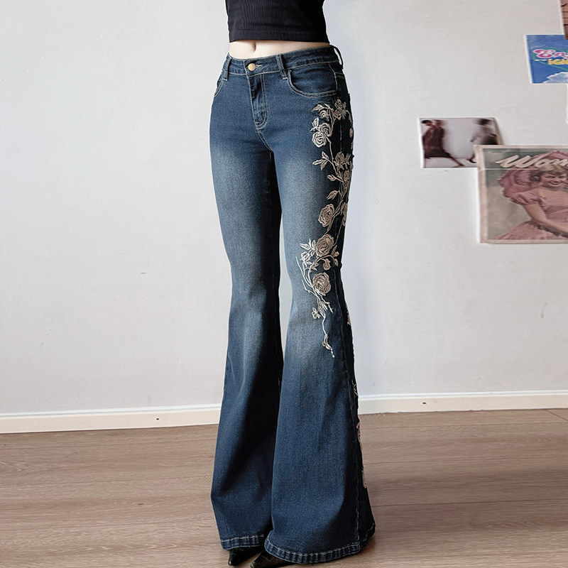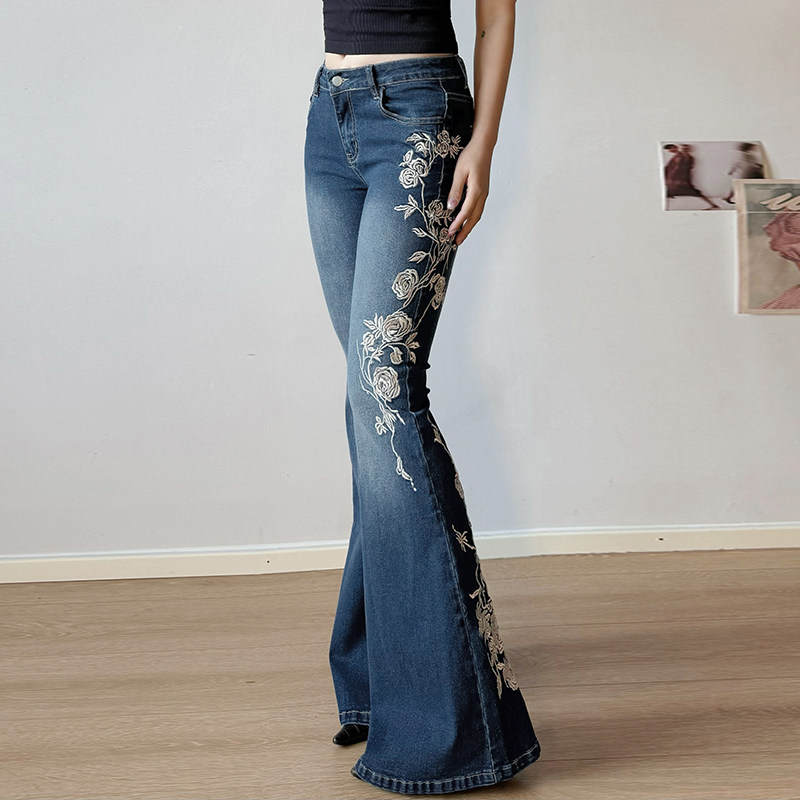 WEEKEEP Джинсы, приталенные штаны, с вышивкой