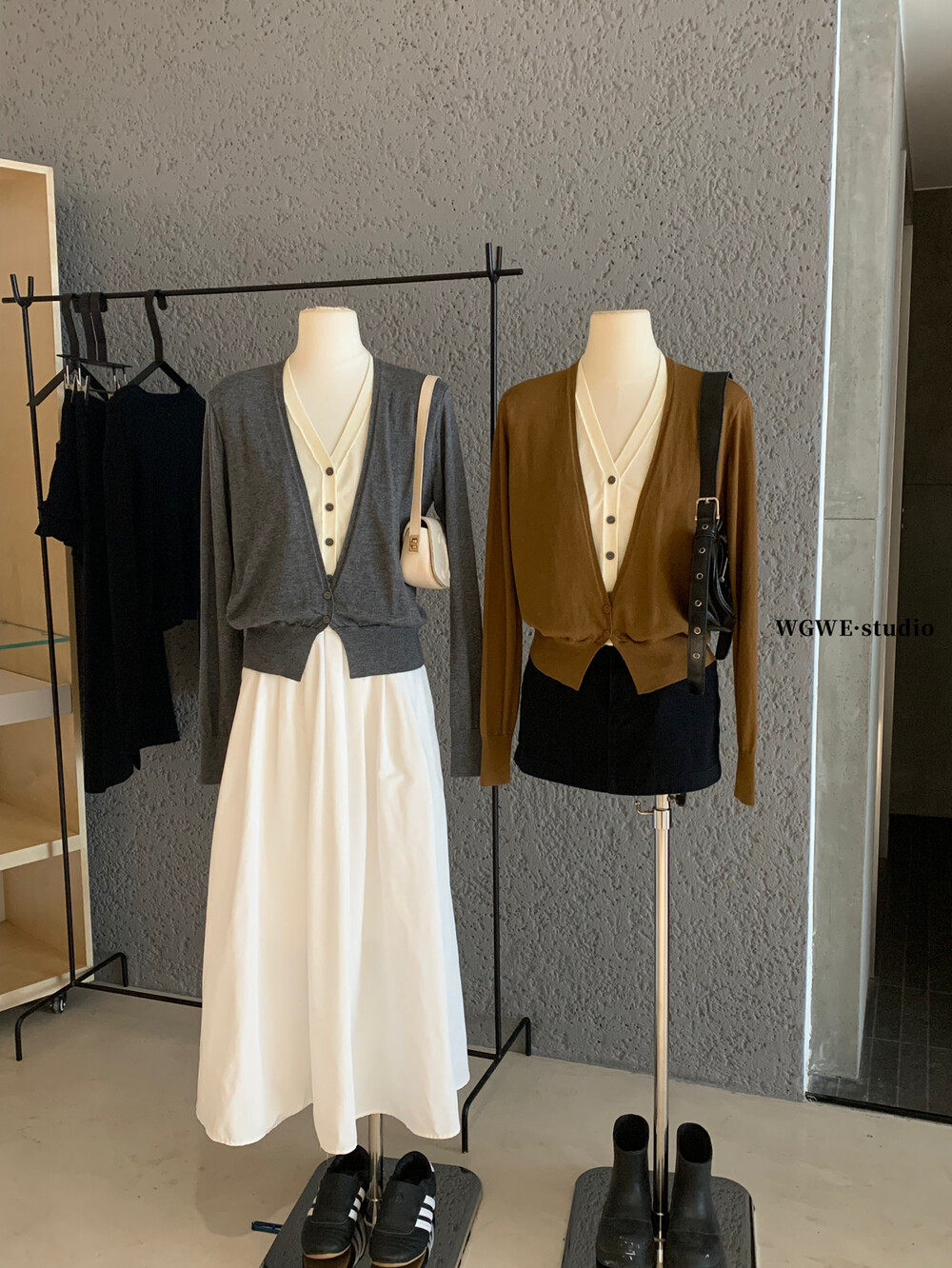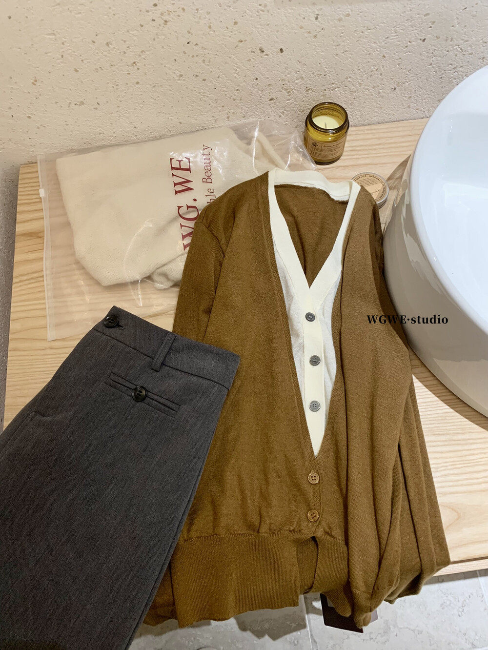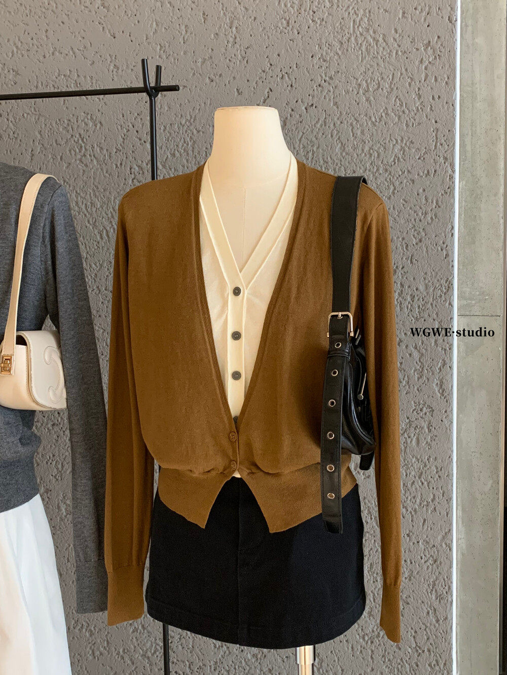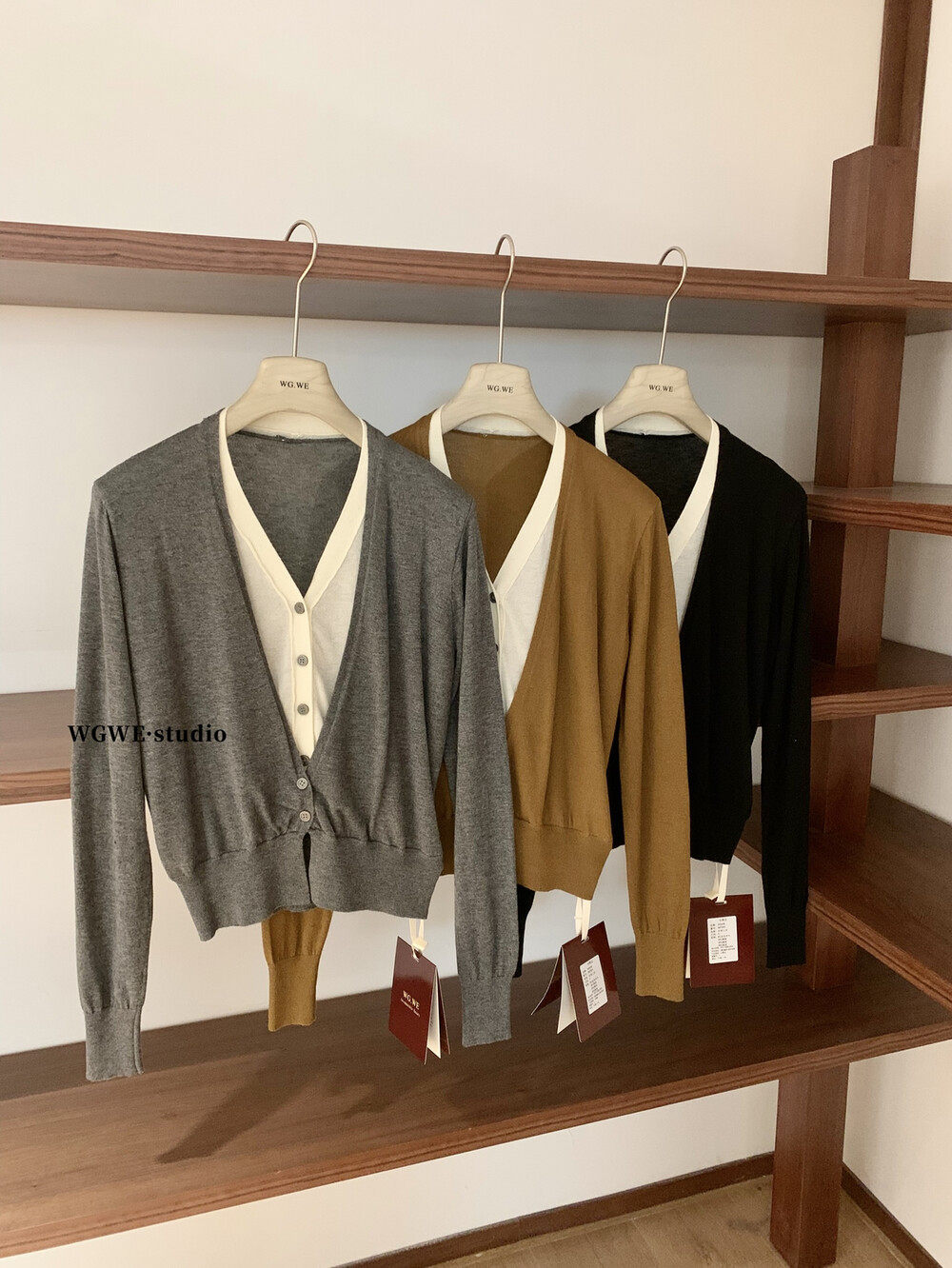Универсальный комплект, лонгслив, кардиган, в корейском стиле, V-образный вырез, в западном стиле
