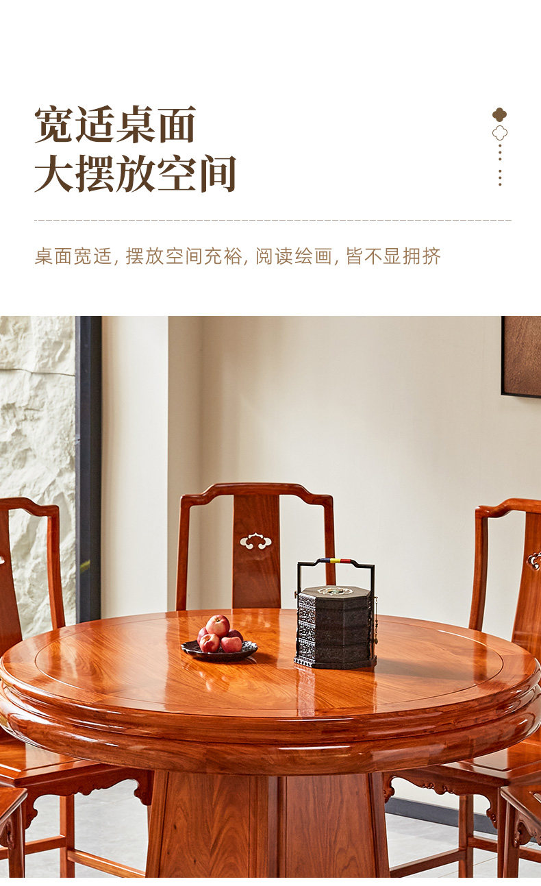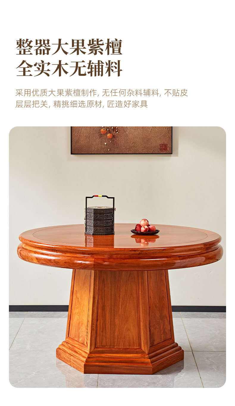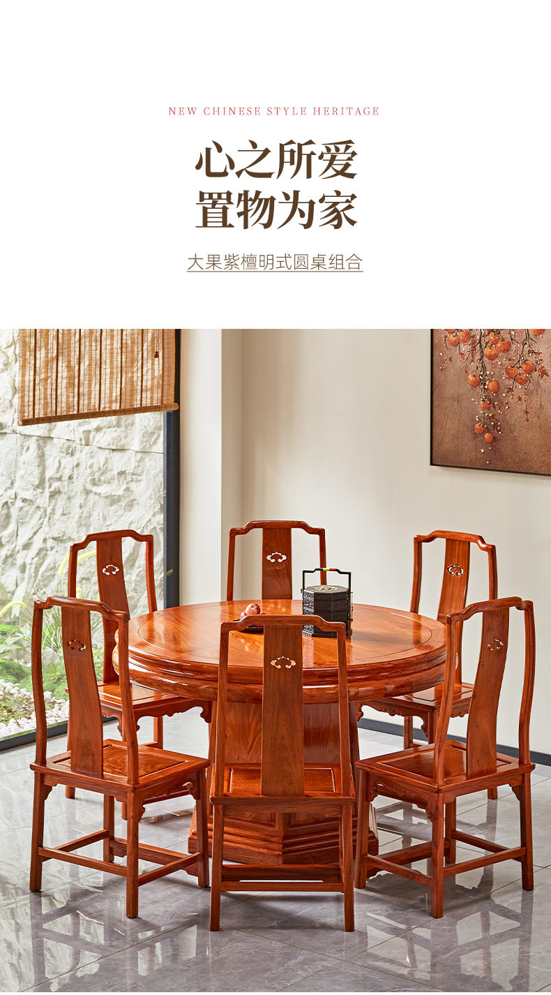 Обеденный стол и стул из бирманского палисандра, комбинация красного дерева, большой фруктовый палисандр, домашний круглый стол в китайском стиле с поворотным столом, большой круглый стол