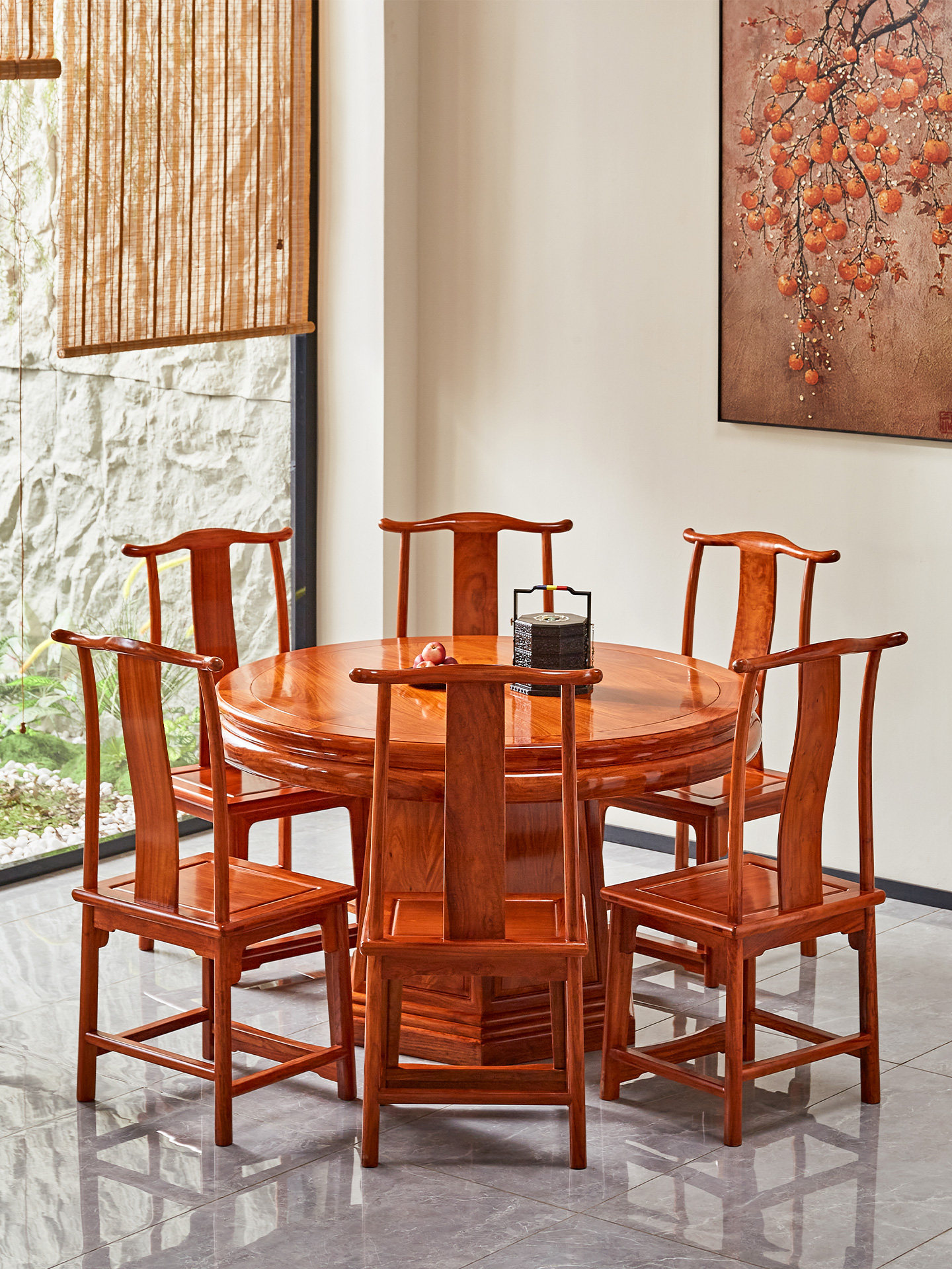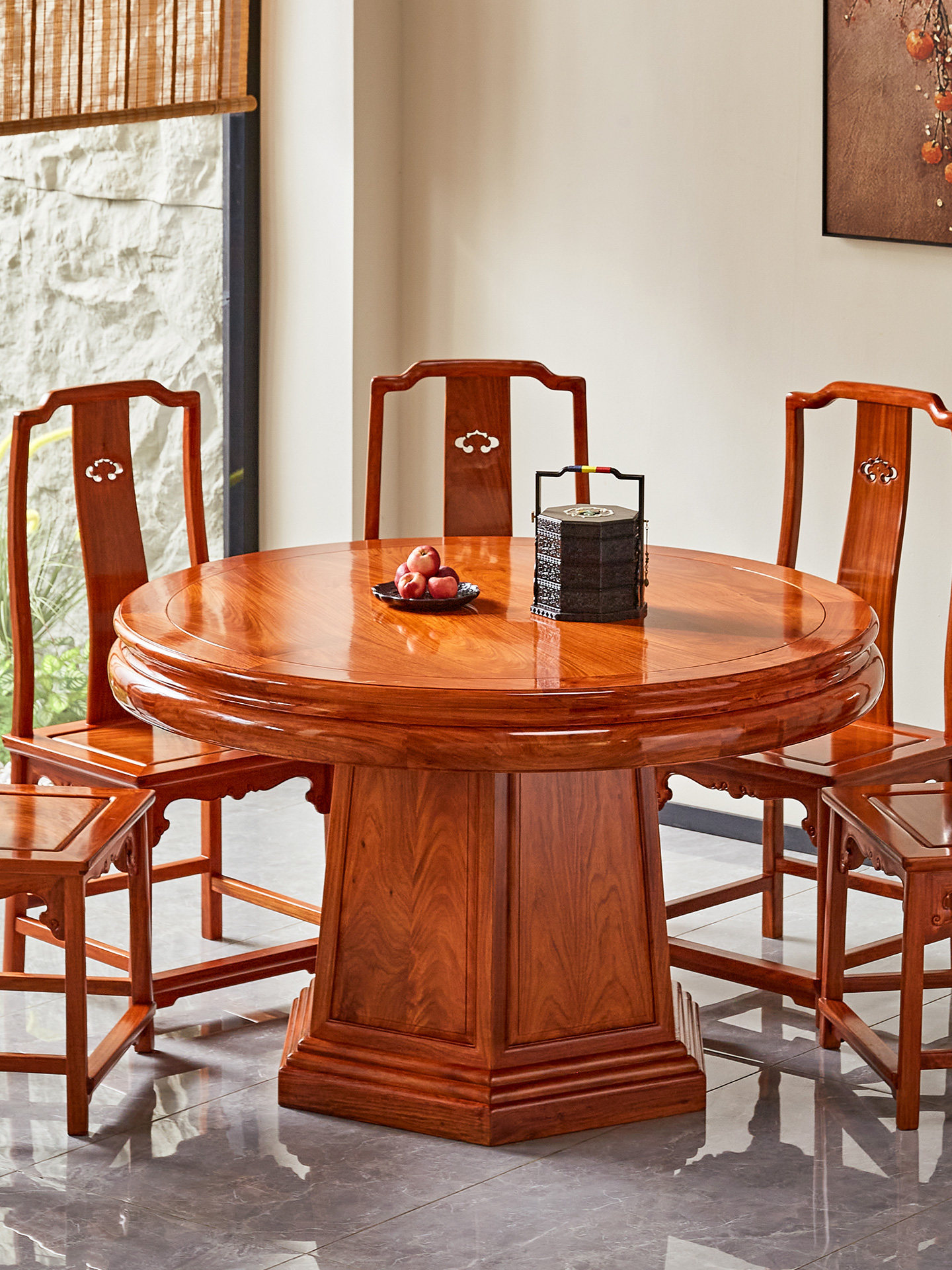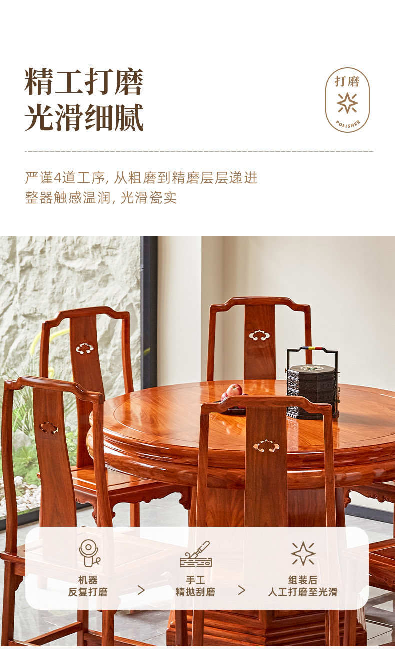 Обеденный стол и стул из бирманского палисандра, комбинация красного дерева, большой фруктовый палисандр, домашний круглый стол в китайском стиле с поворотным столом, большой круглый стол