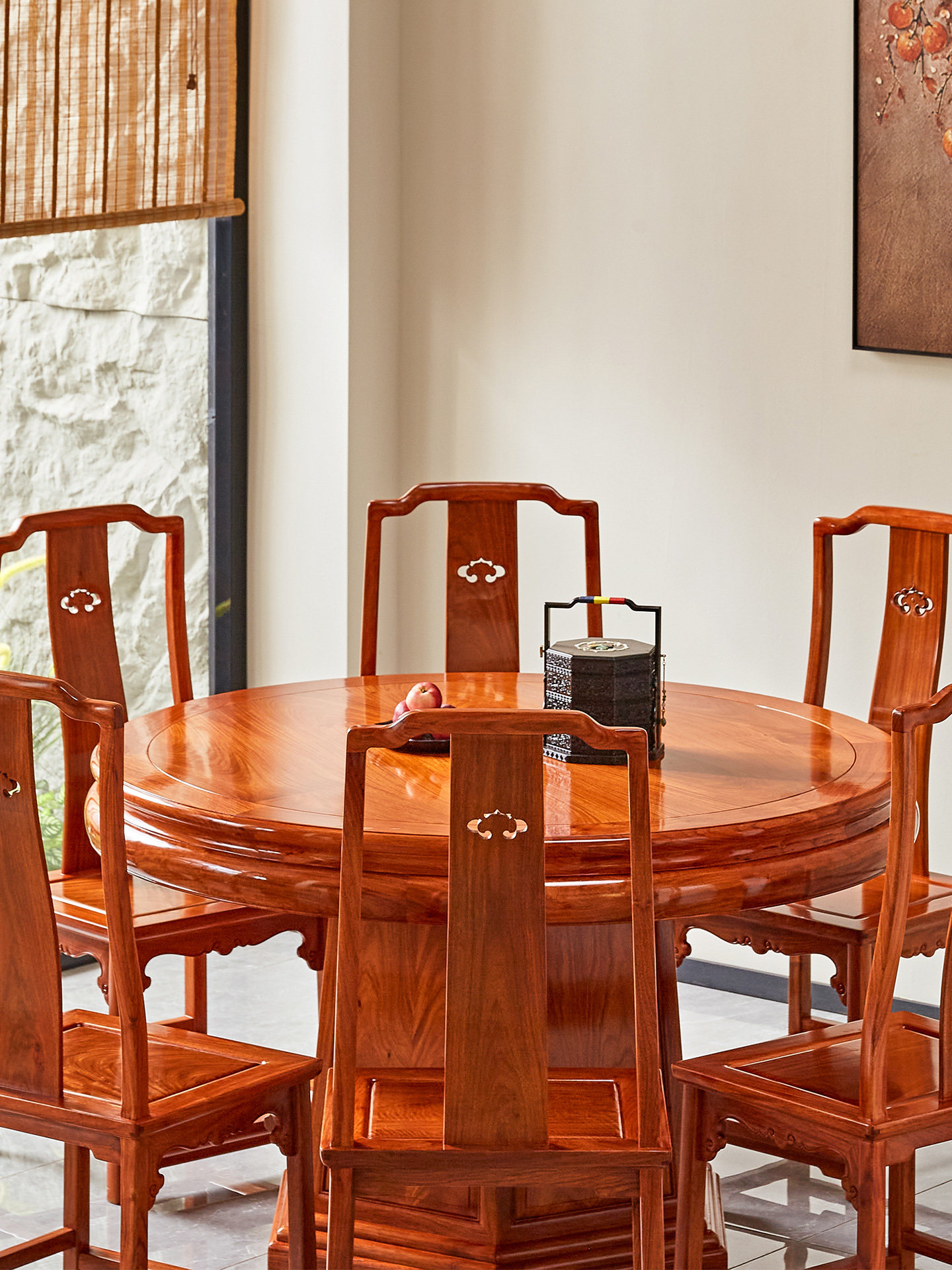 - Круглый обеденный стол Burmese Flower 138 (с поворотным столом) + обеденные стулья*6