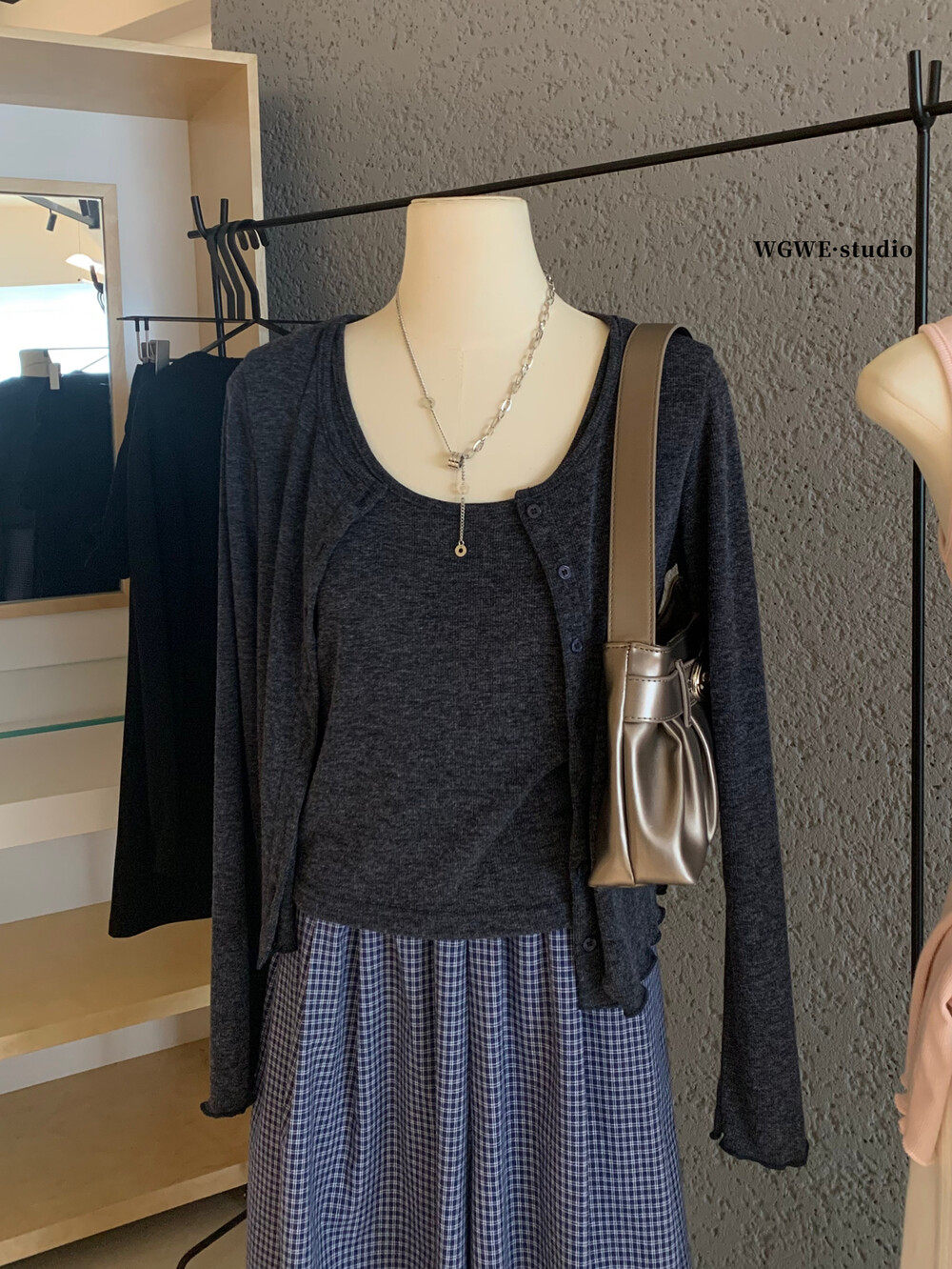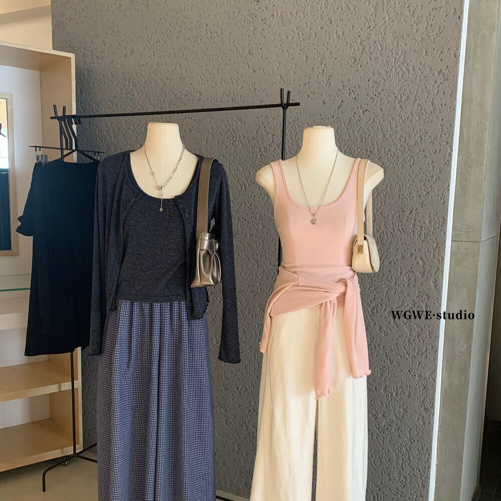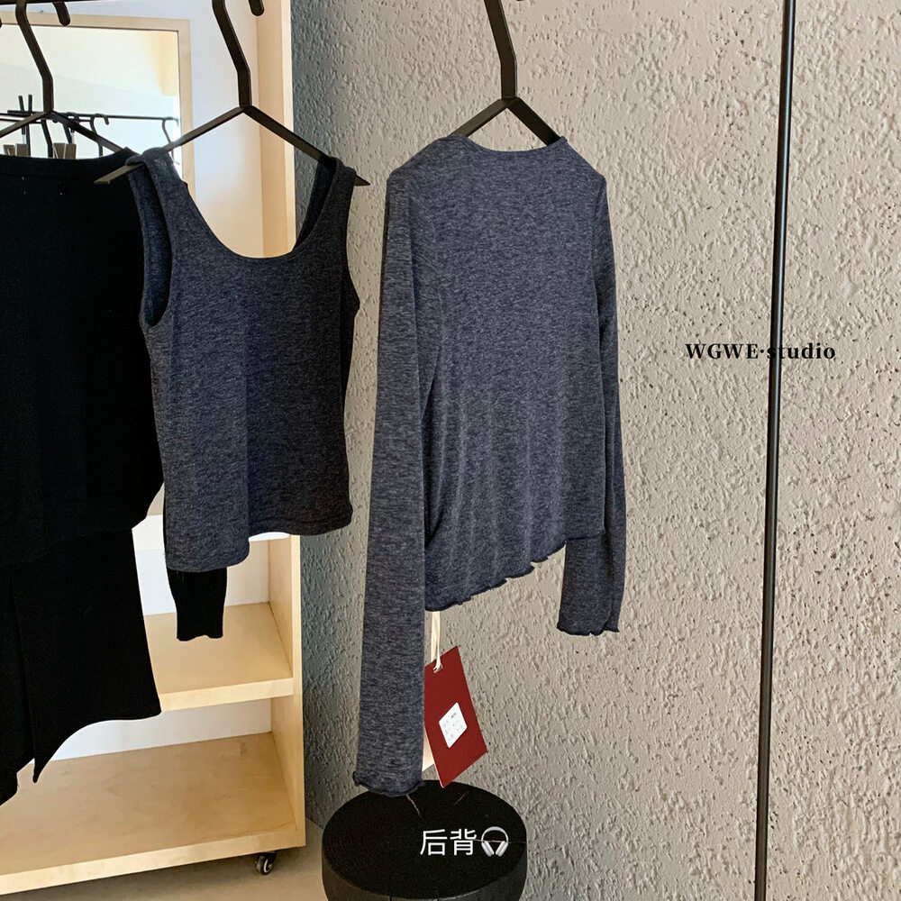 Осенний универсальный лонгслив с круглым воротником, трикотажный свитер, жилет, комплект, в корейском стиле, свободный крой