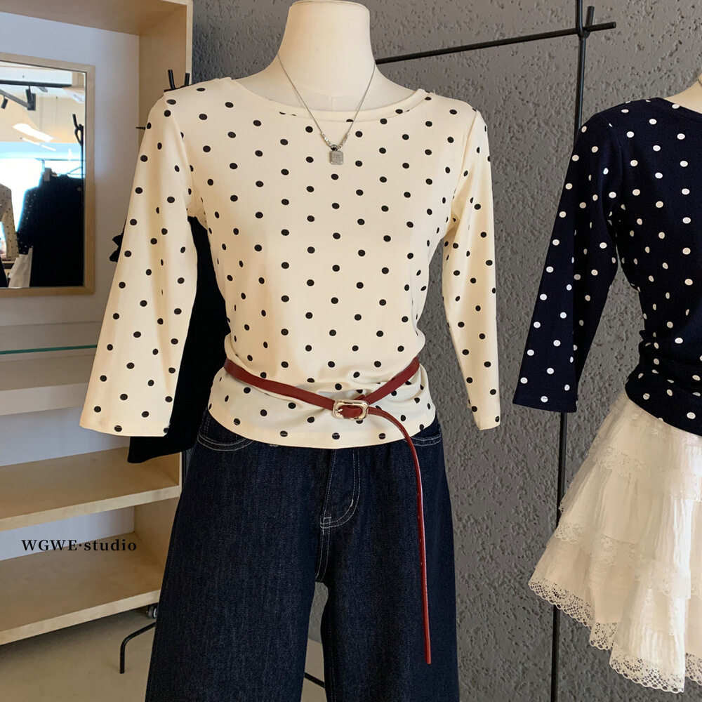 Осенняя приталенная футболка с круглым воротником, в корейском стиле