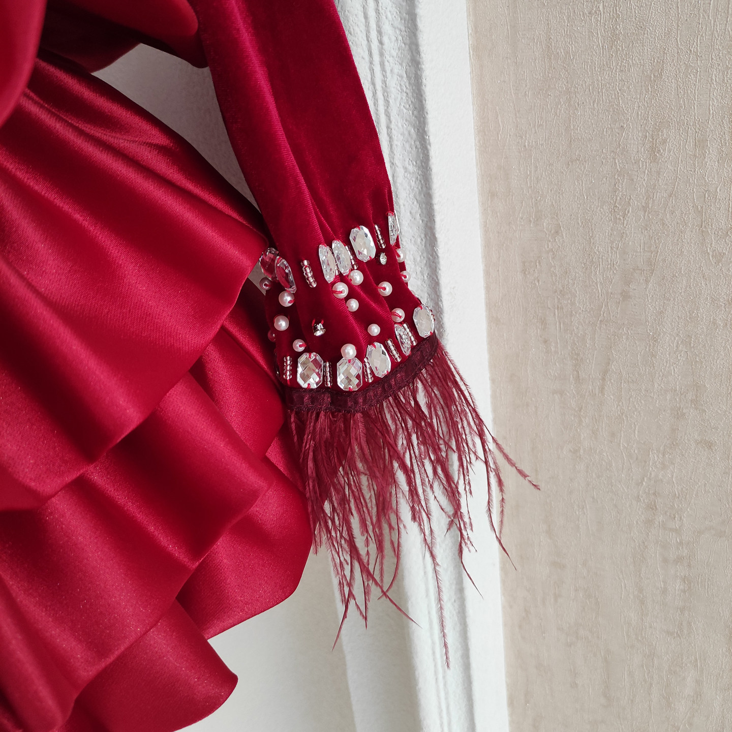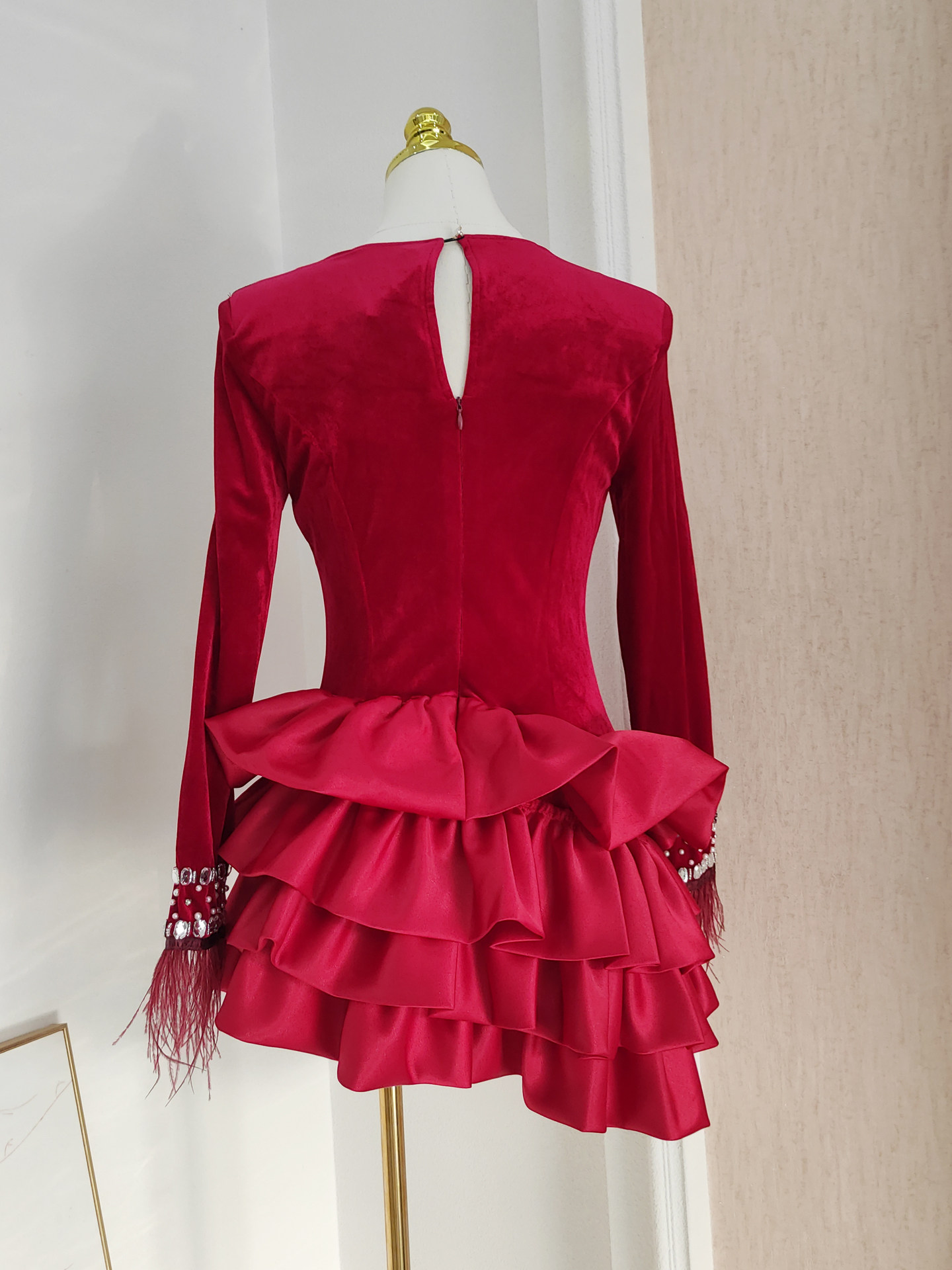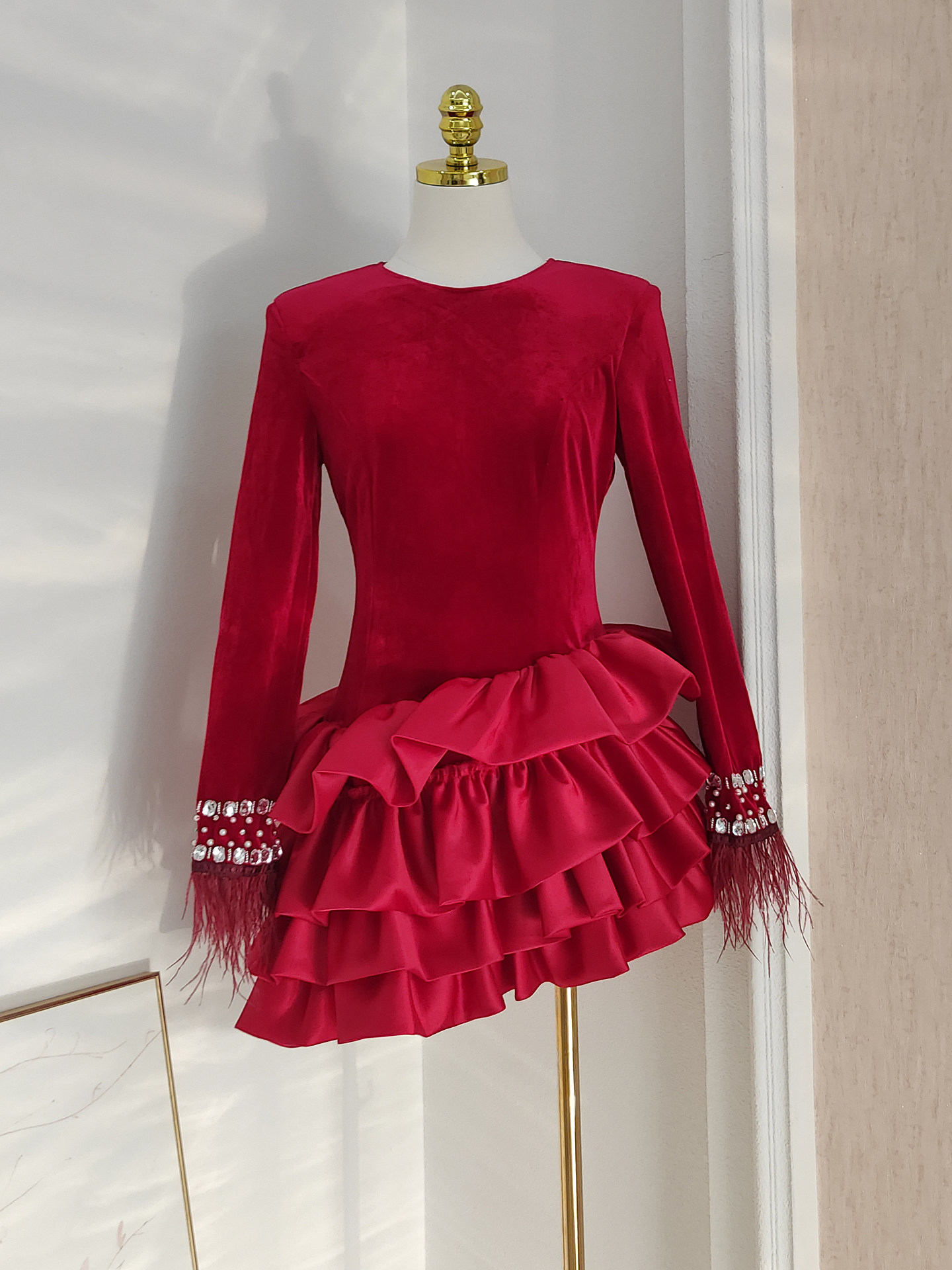 Демисезонное бархатное платье, французский стиль, в западном стиле, набивка пером, облегающий крой