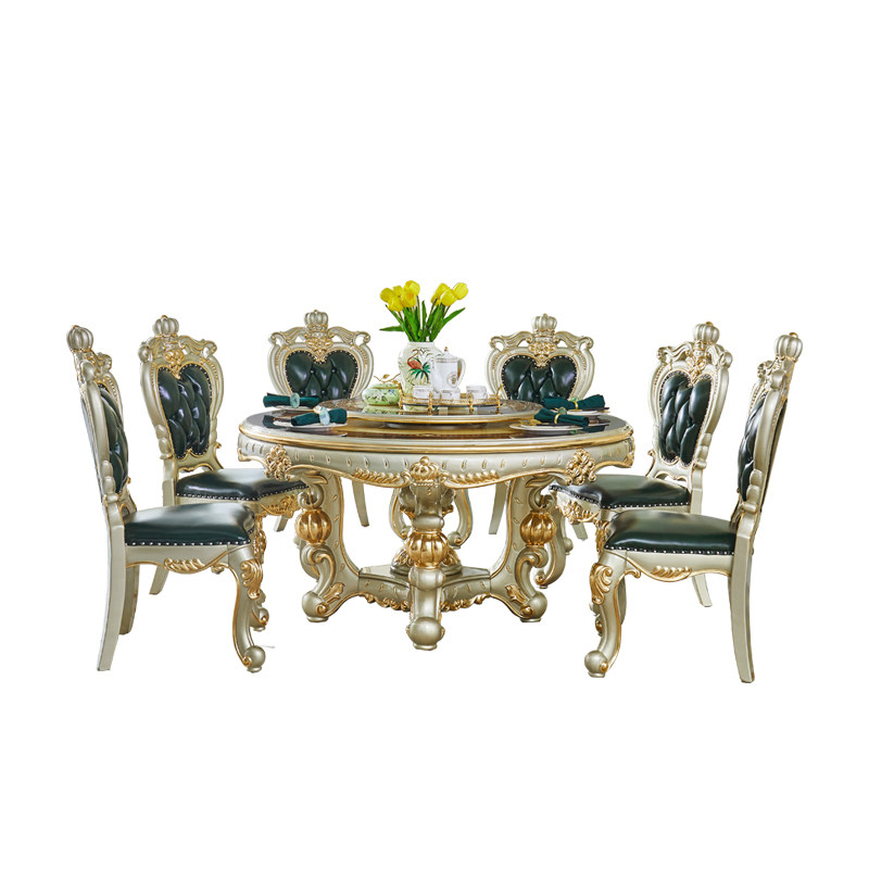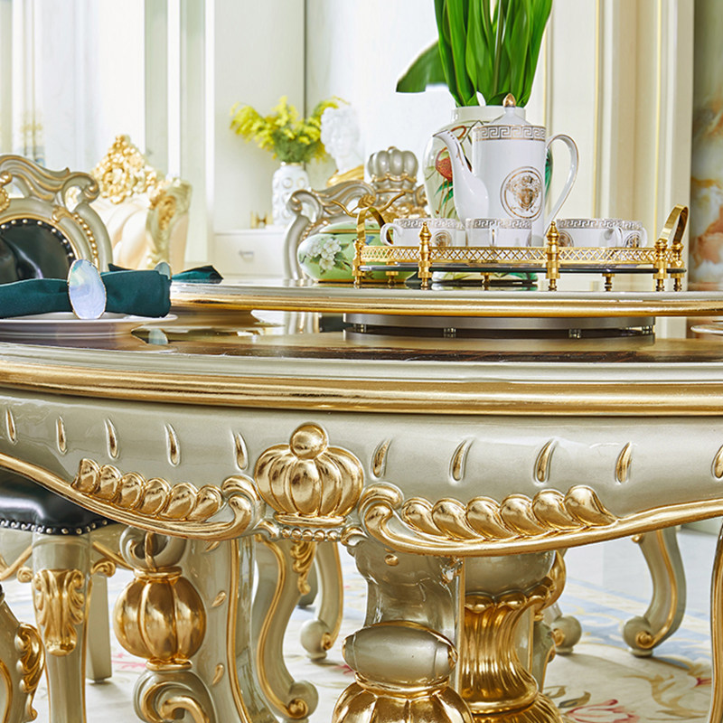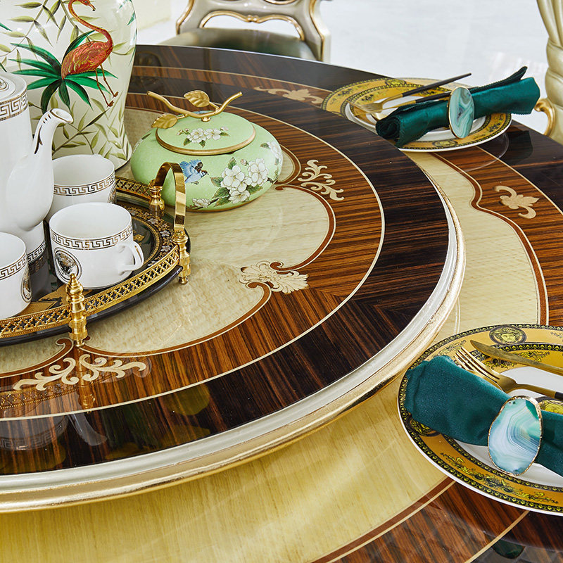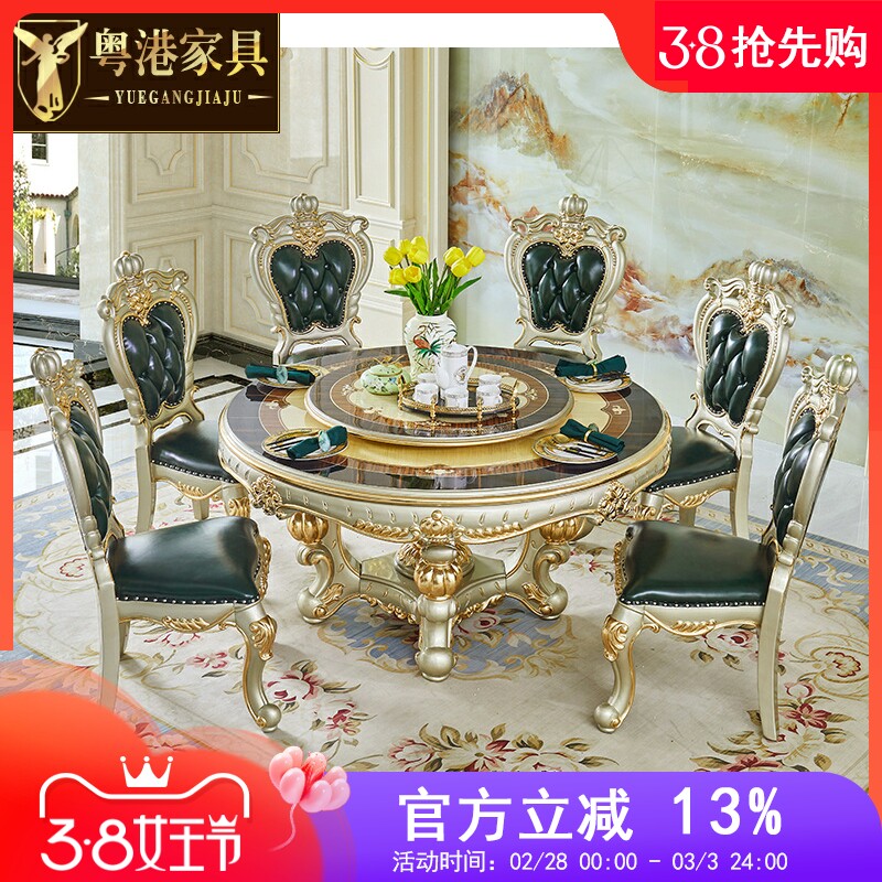 Европейский мраморный обеденный стол, Американская вилла, ресторан, круглый стол с поворотным столом J, резной обеденный стол из цельного дерева, домашний обеденный стол