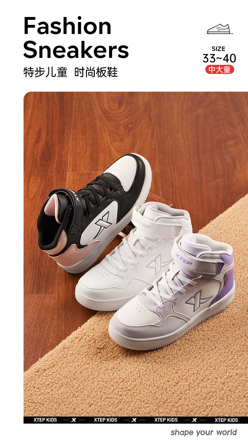 Xtep, демисезонные туфли, детские кроссовки, износостойкая удерживающая тепло обувь на липучке, подходит для подростков