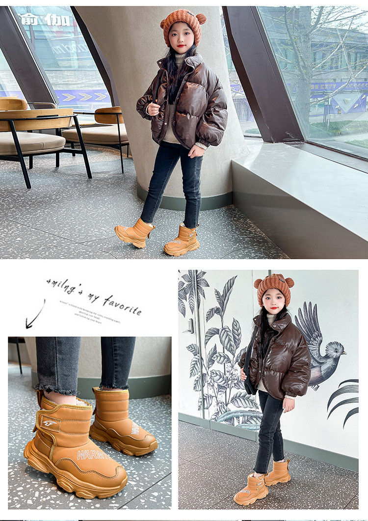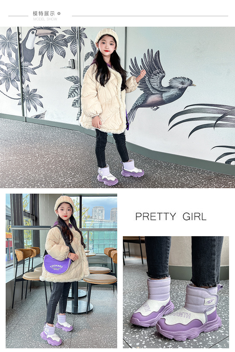 Обувь для девочек, хлопчатобумажная обувь, новинка 2025 года, зимние детские водонепроницаемые и противолыжные ботинки, бархатные теплые и износостойкие хлопковые ботинки для девочек