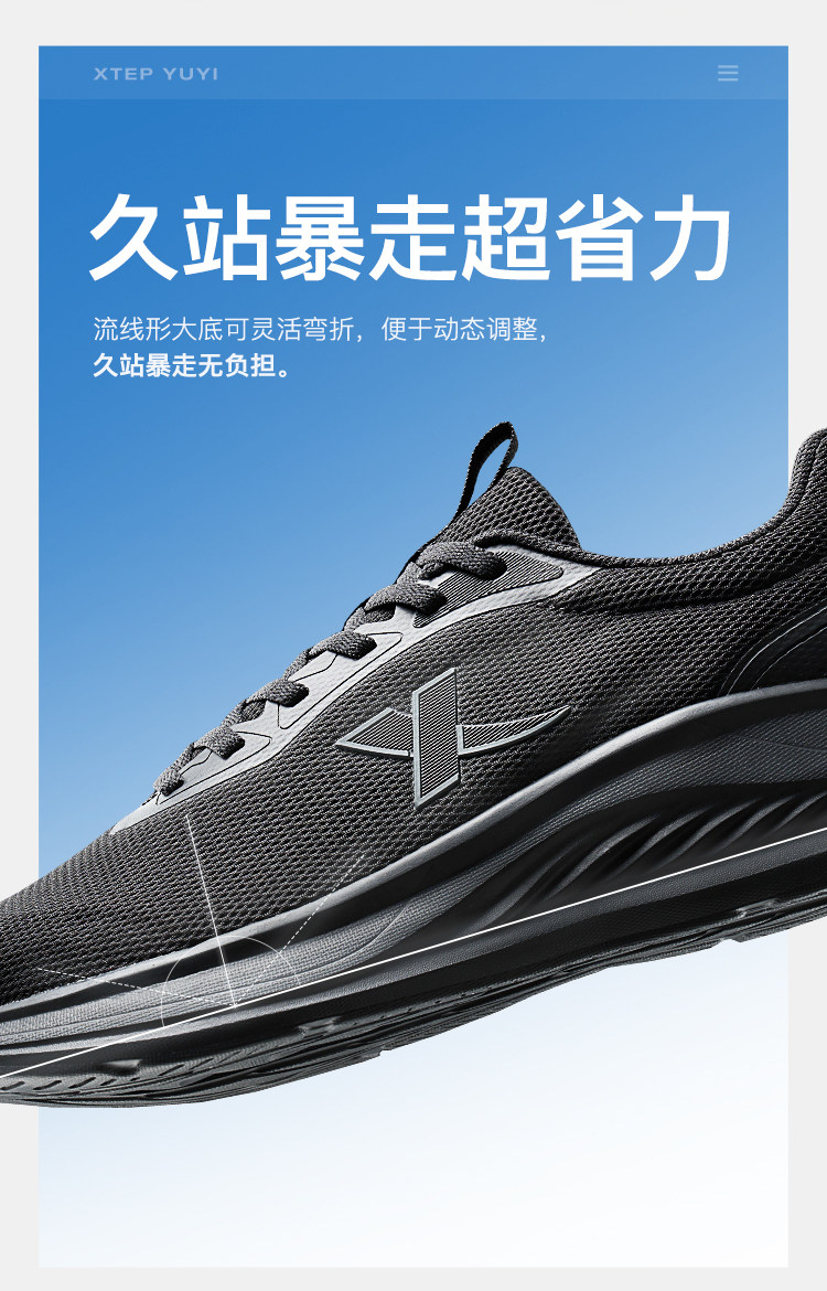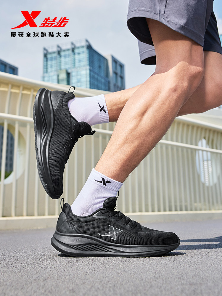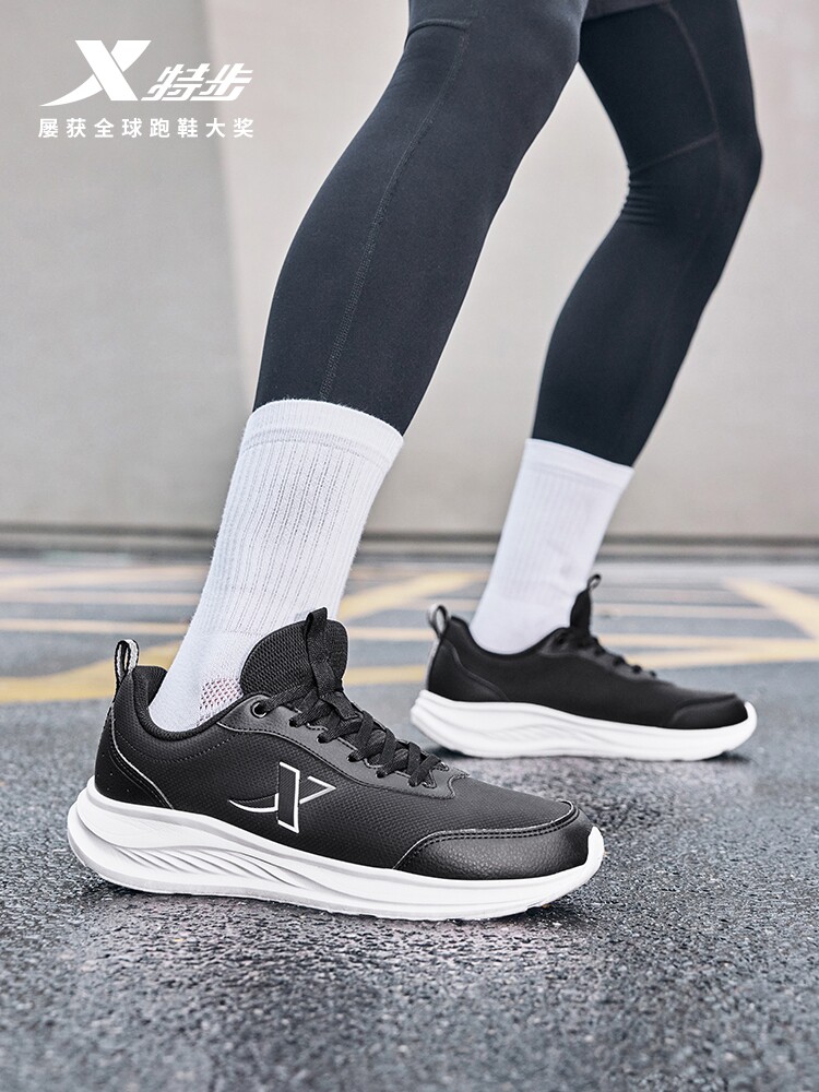 Xtep, демисезонная водоотталкивающая амортизирующая спортивная обувь для черной кожи, предпродажа