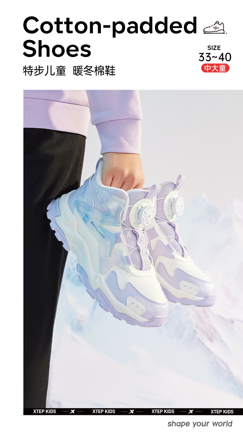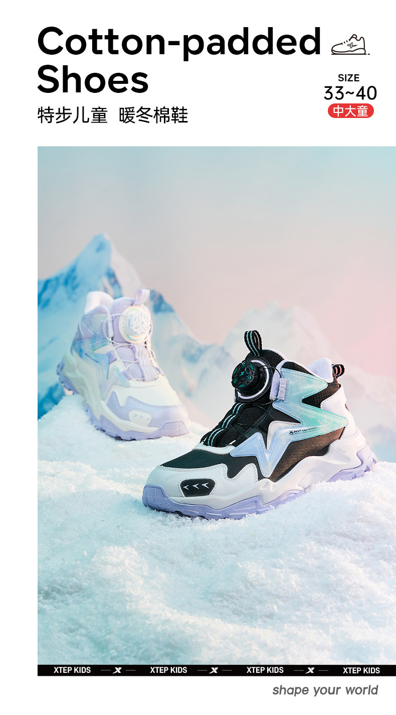 Xtep, зимние удерживающие тепло комфортные туфли, высокая детская спортивная обувь, подходит для подростков