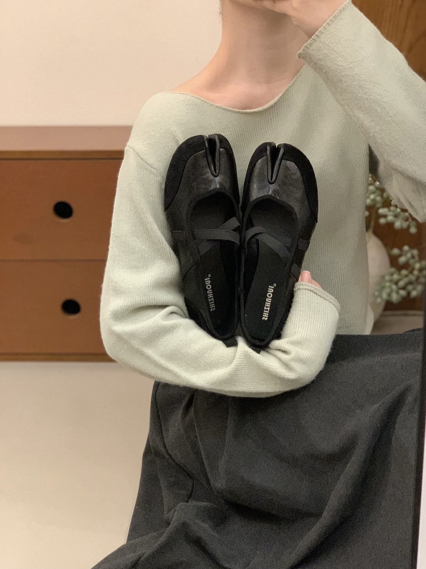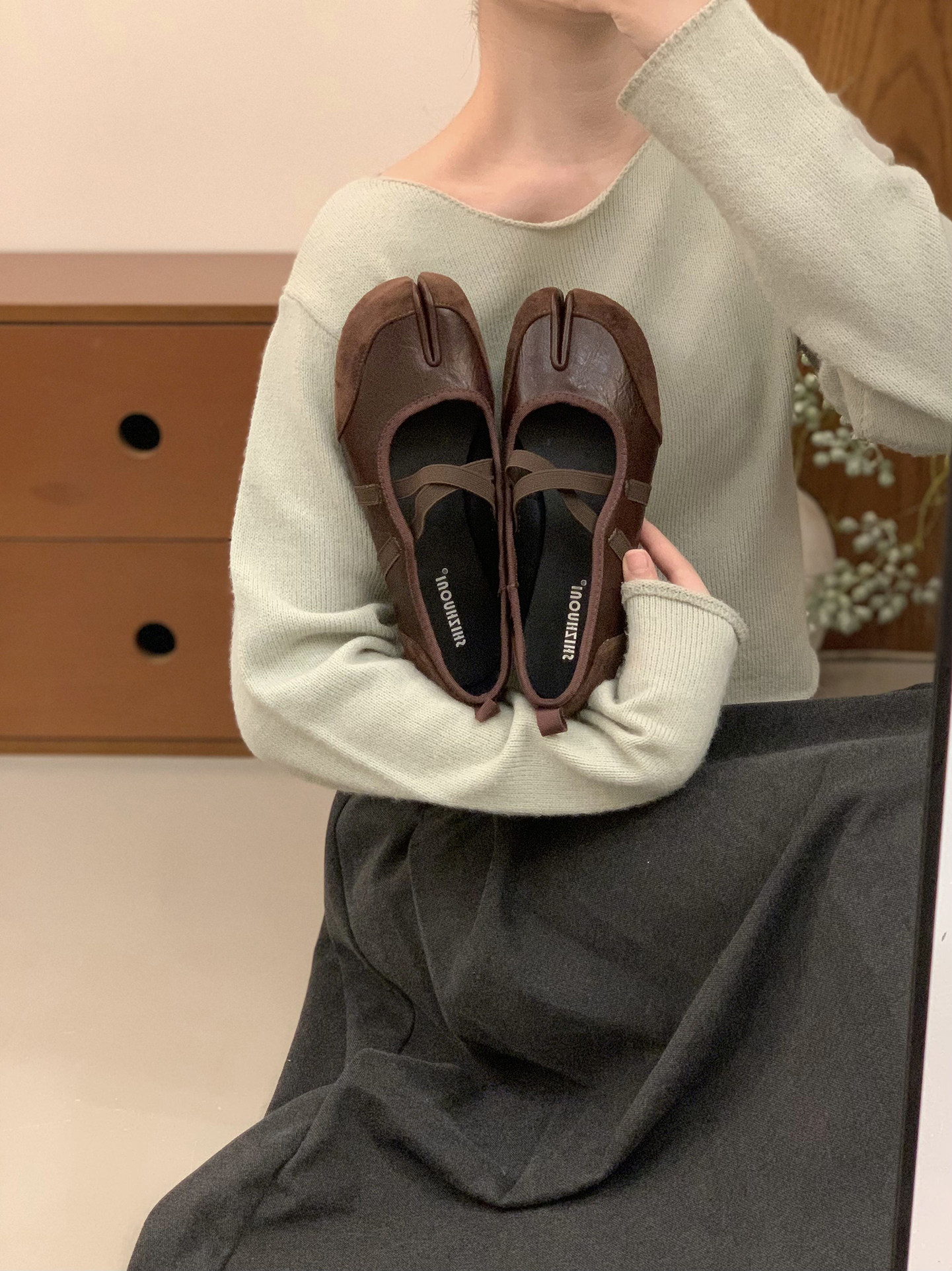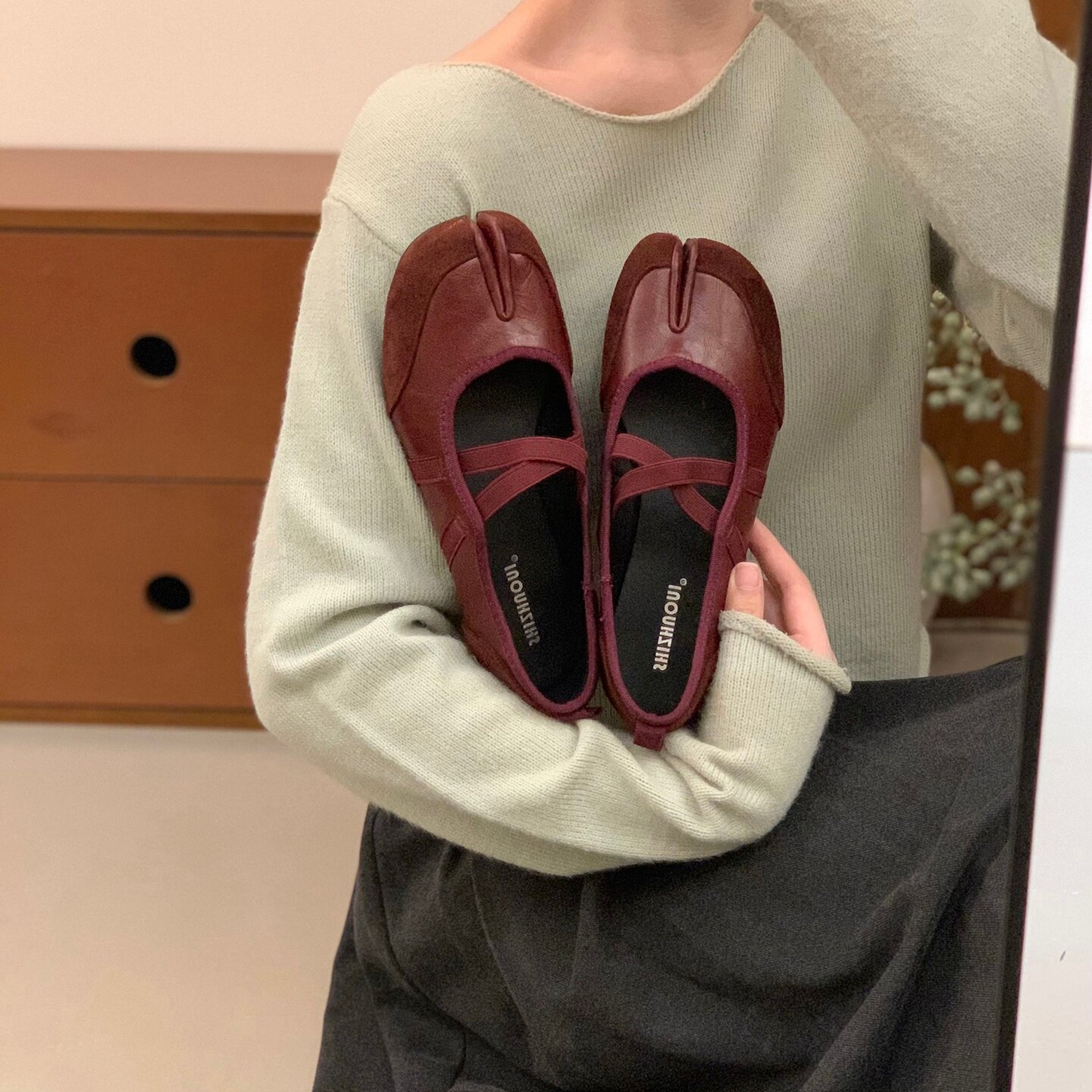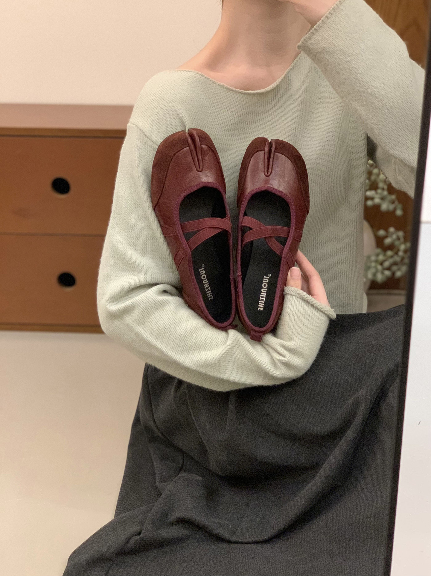 Серебряные туфли Мэри Джейн на плоской подошве с раздвоенным носком, женская обувь, новинка 2025 года, балетные туфли с перекрестными ремешками, подковообразные туфли свиньи