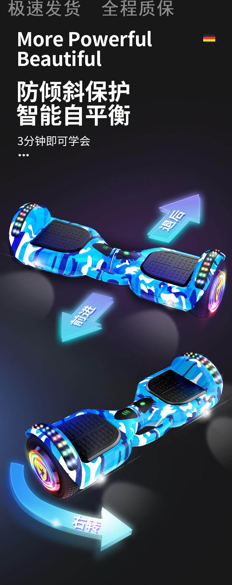 - 10-дюймовое камуфляжное синее светящееся колесо + музыка Bluetooth {доставка за секунды}