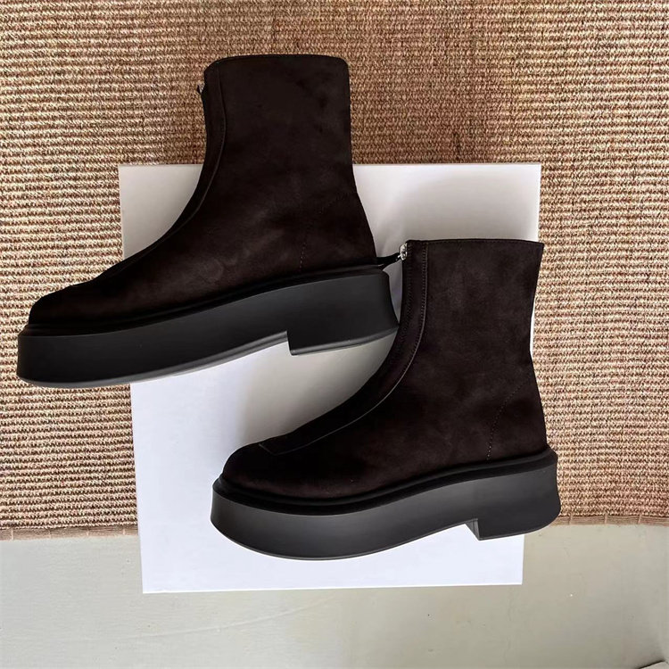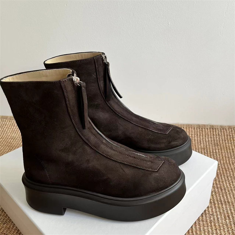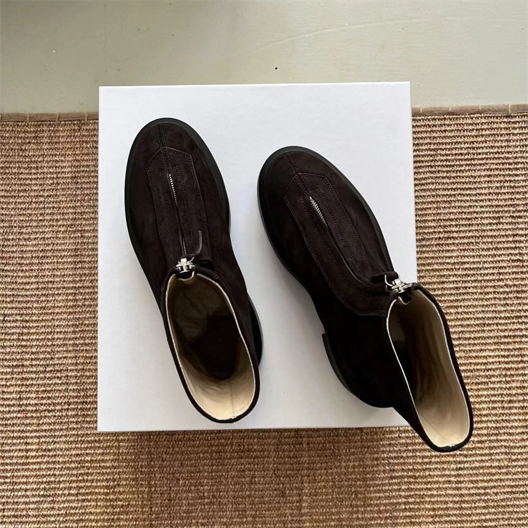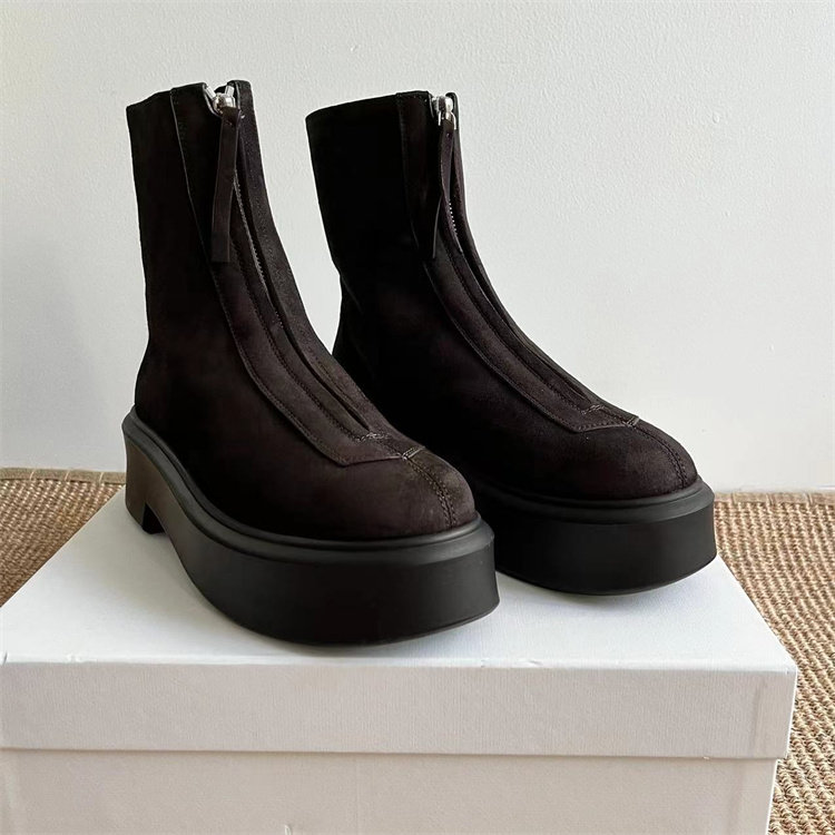 Классические короткие ботинки THE ROW на толстой подошве с застежкой-молнией спереди.