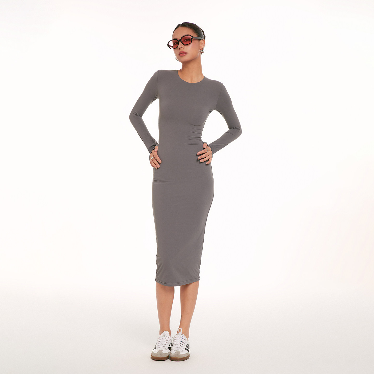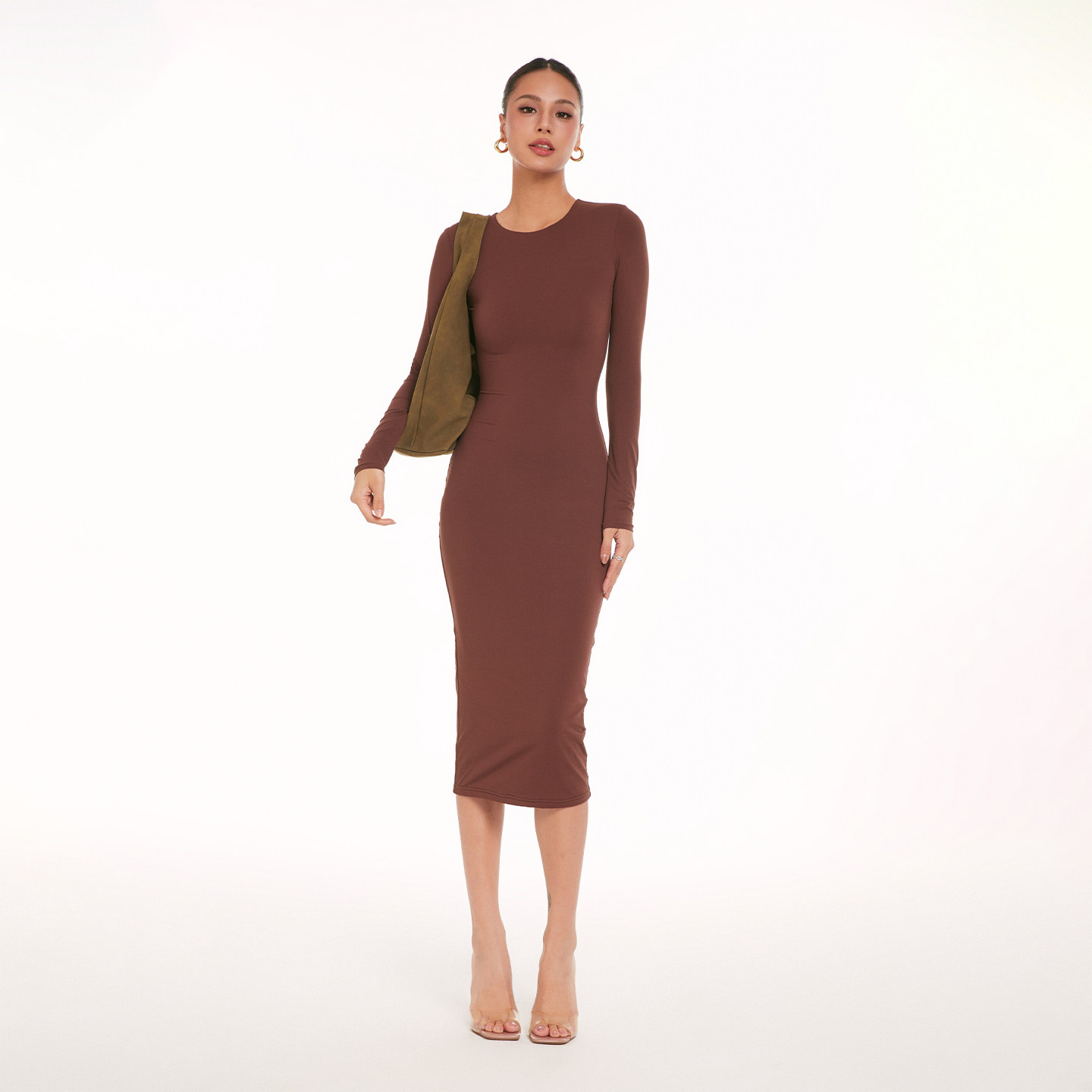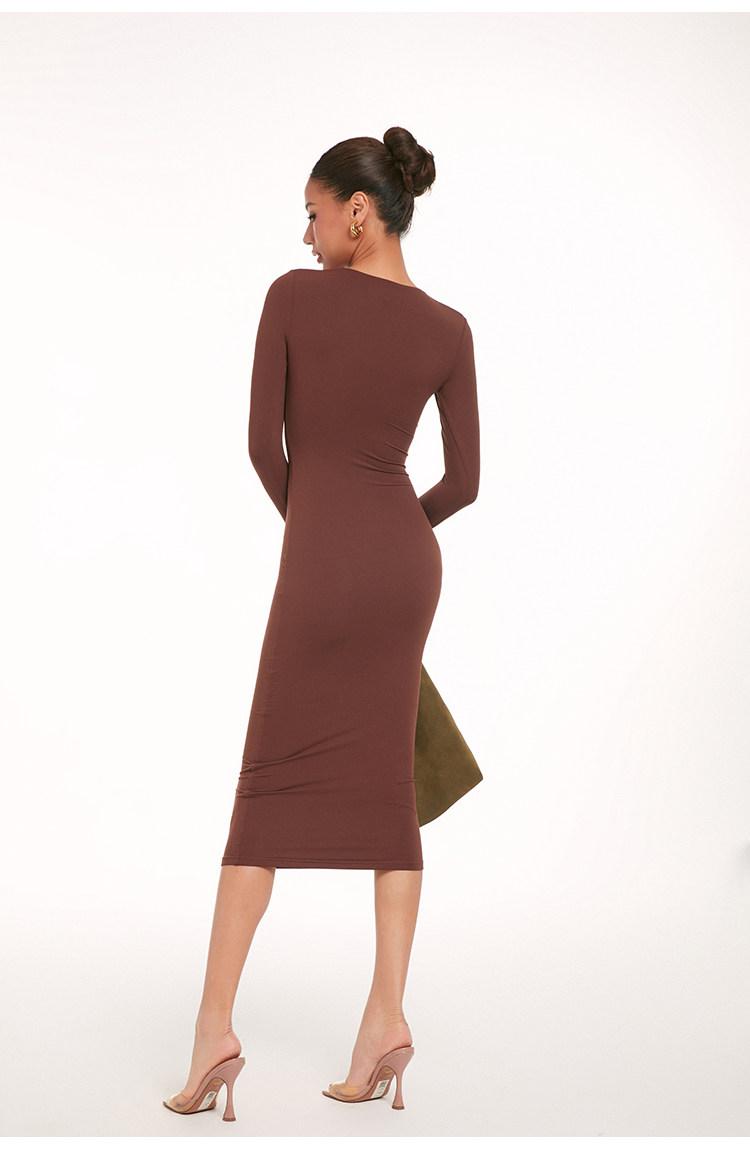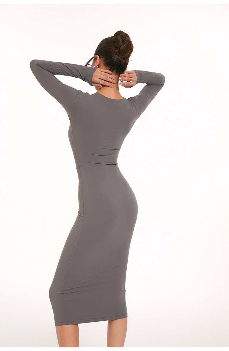 Зимний лонгслив, ретро приталенная длинная юбка, европейский стиль, с акцентом на бедрах, средней длины