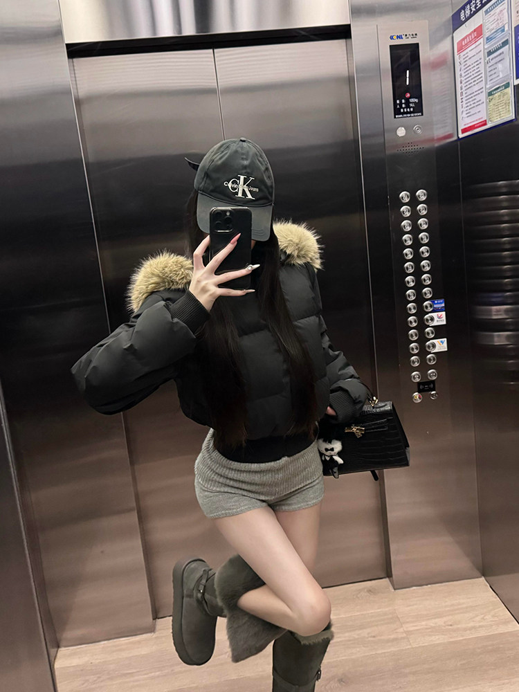 Удерживающий тепло черный цветной пуховик с капюшоном, куртка, приталенный корсет, в американском стиле
