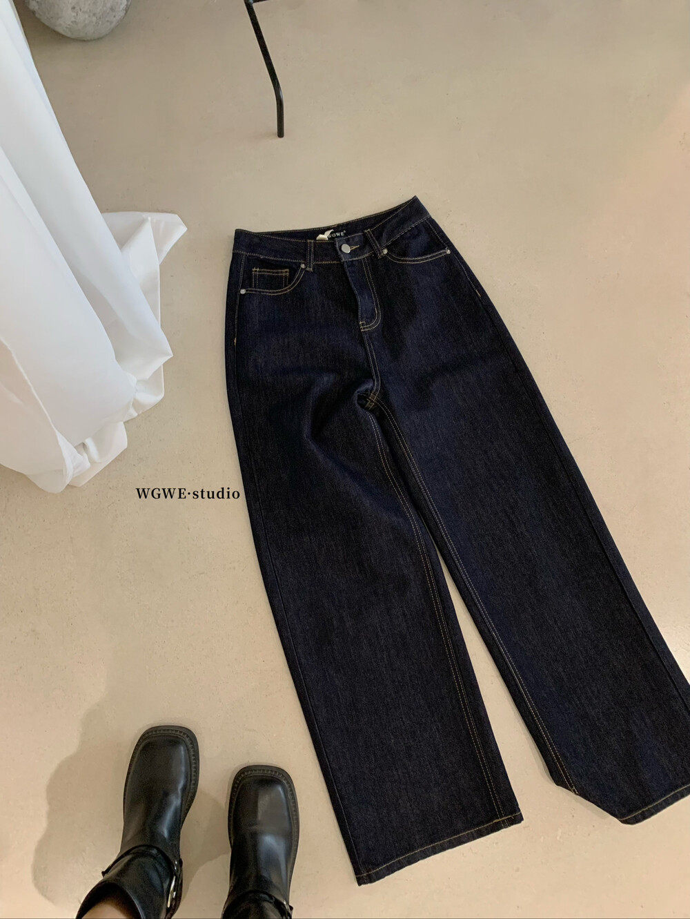 Демисезонные ретро джинсы, в корейском стиле, высокая талия, свободный прямой крой