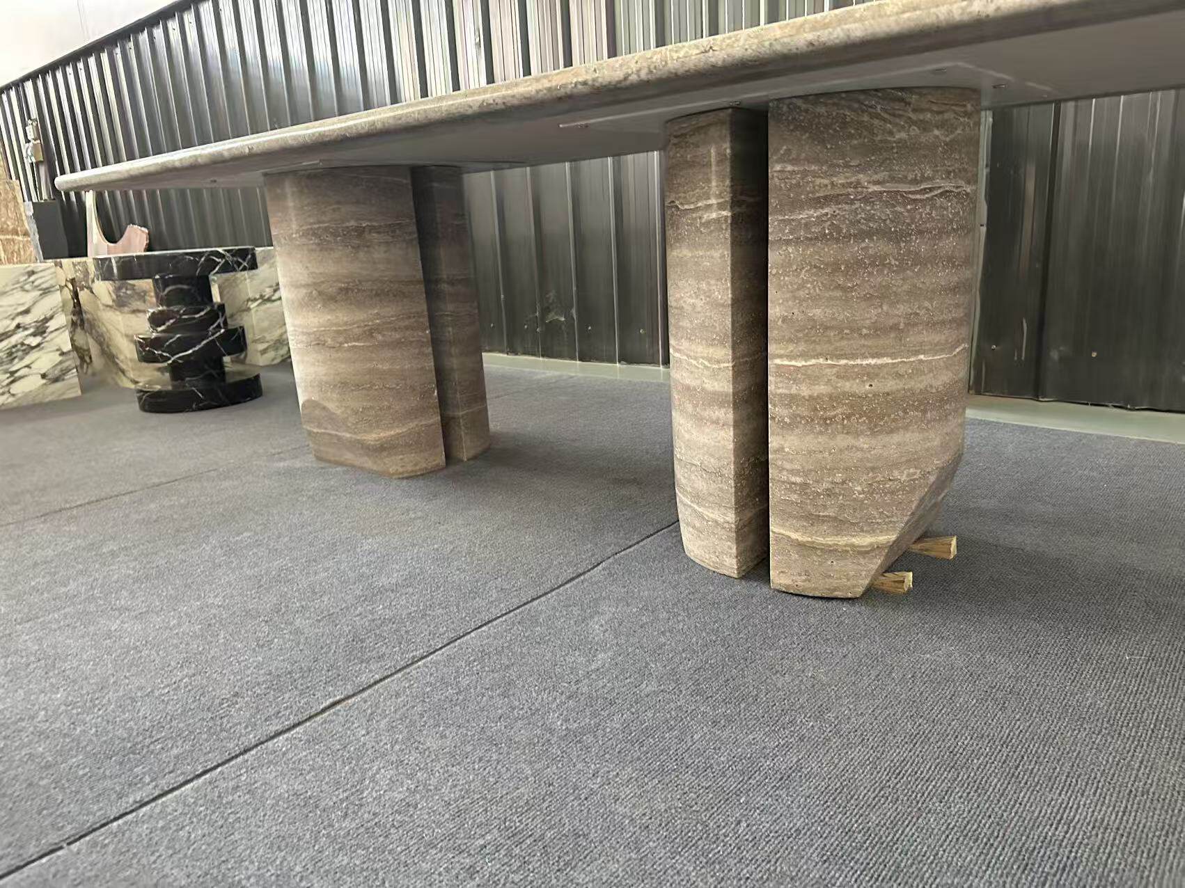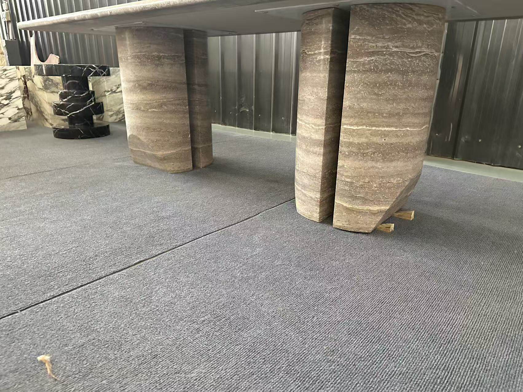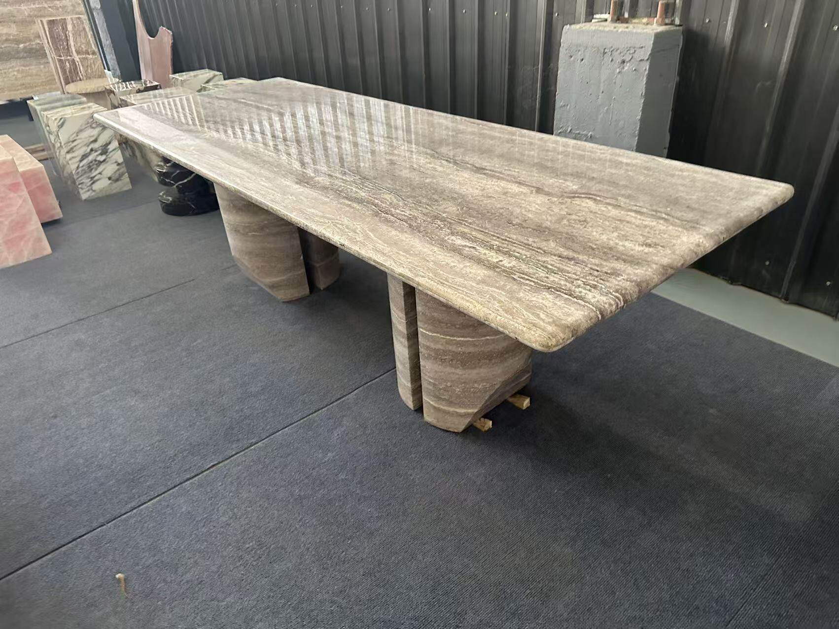 霓好 Прямоугольный обеденный стол из натурального мрамора и травертина, легкий, роскошный, современный, простой, высококачественный обеденный стол в стиле ваби-саби в итальянском стиле