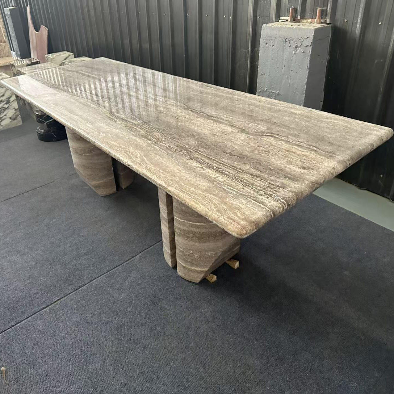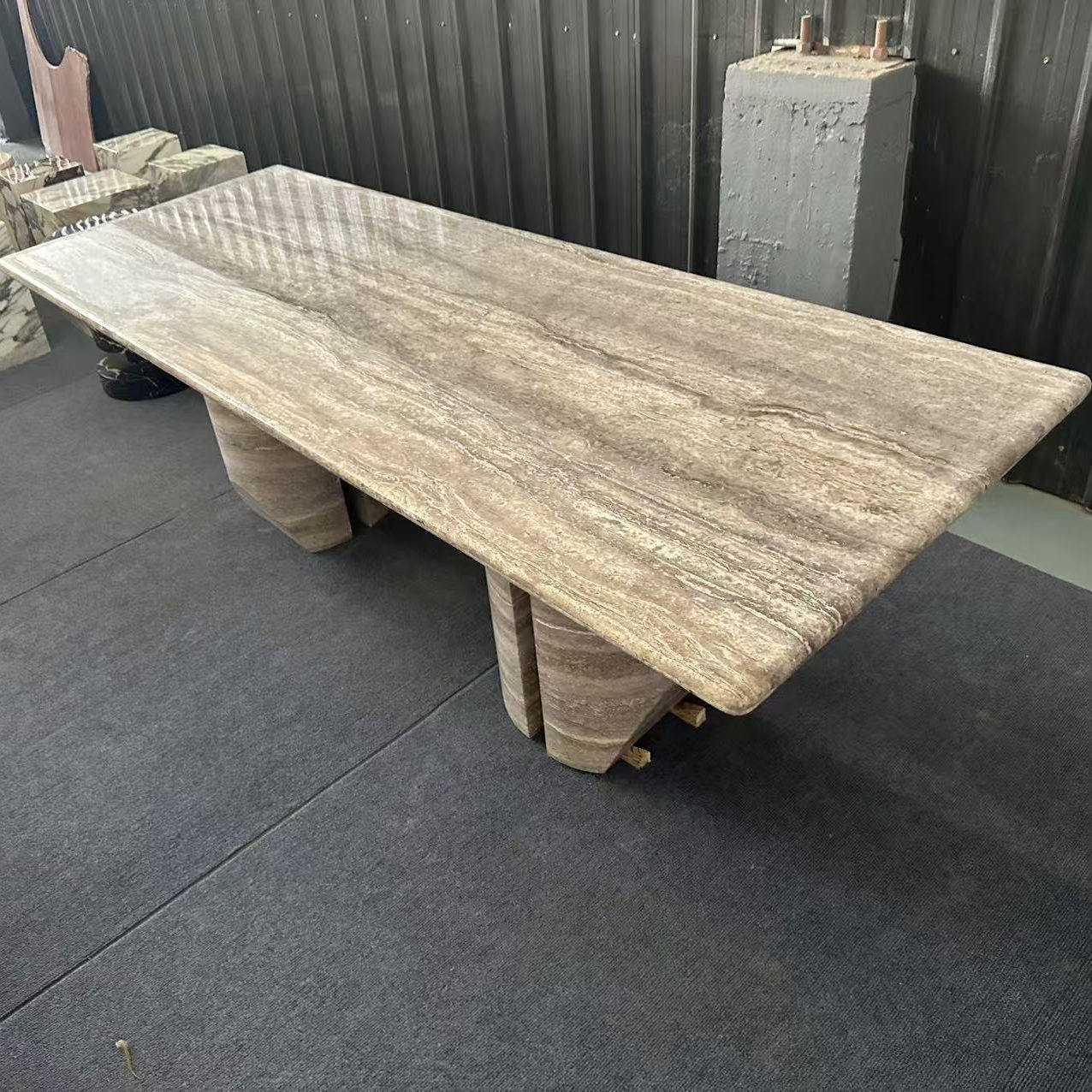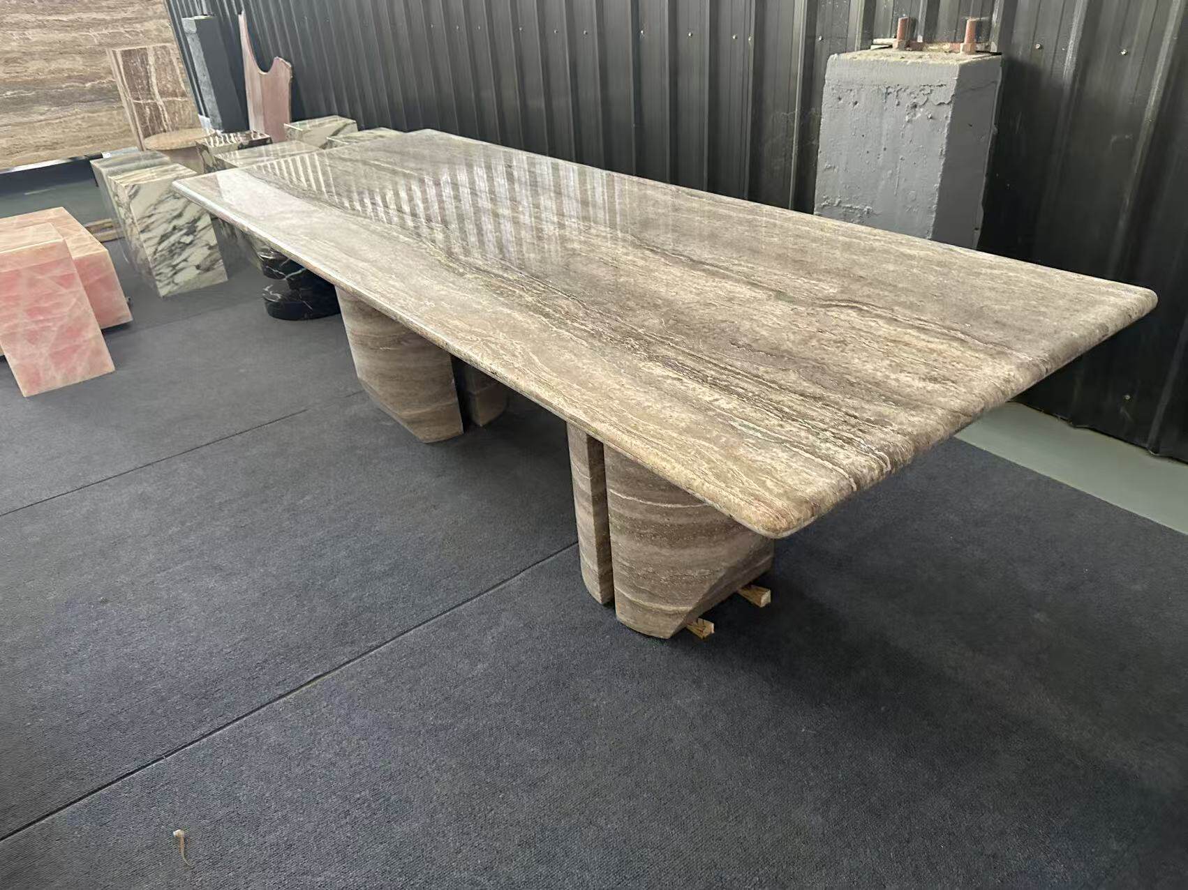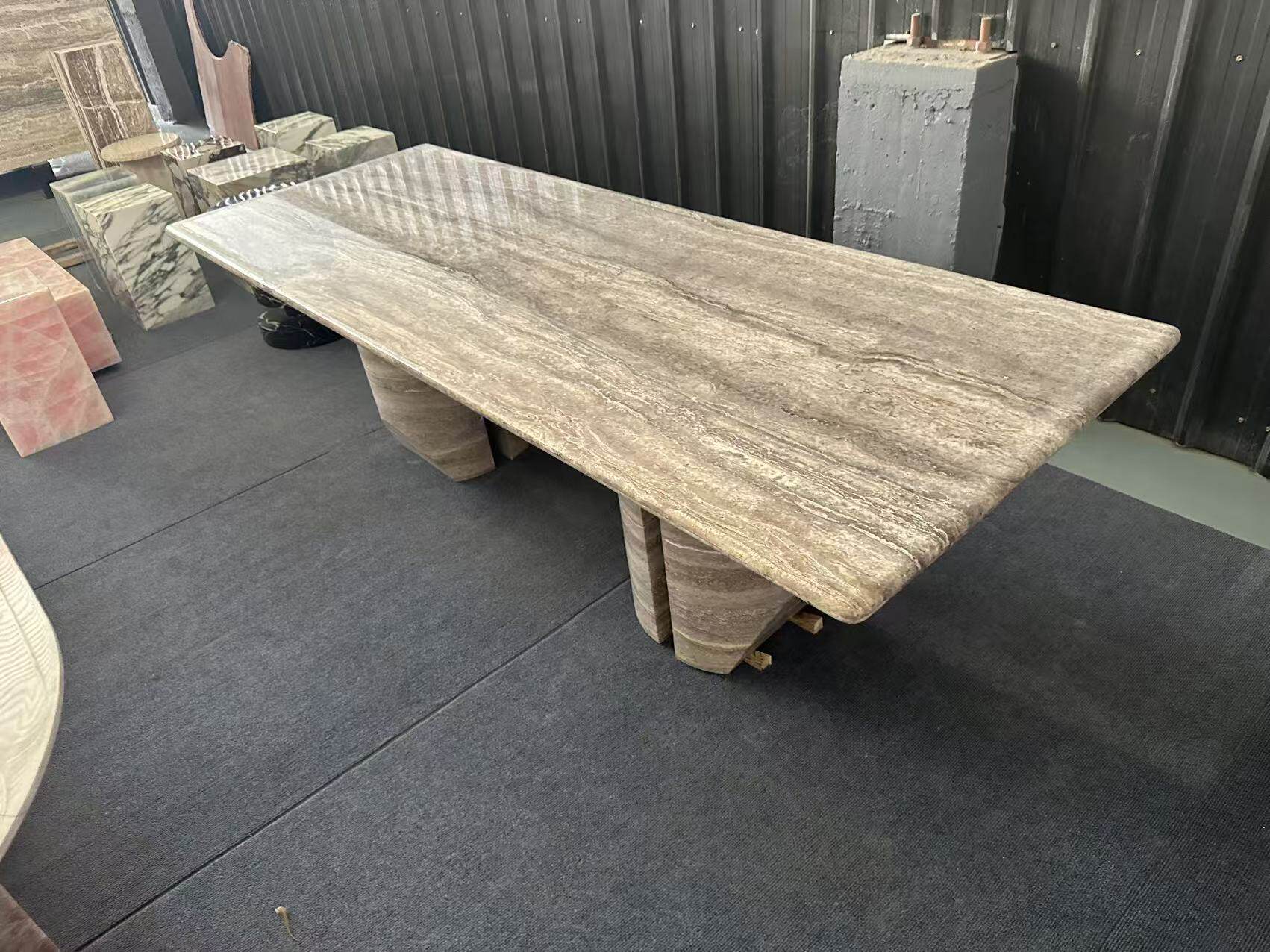 霓好 Прямоугольный обеденный стол из натурального мрамора и травертина, легкий, роскошный, современный, простой, высококачественный обеденный стол в стиле ваби-саби в итальянском стиле