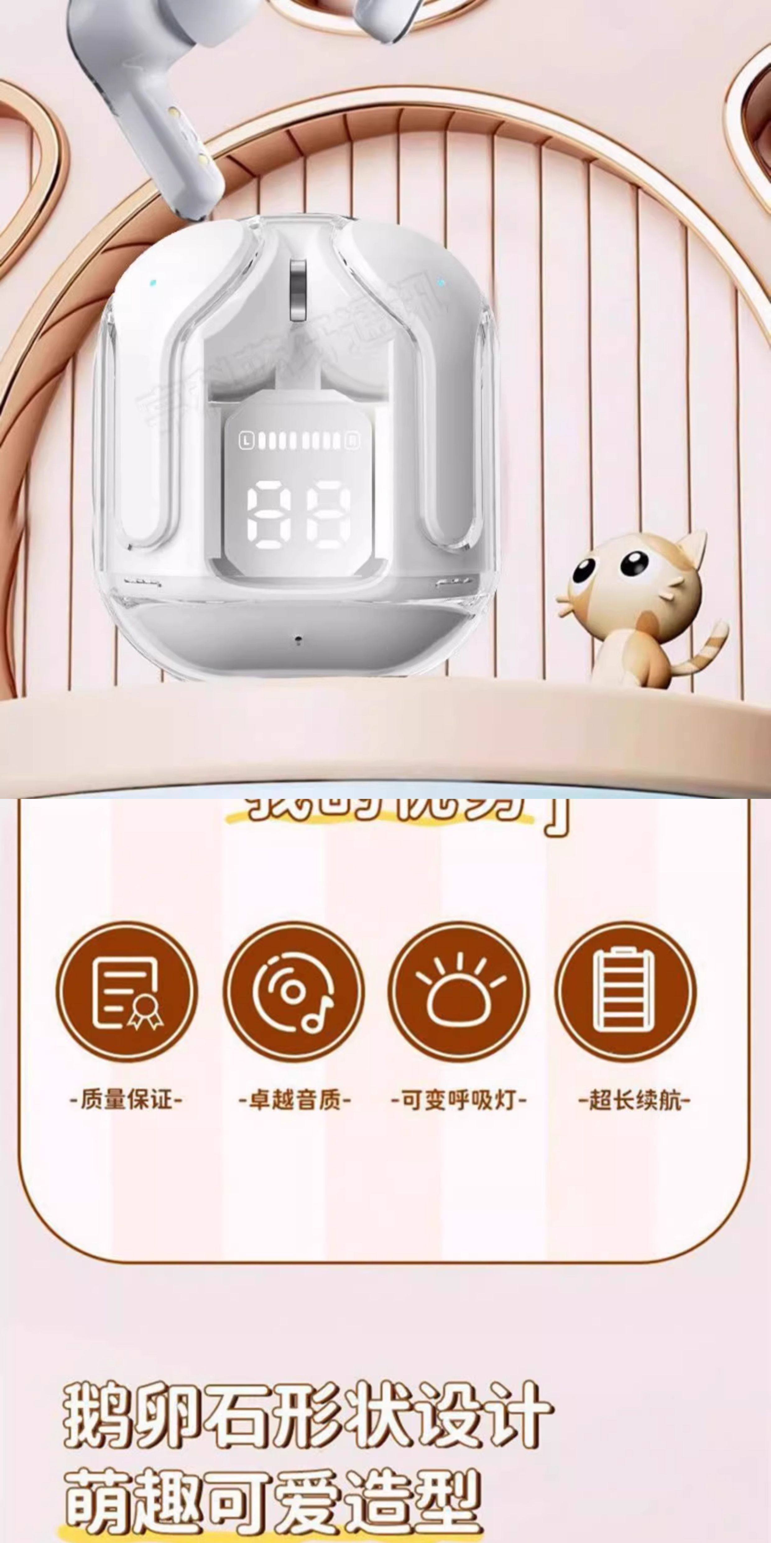 Новая прозрачная беспроводная Bluetooth-гарнитура, внутриканальное шумоподавление, высокое качество, внешний вид, цифровой дисплей, полное активное шумоподавление для киберспорта.