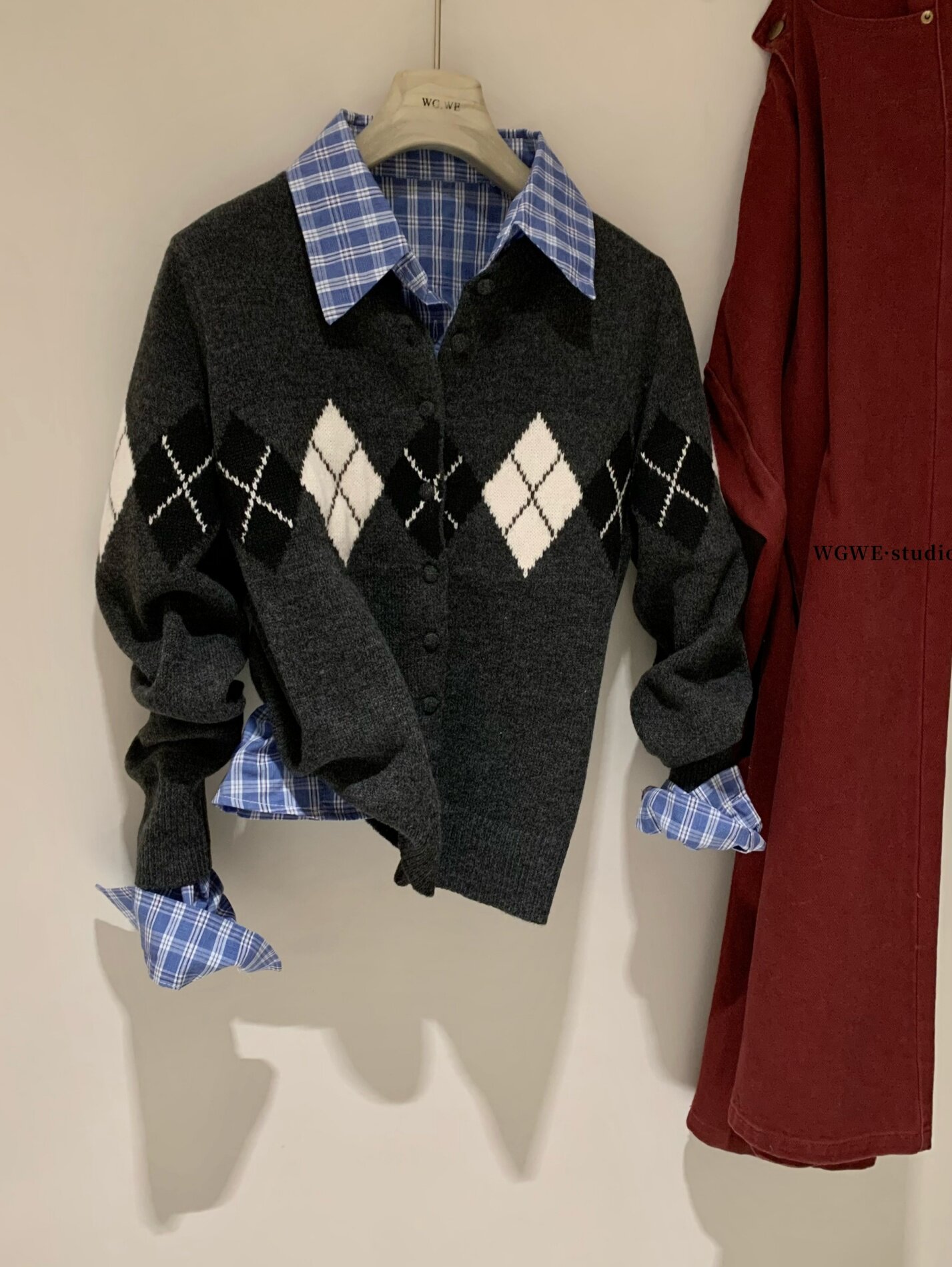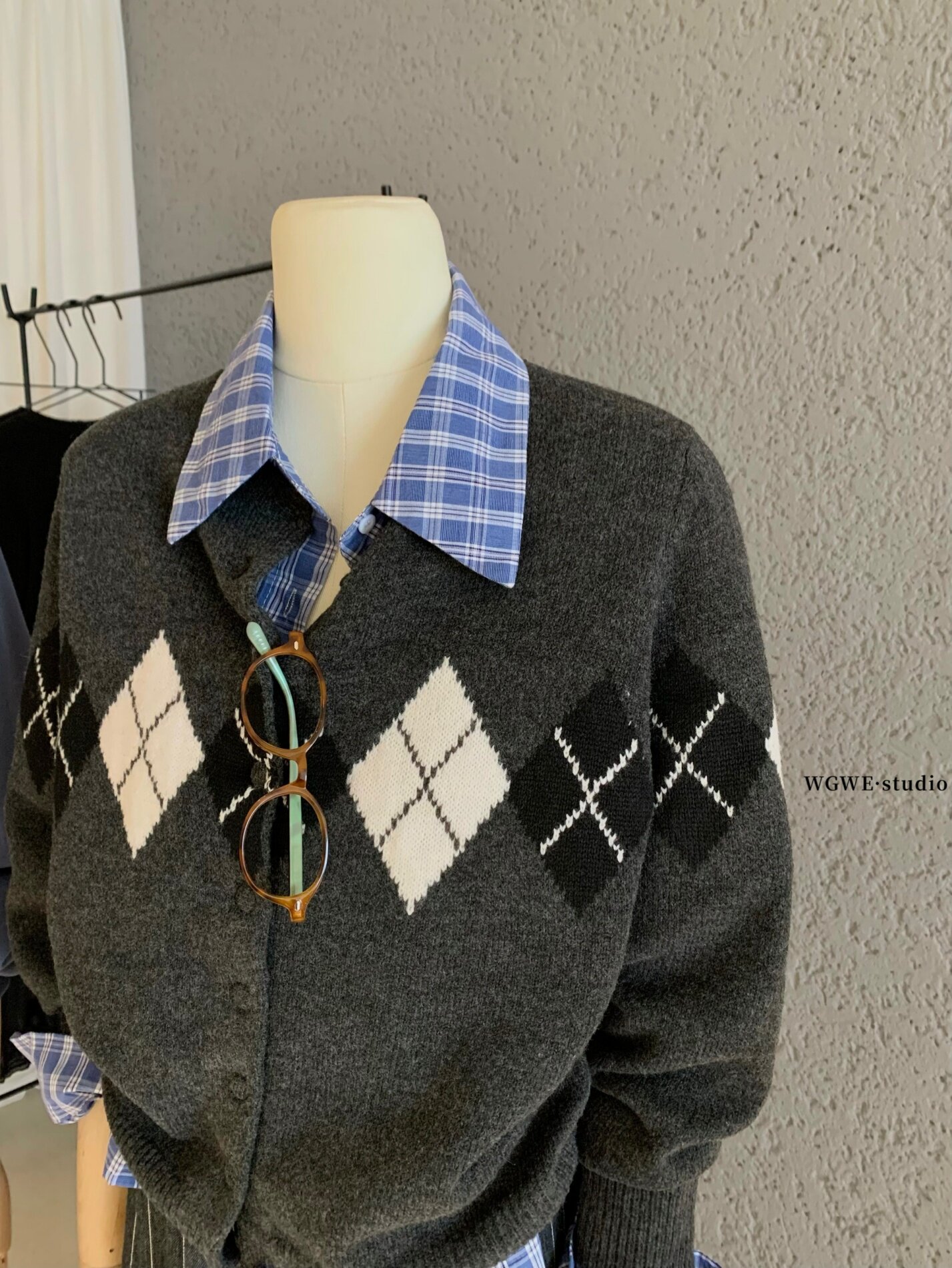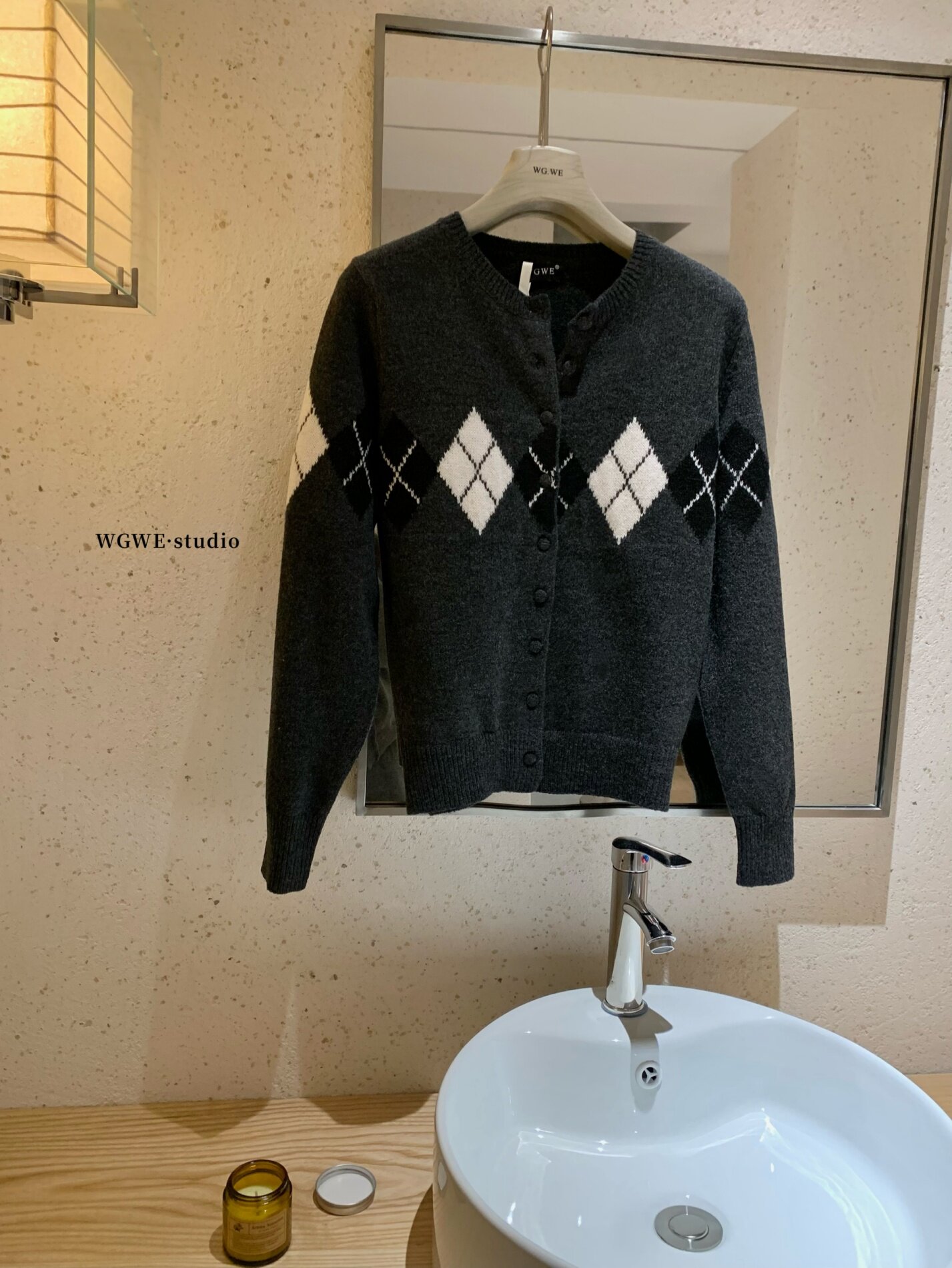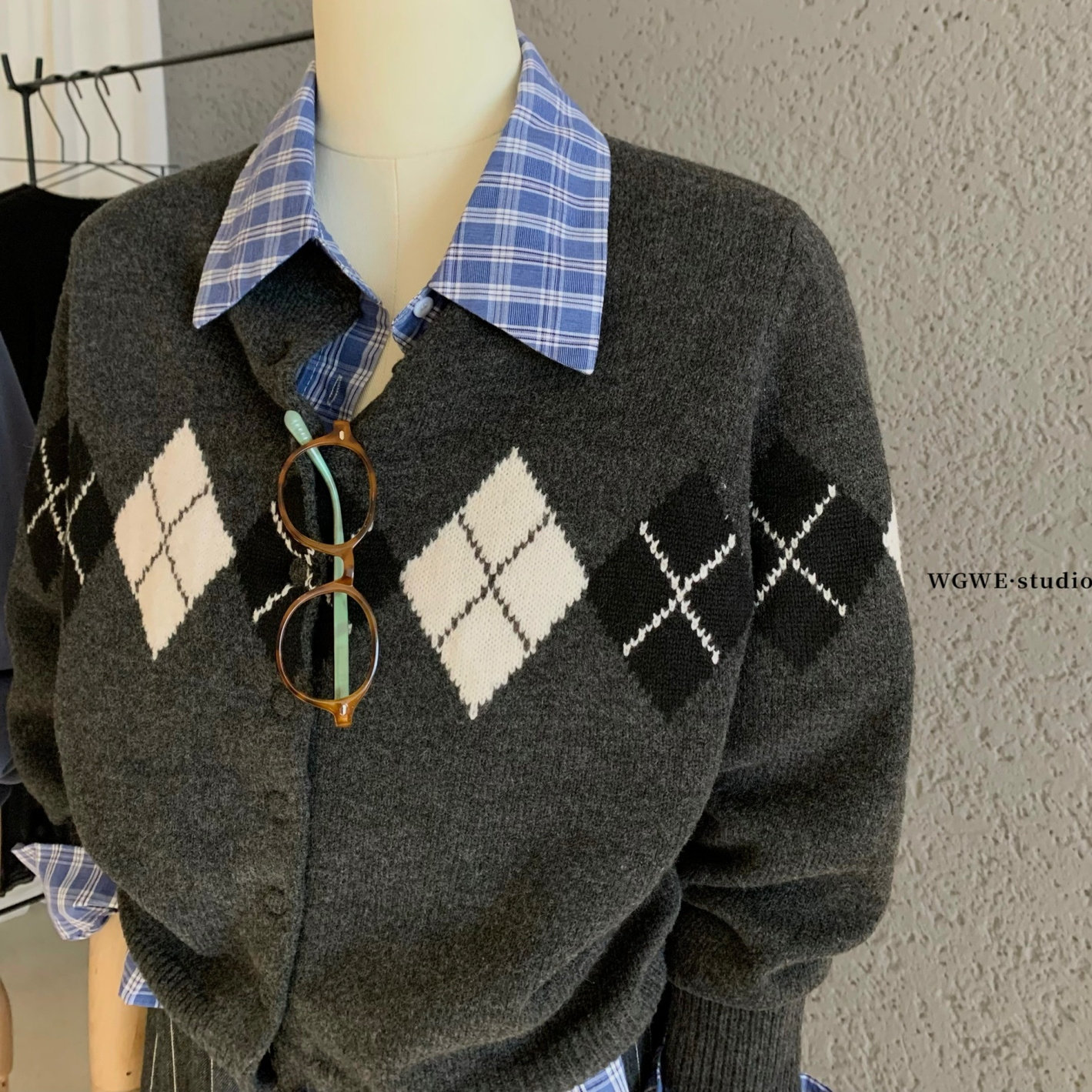 Демисезонный трикотажный ретро кардиган с ромбовидным узором, шерстяной свитер, куртка, изысканный стиль
