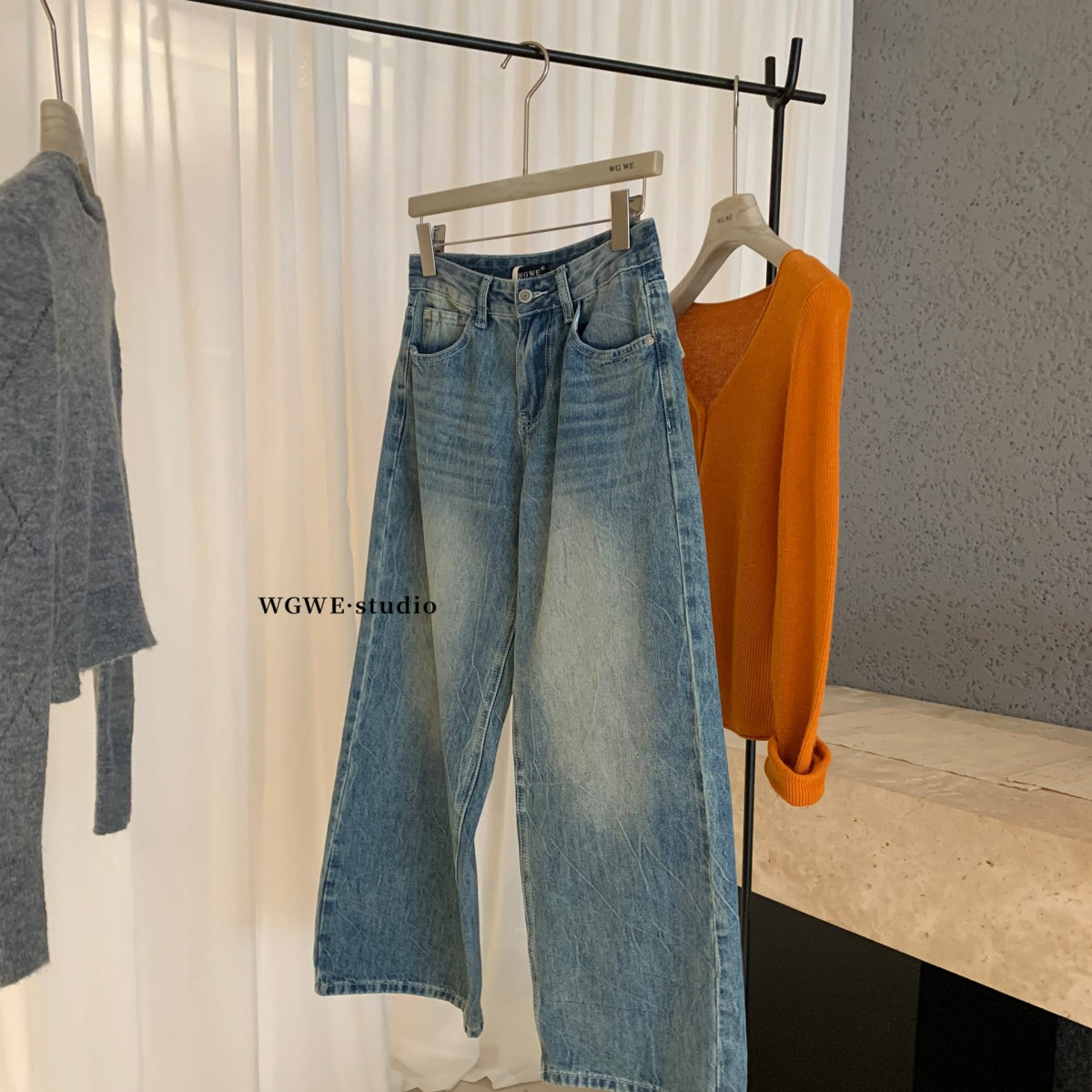 Демисезонные ретро синие джинсы, штаны, высокая талия, свободный прямой крой