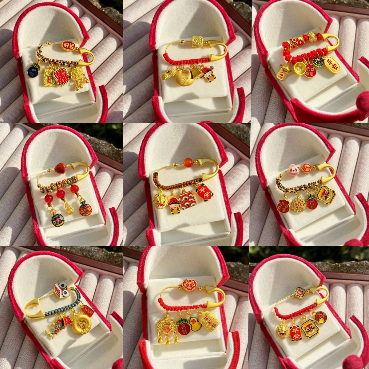 Золотой браслет из красной нити, детская булавка, безопасная креативная брошь, (в наличии на складе)